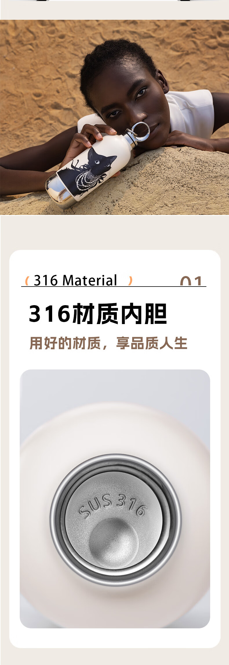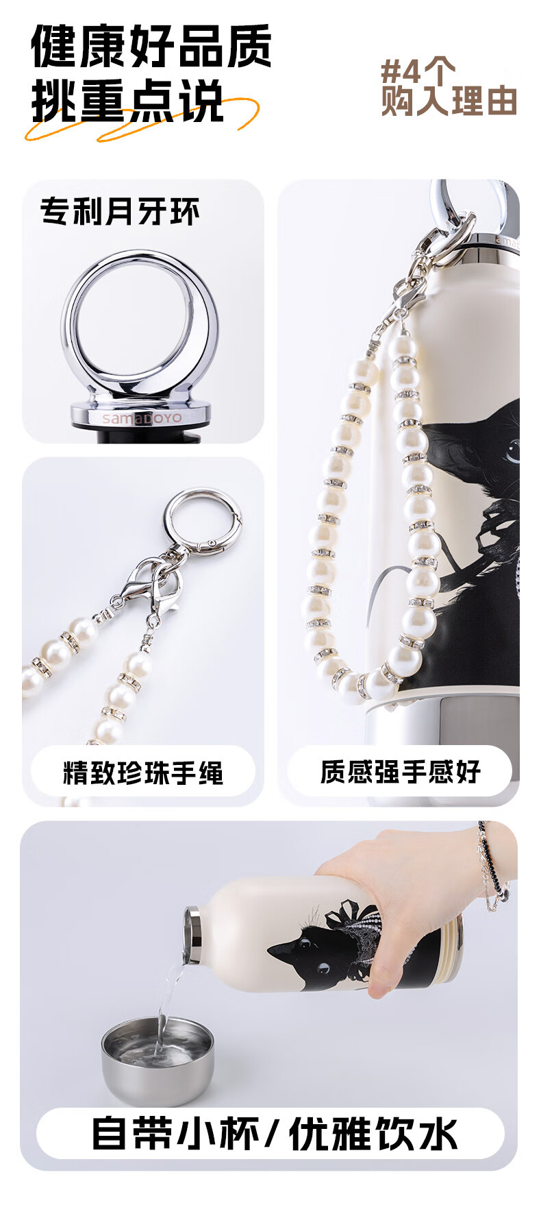 尚明保温杯316不锈钢大容量吸管杯运动户外喝水杯ins生日礼物 可爱猫360ml-带提绳吸管