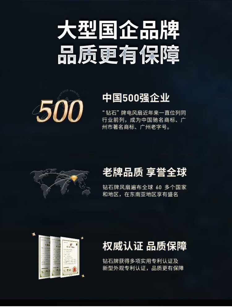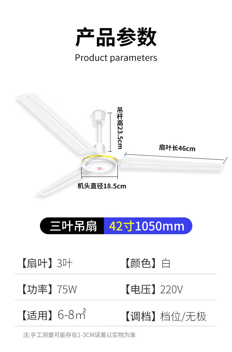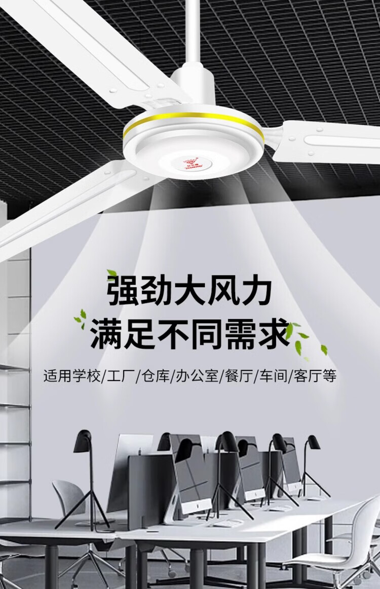 钻石牌(DIAMOND)牌吊扇大风力家用客厅铁叶宿舍工业轻音吸顶式餐厅56寸电风扇 56寸三叶(三挡调速) 75W