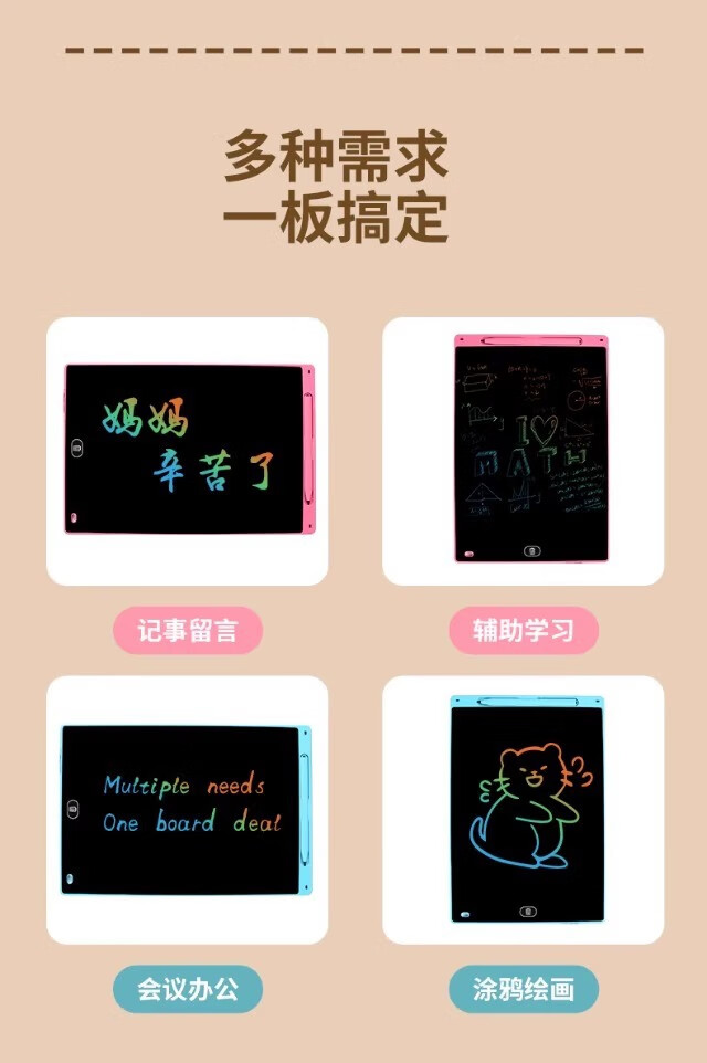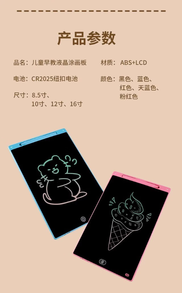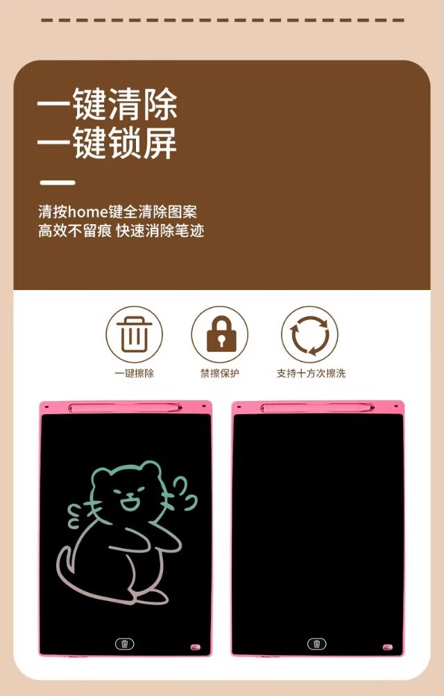 【工厂直供】儿童画板液晶手写板电子写字板可擦写可消除涂鸦绘画 绘画板-黑色-8.5寸(不留痕)