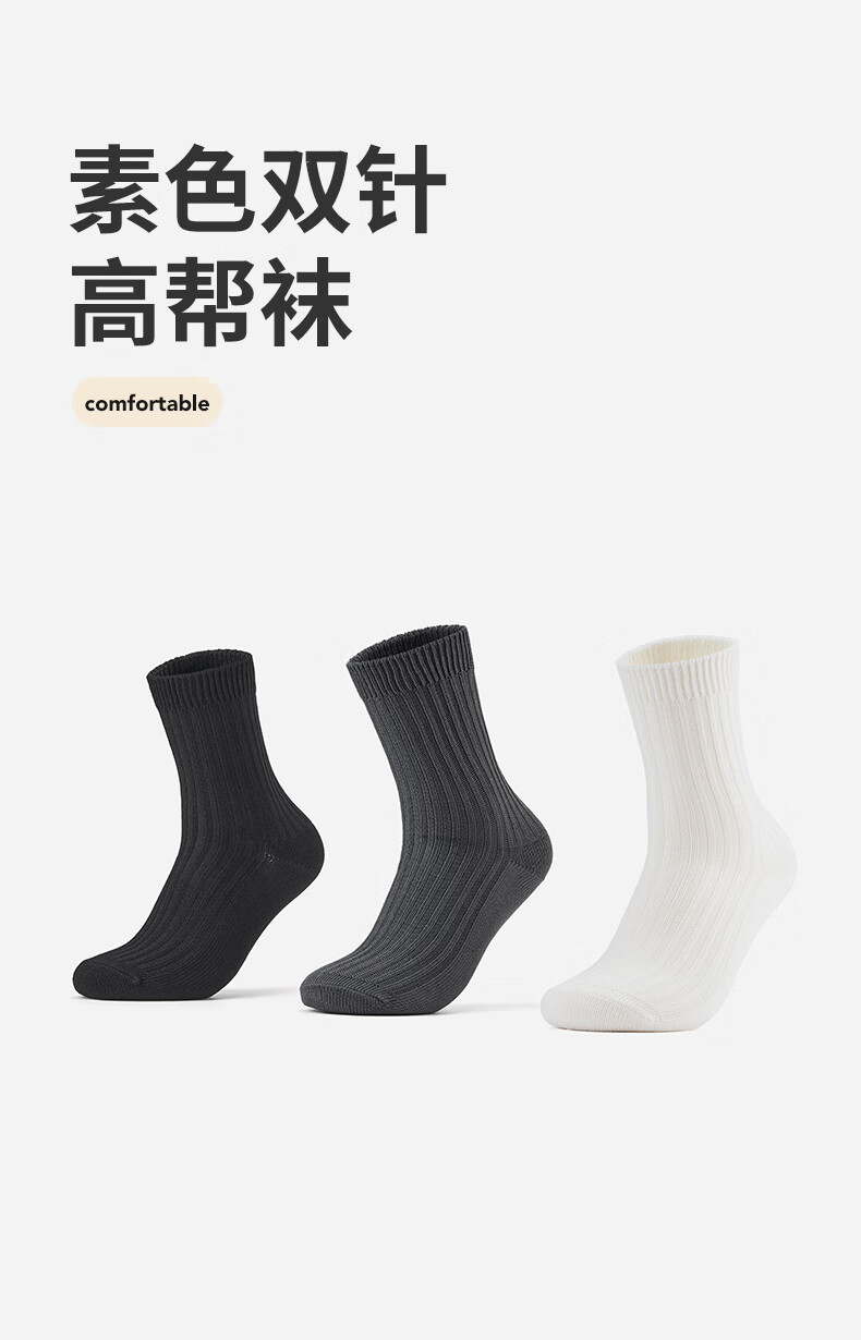 热风(Hotwind)【商场同款】男长筒袜2025年冬季新款男士素色双针精梳棉高帮袜 01黑色 1双 均码