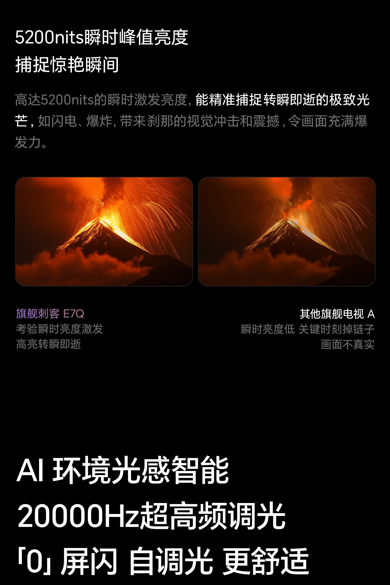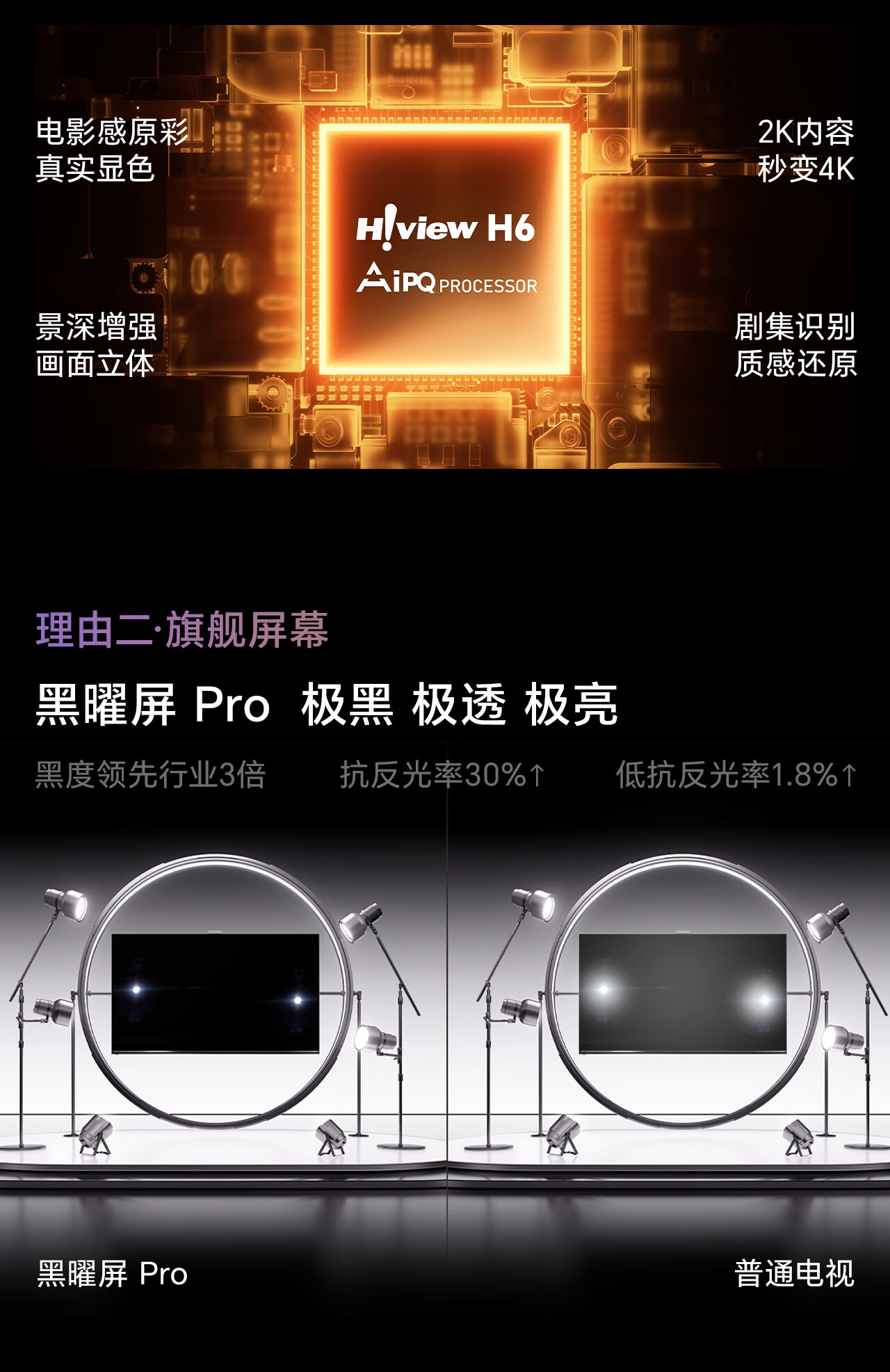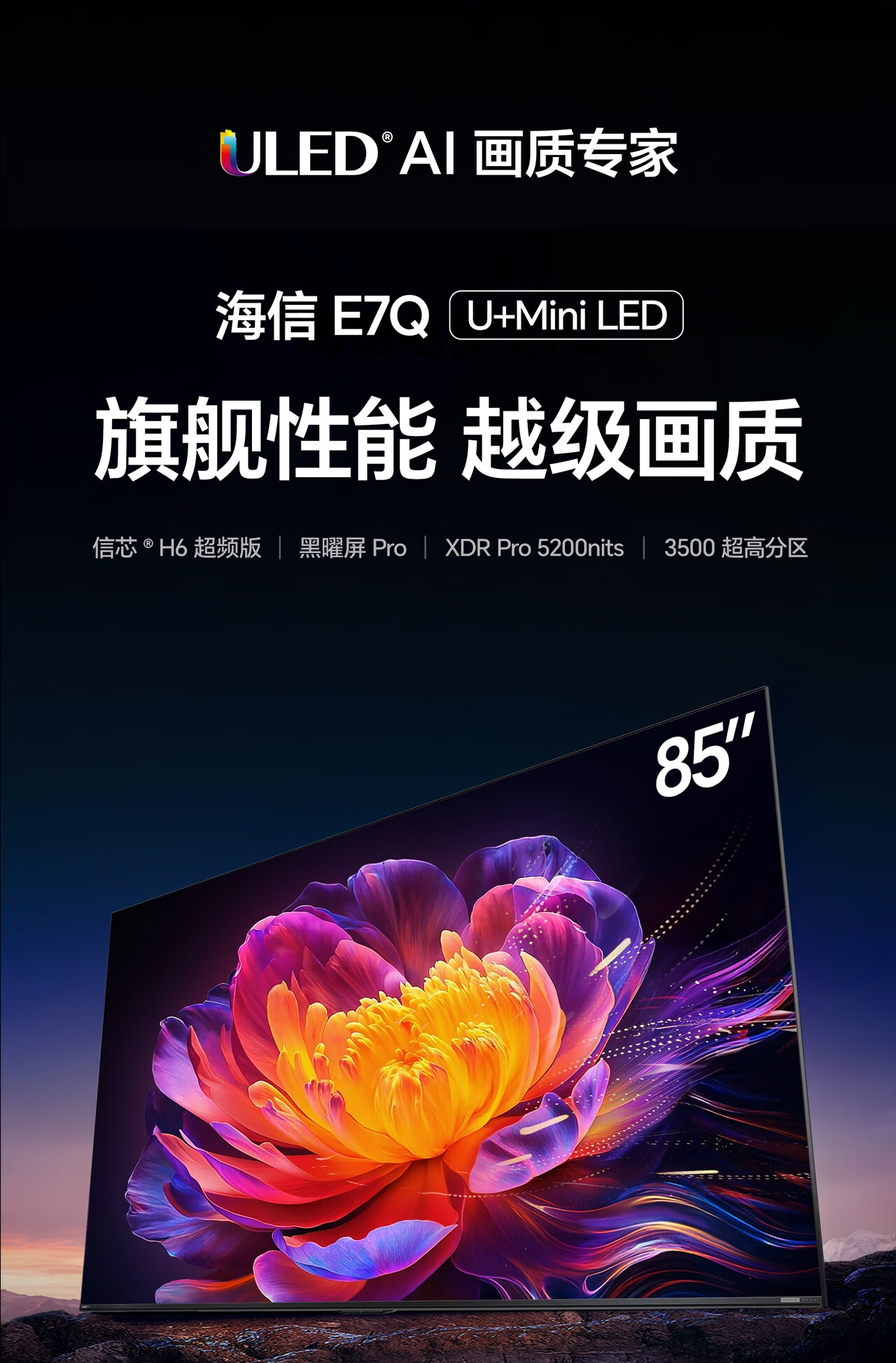 海信电视E7Q 85英寸 信芯芯片H6超频版 黑曜屏Pro XDR5200nits 3500分区 300Hz 国家补贴e7npro升级