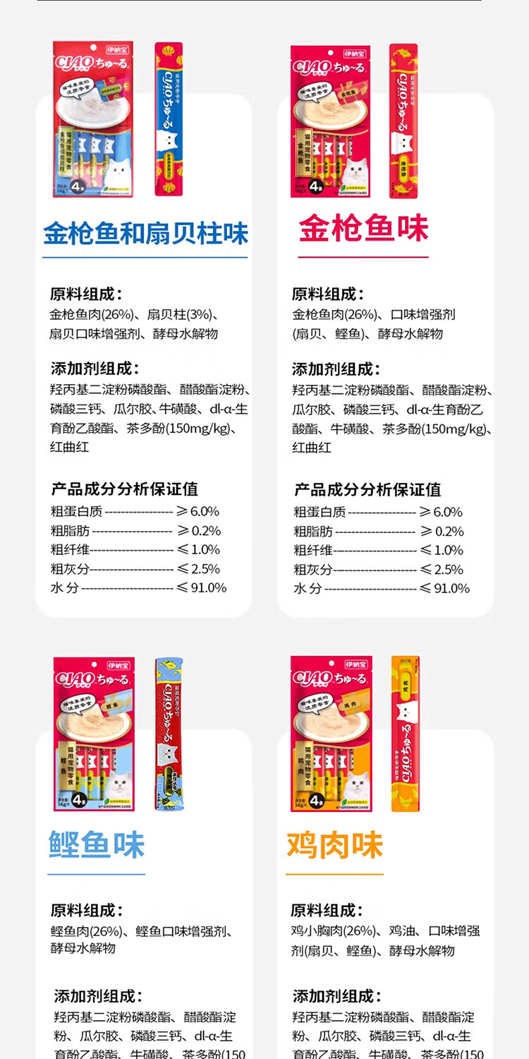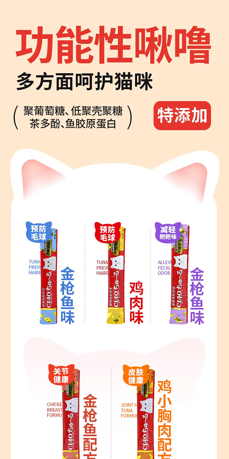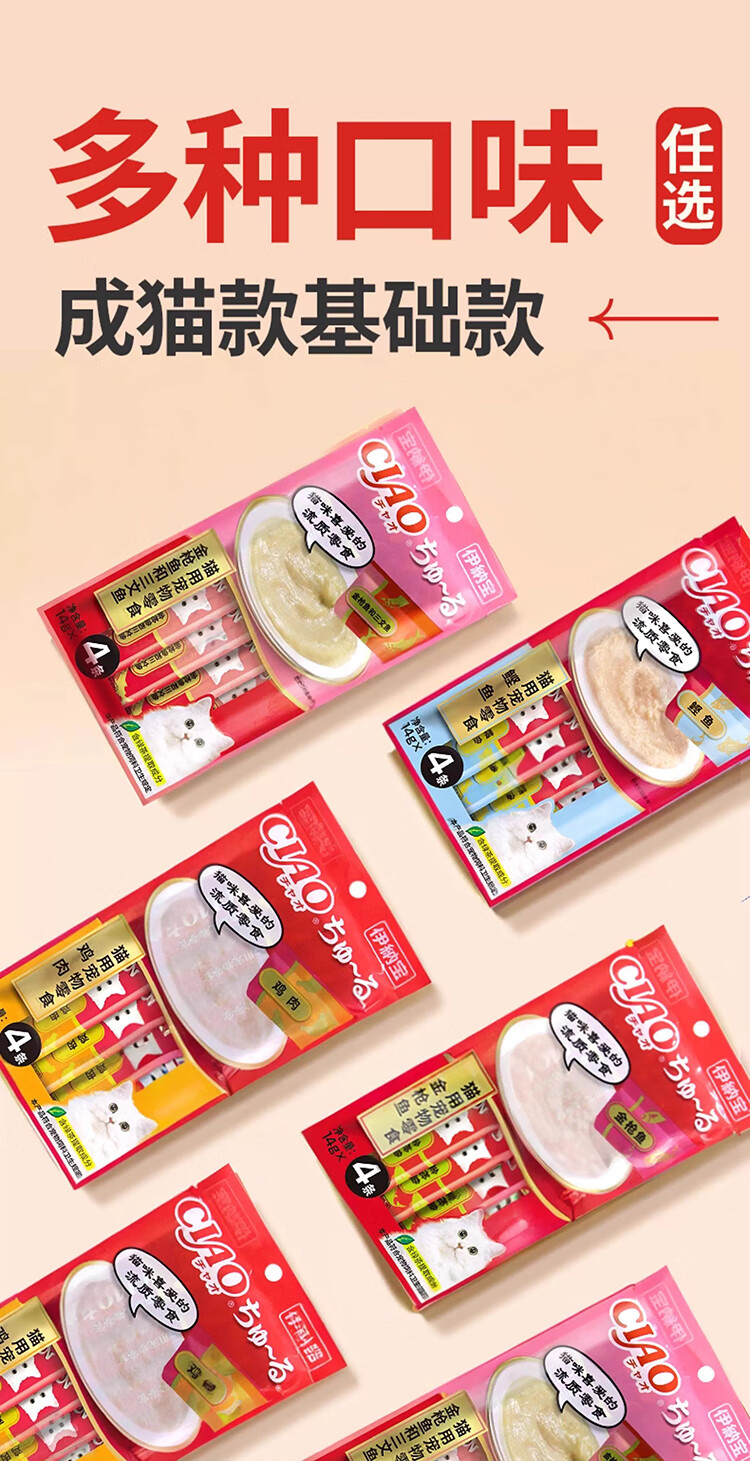 伊纳宝ciao猫零食成猫猫条宠物零食妙好啾噜流质零食布偶猫湿粮鱼条 【散装随机】混合口味14g*48条