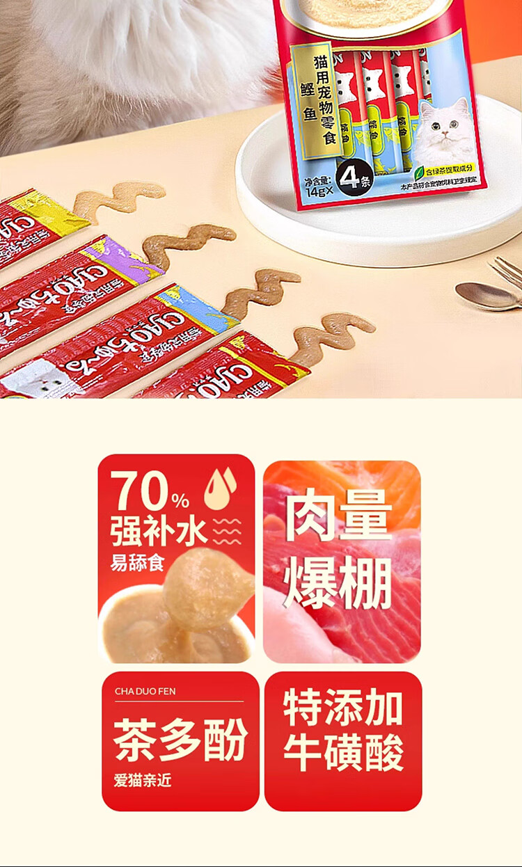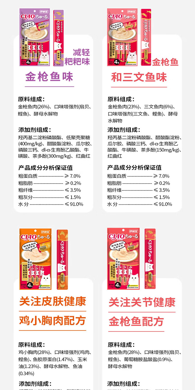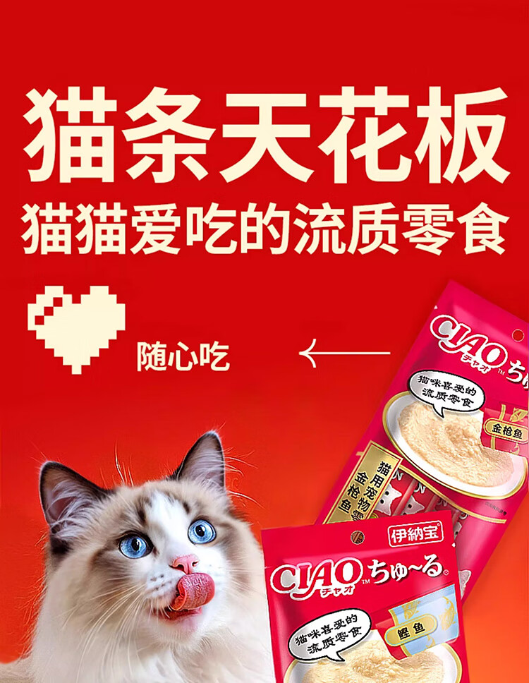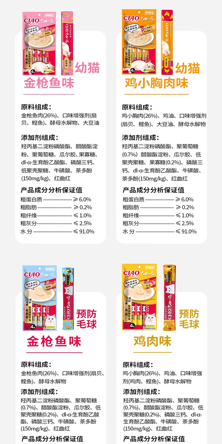 伊纳宝ciao猫零食成猫猫条宠物零食妙好啾噜流质零食布偶猫湿粮鱼条 【散装随机】混合口味14g*48条