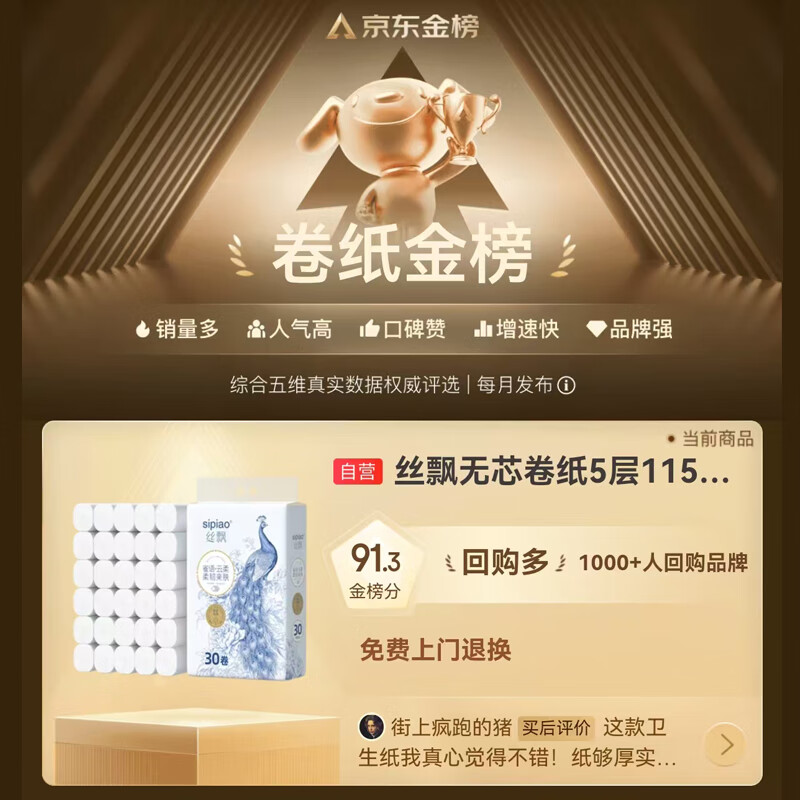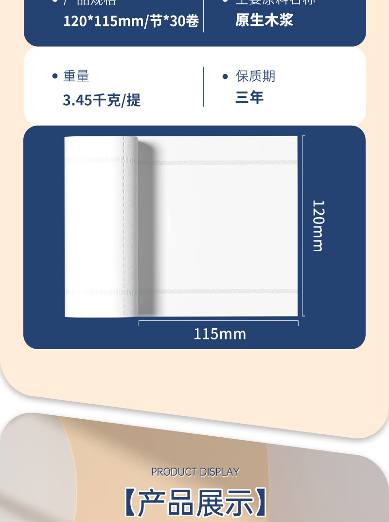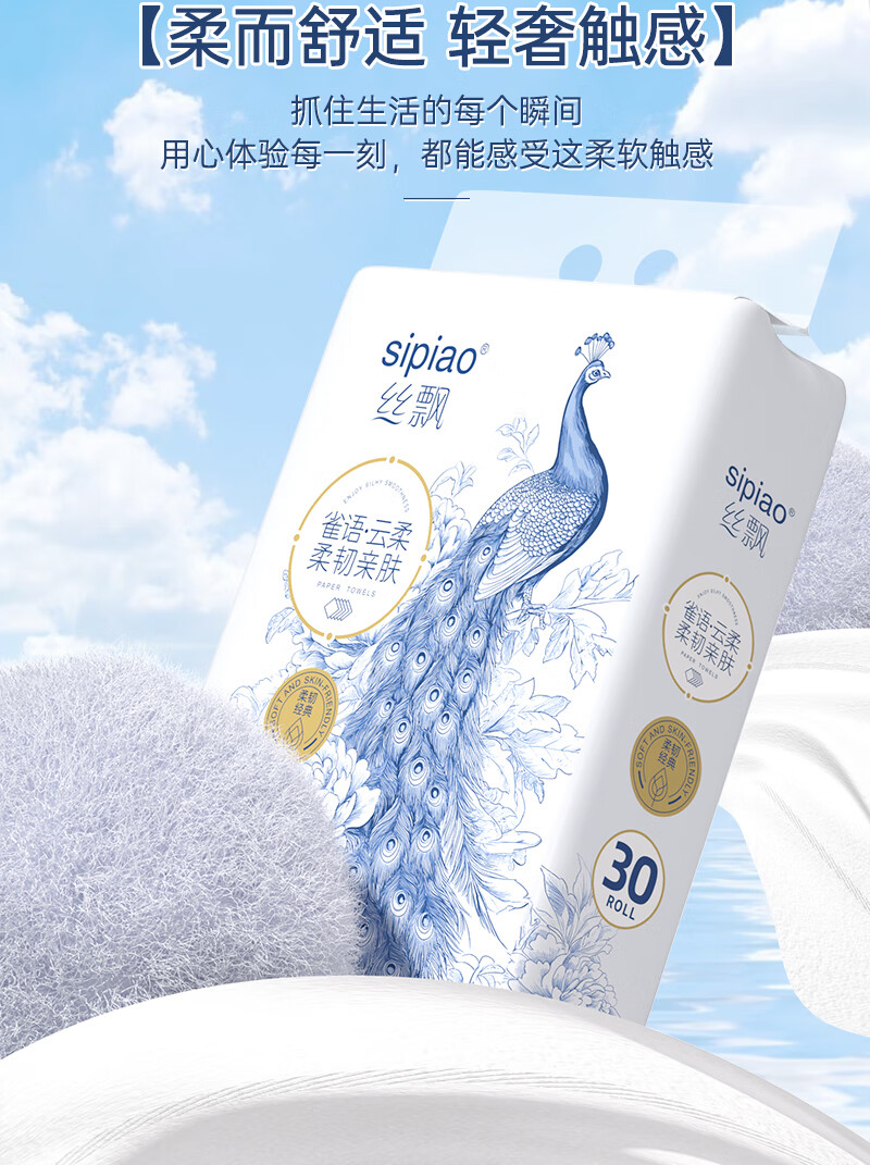 丝飘无芯卷纸加厚5层3450克30卷厕纸大卷家庭囤货装卫生纸软卷纸巾
