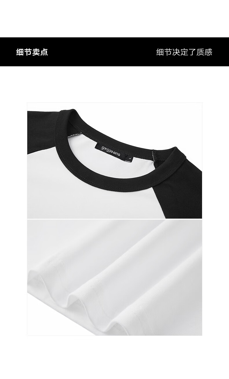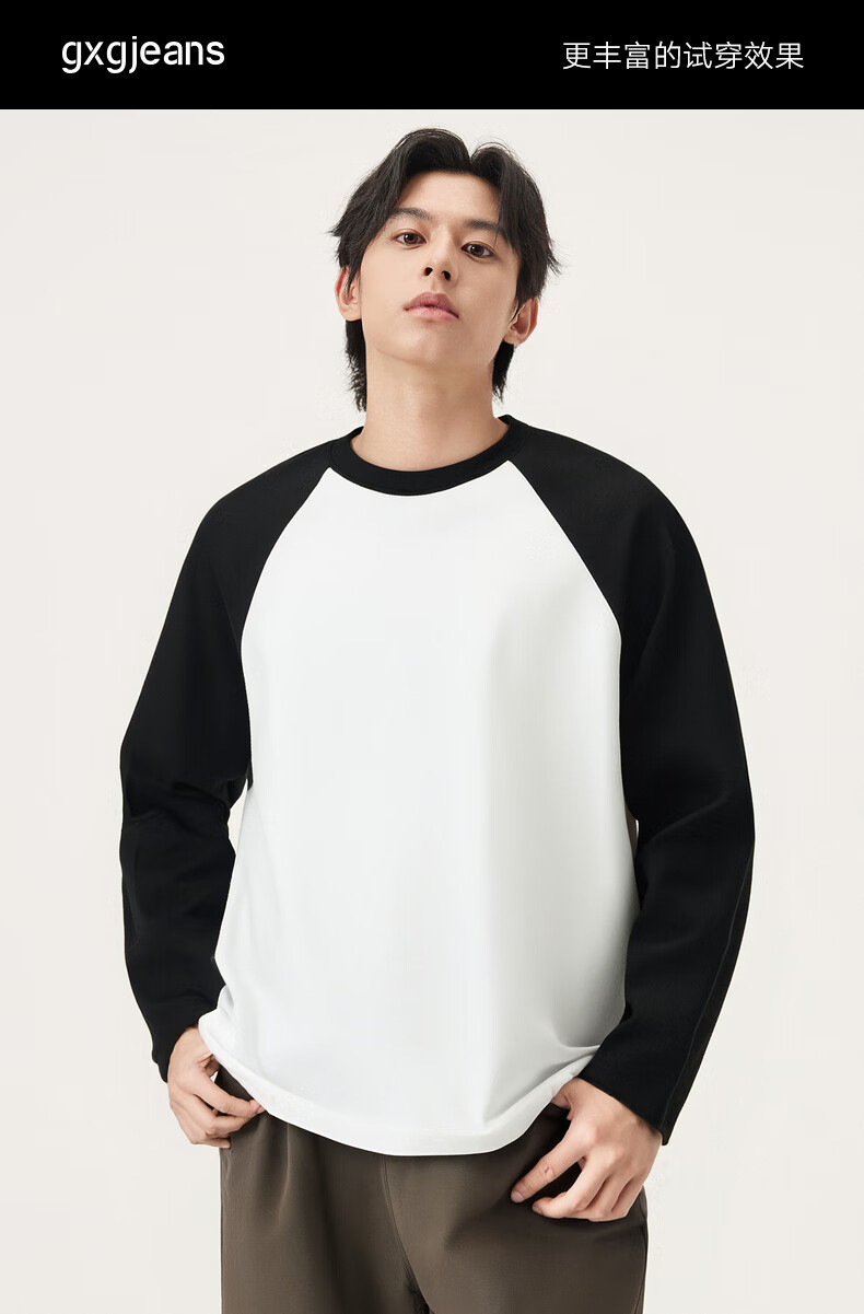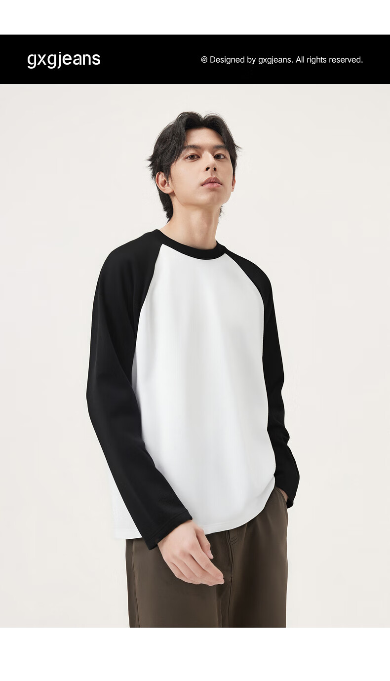 gxg.jeans男装* 多色插肩袖基础打底长袖T恤男女同款情侣 25秋新品 白色/黑色 L (175)