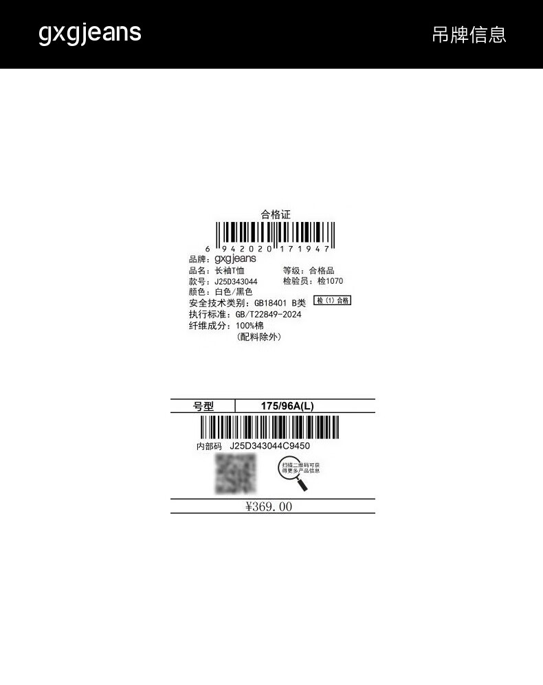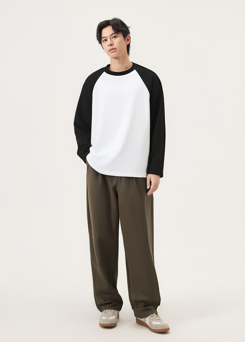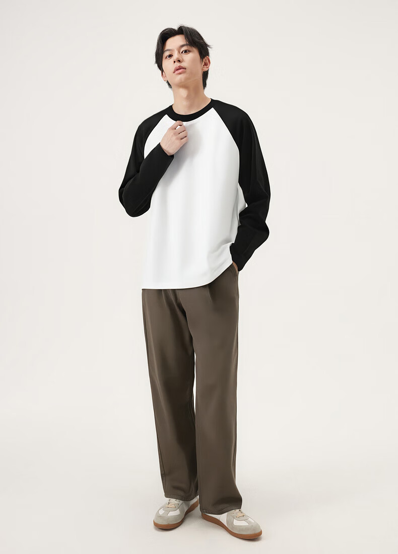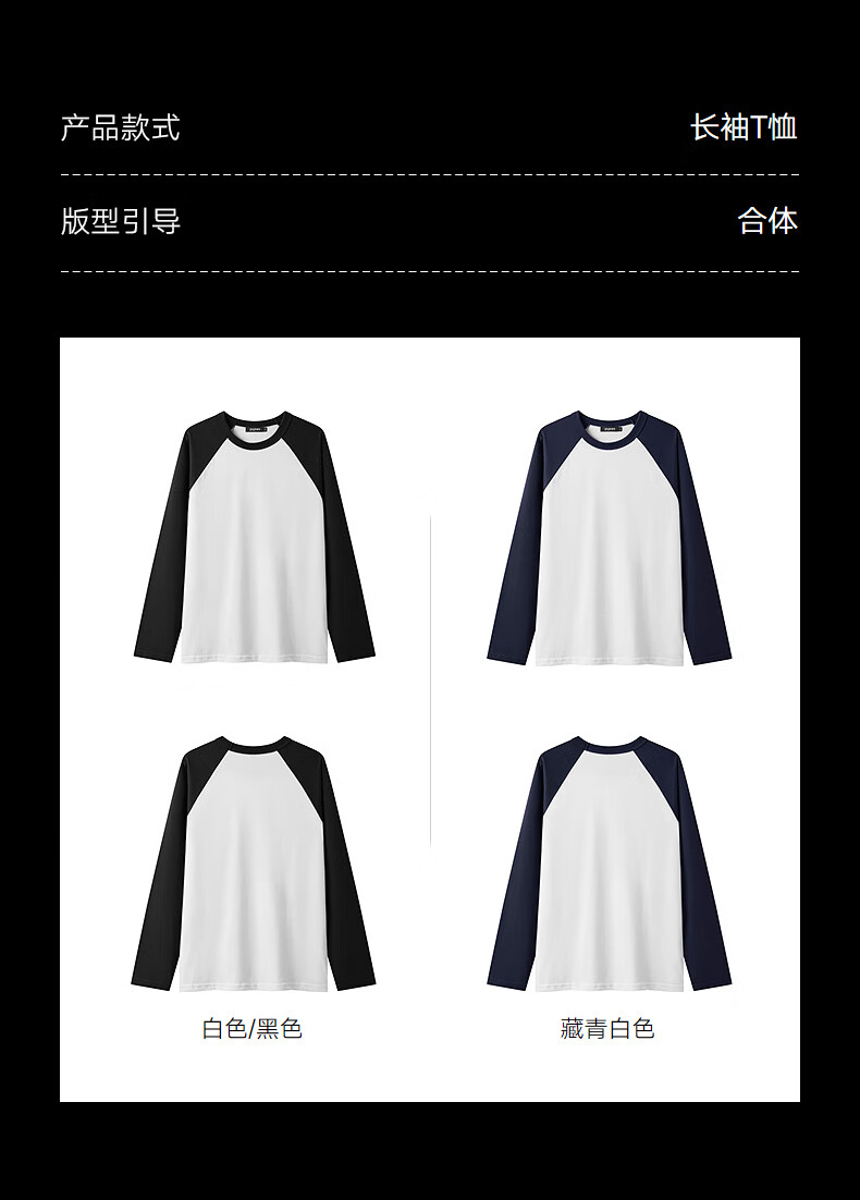 gxg.jeans男装* 多色插肩袖基础打底长袖T恤男女同款情侣 25秋新品 白色/黑色 L (175)