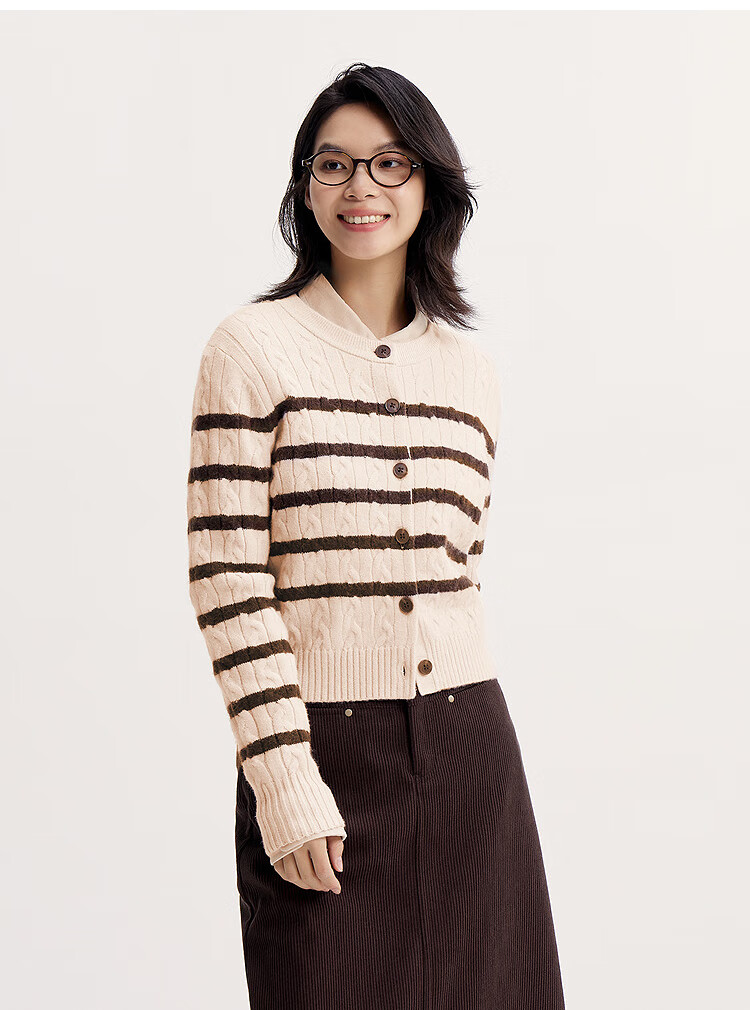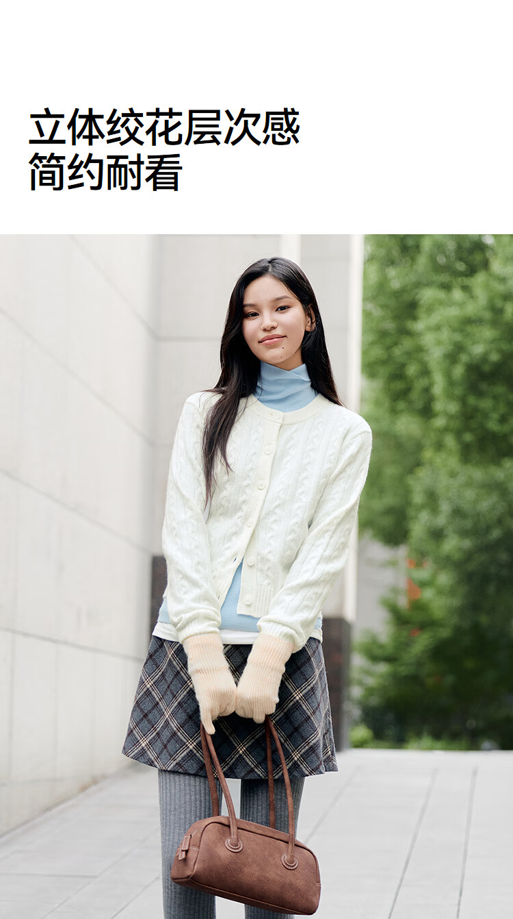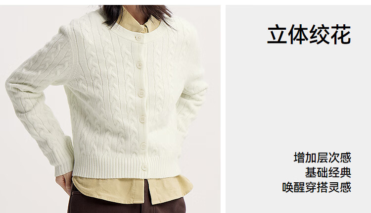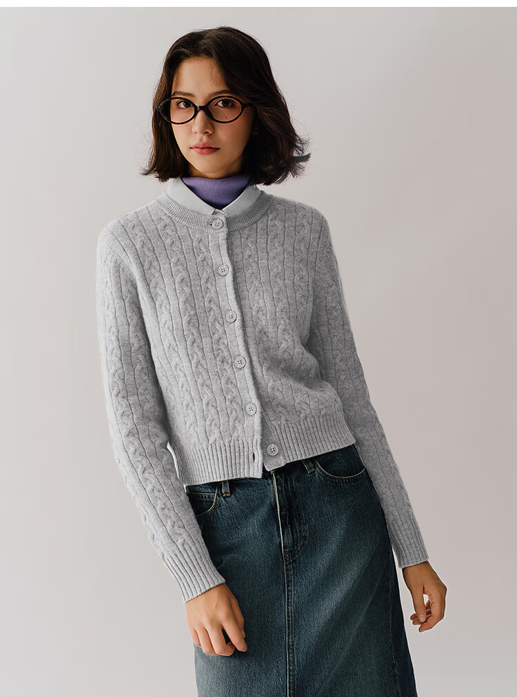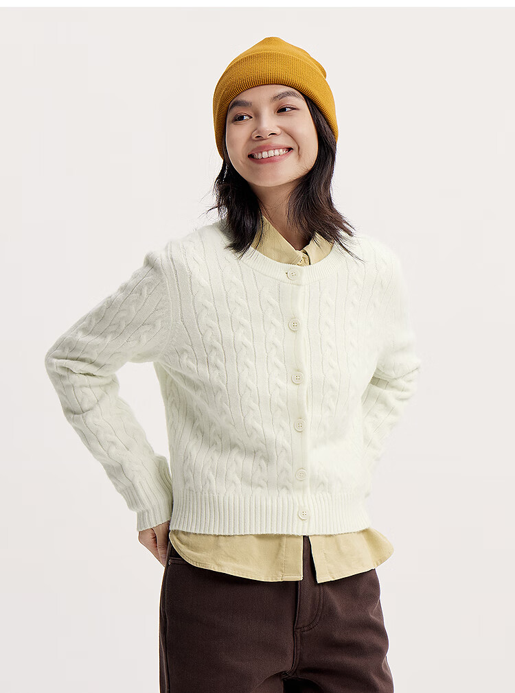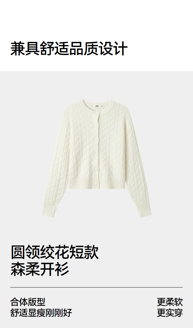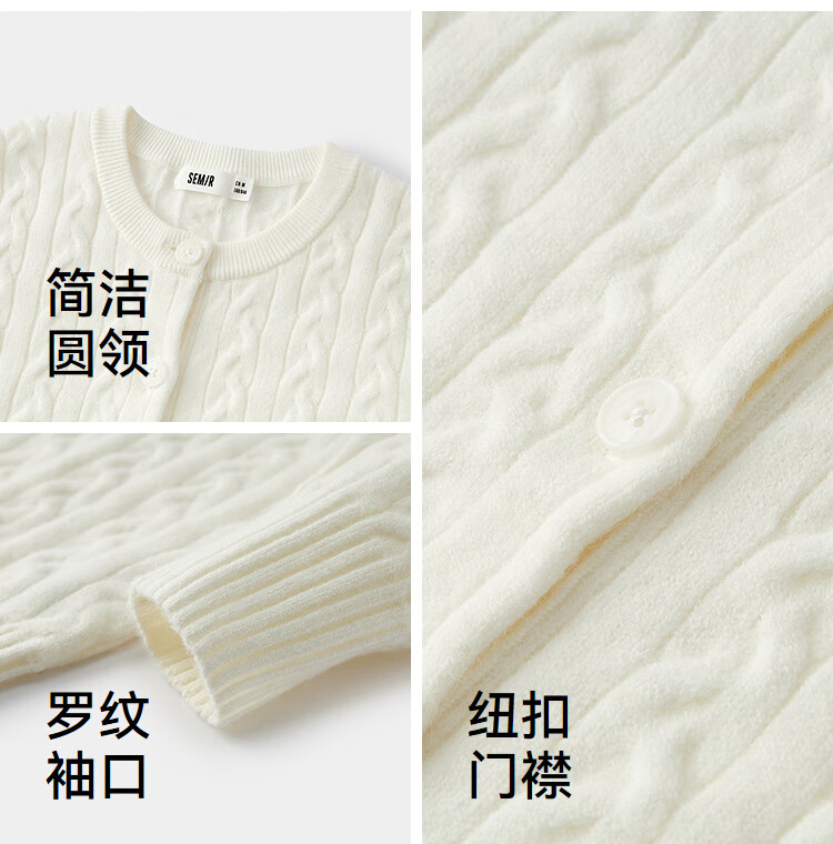 森马(Semir)森柔|针织开衫女冬季短款绞花肌理圆领毛衫打底上衣101724106001