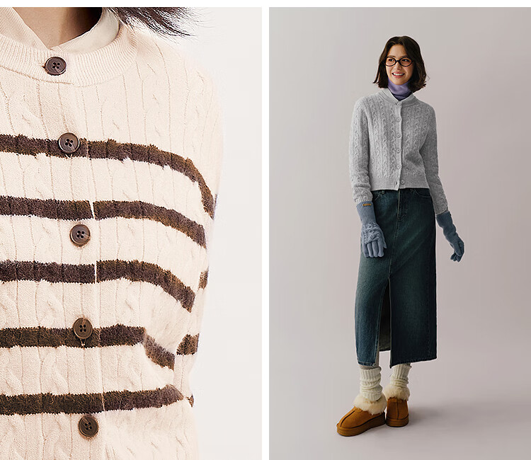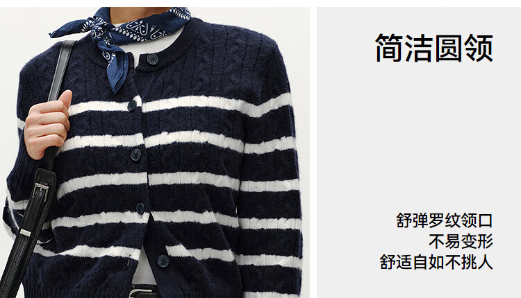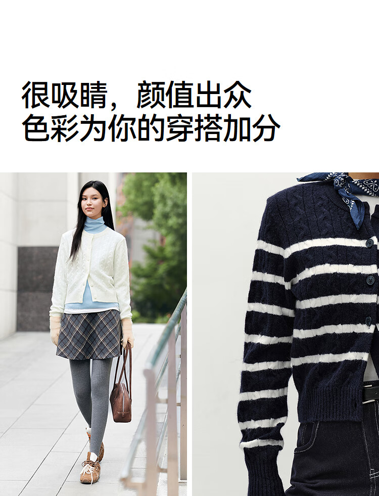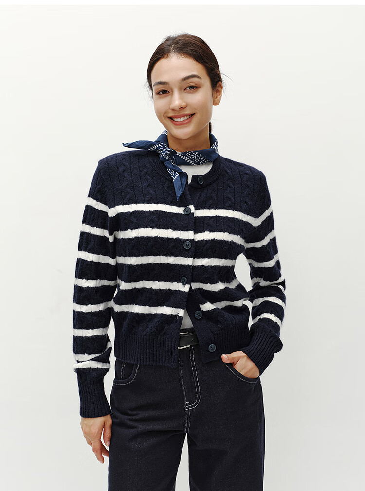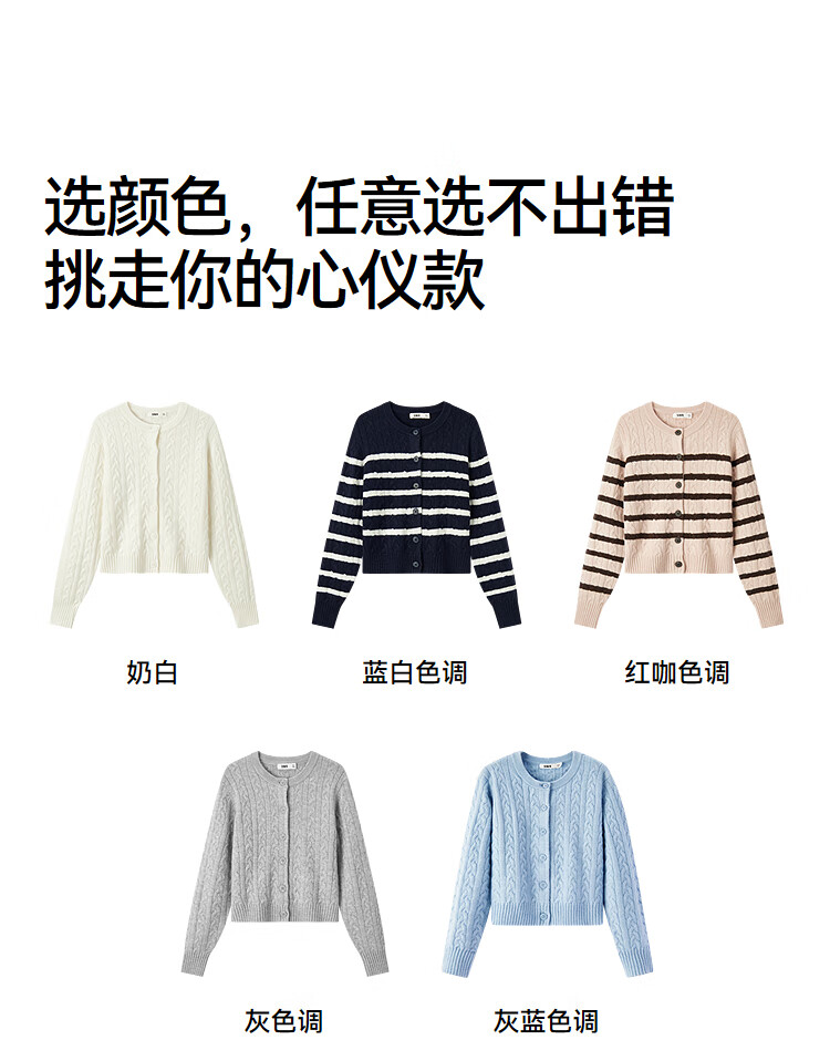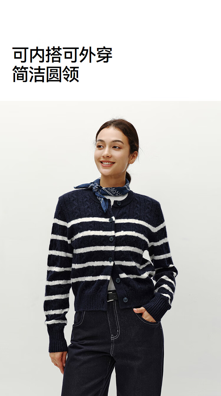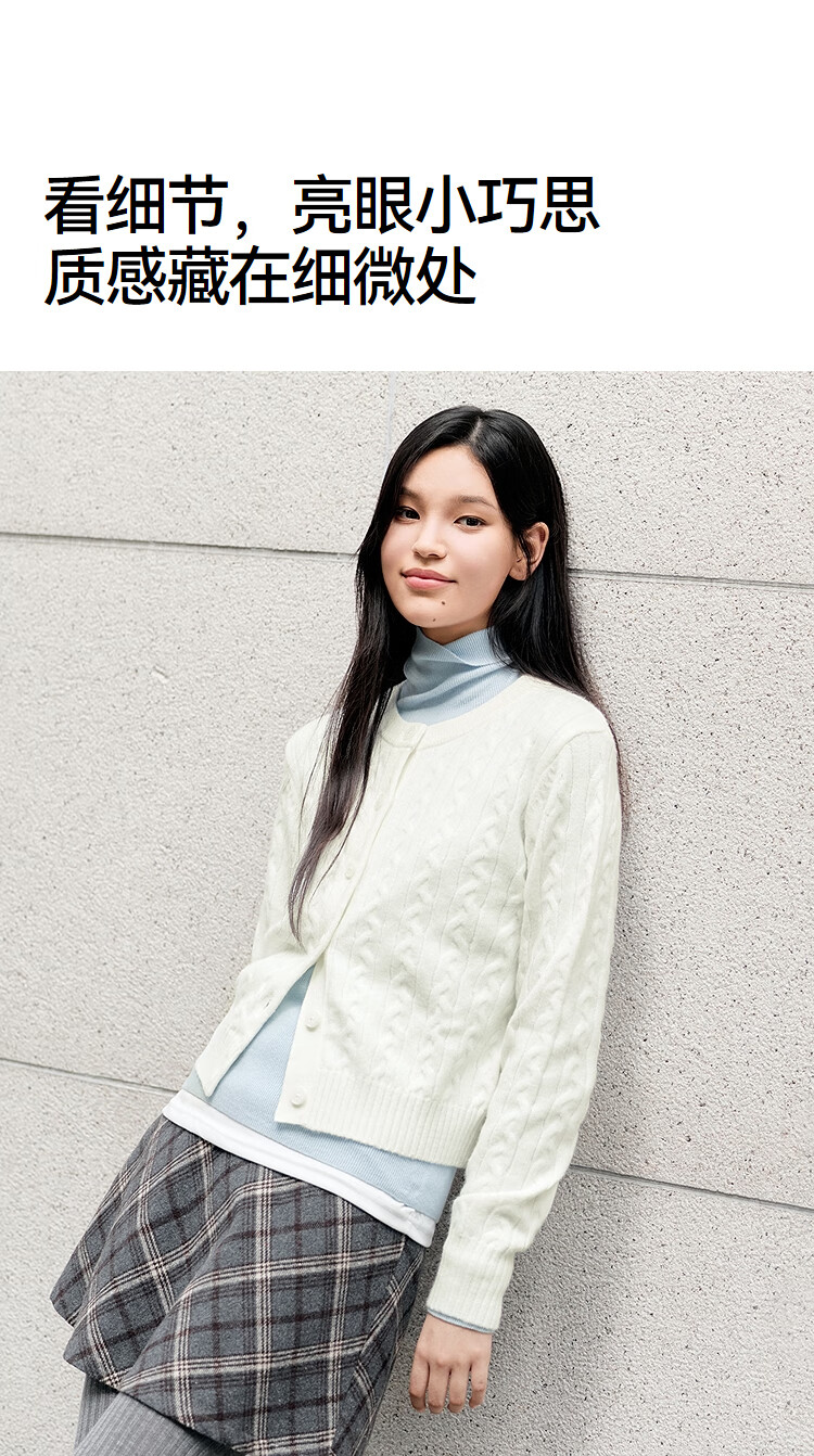 森马(Semir)森柔|针织开衫女冬季短款绞花肌理圆领毛衫打底上衣101724106001