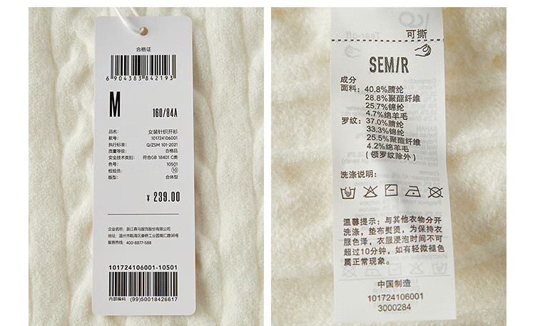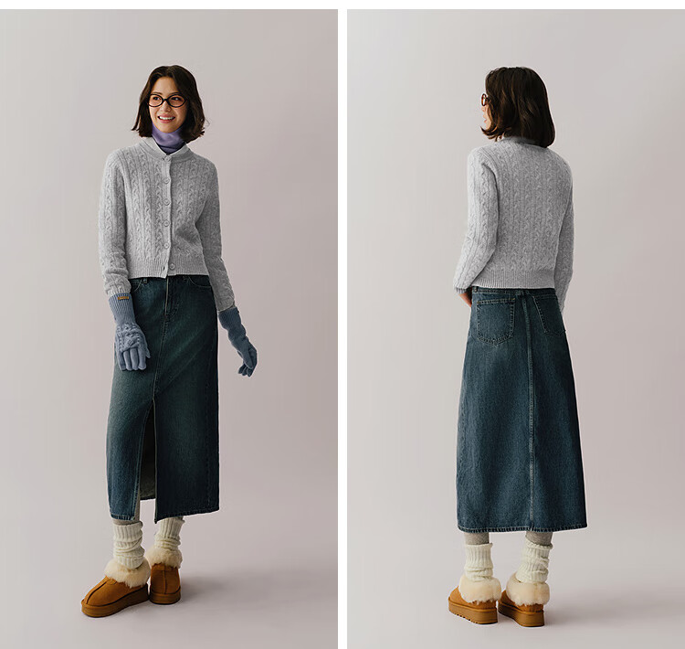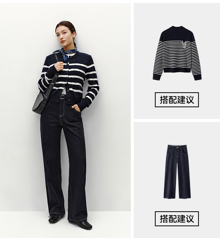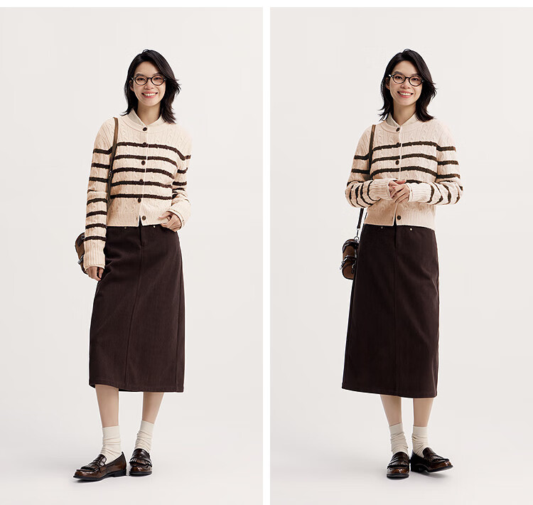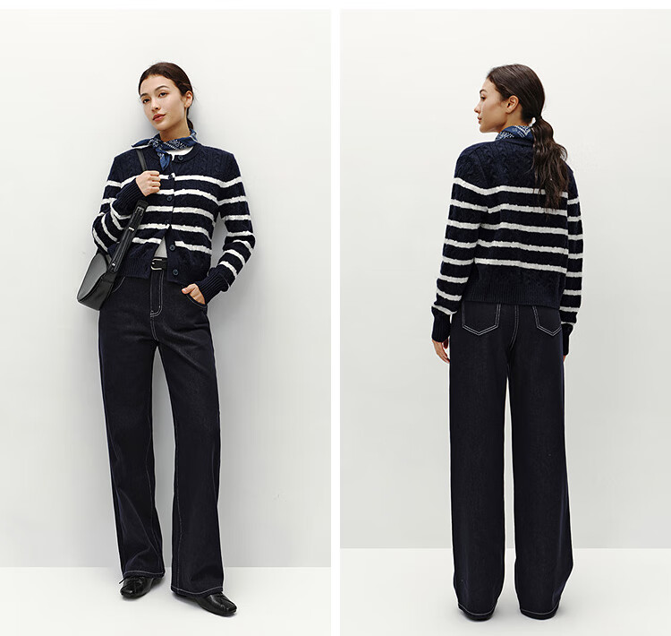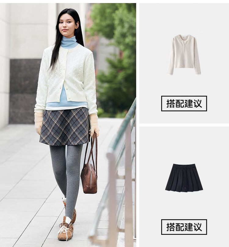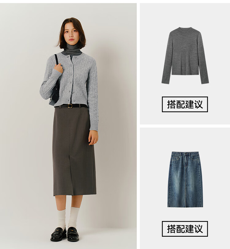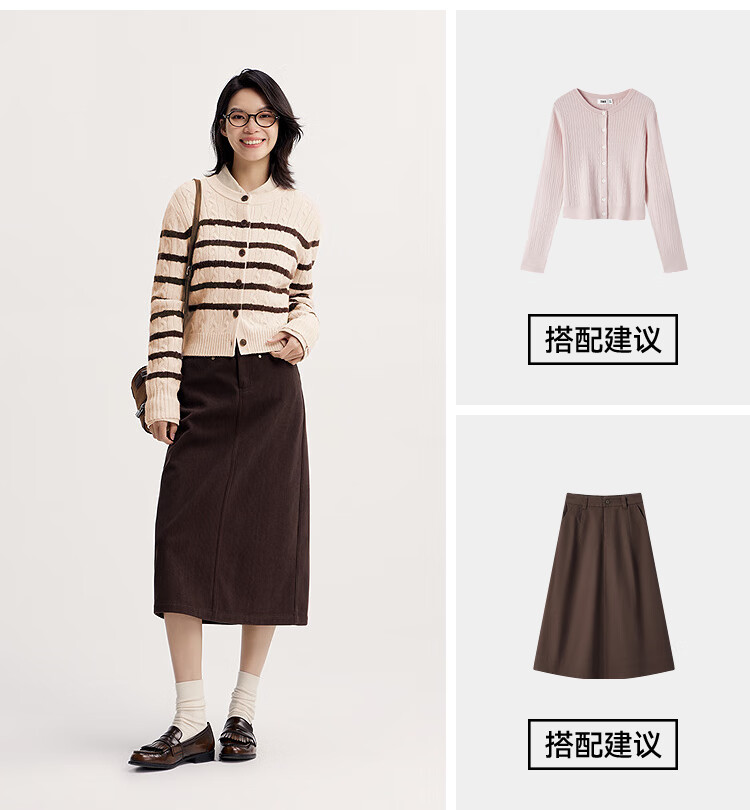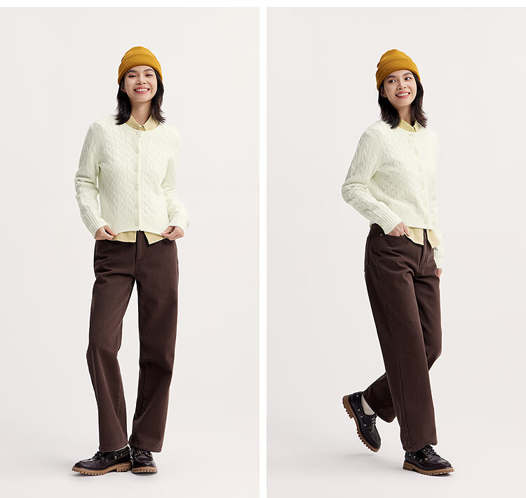 森马(Semir)森柔|针织开衫女冬季短款绞花肌理圆领毛衫打底上衣101724106001