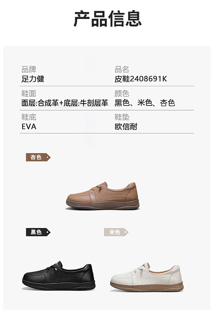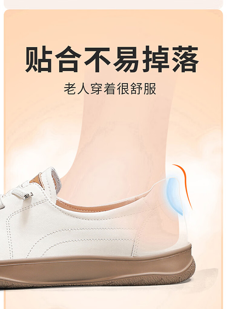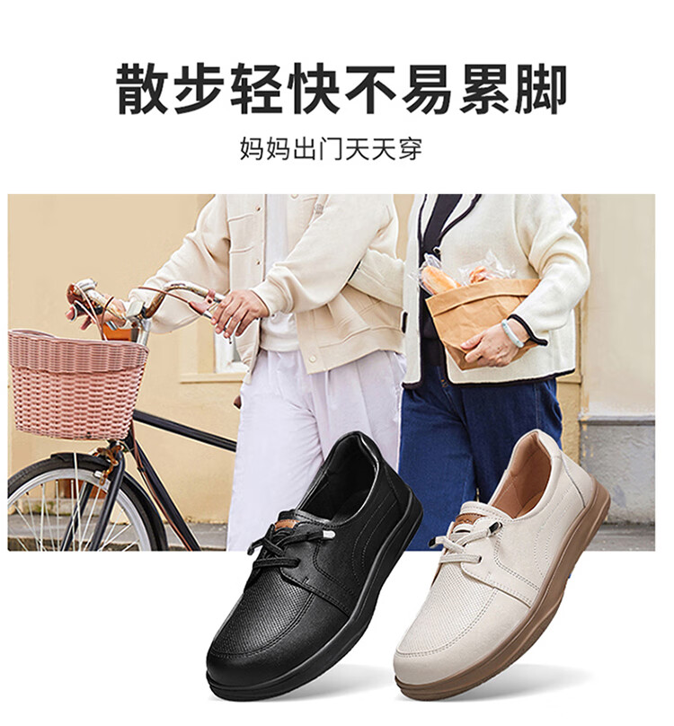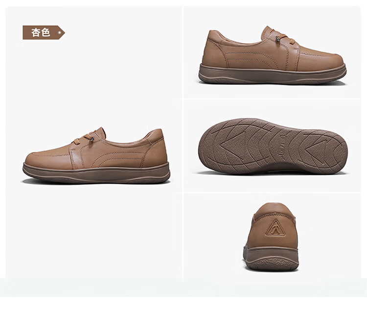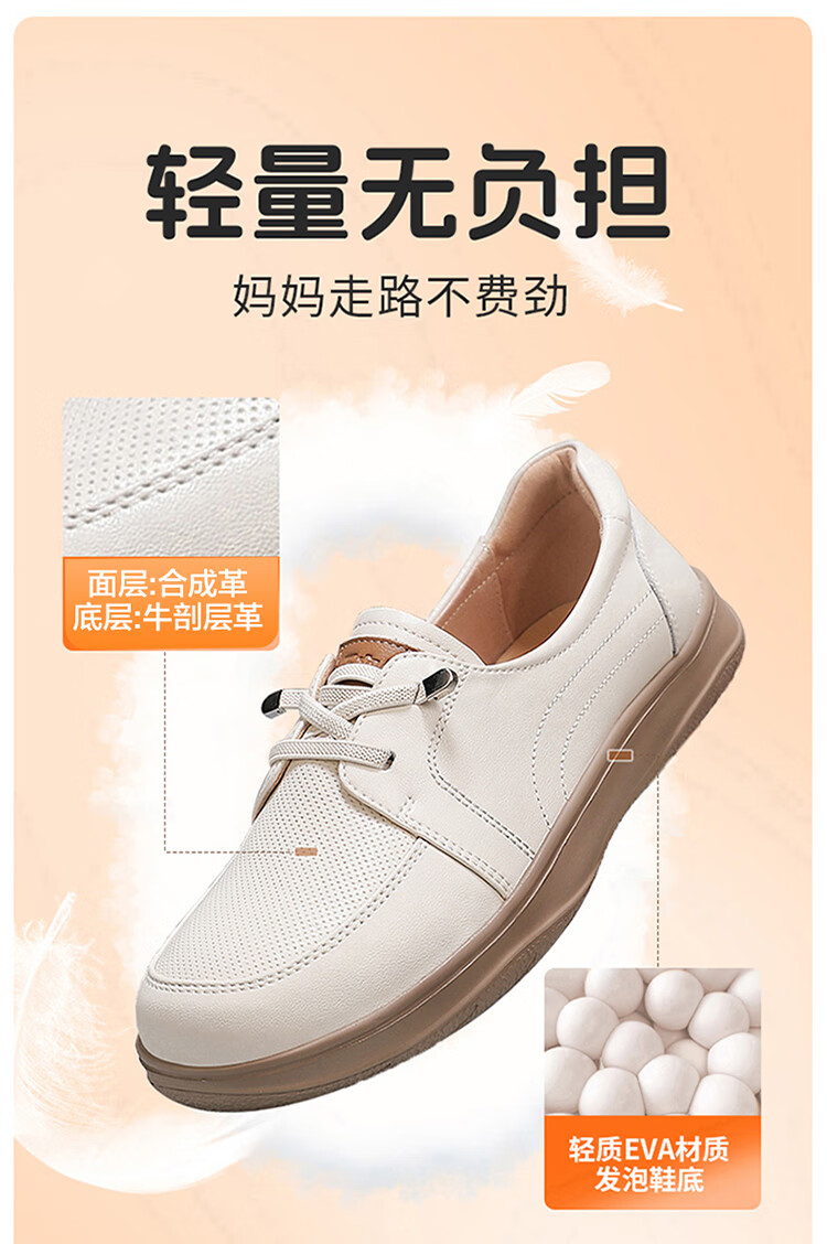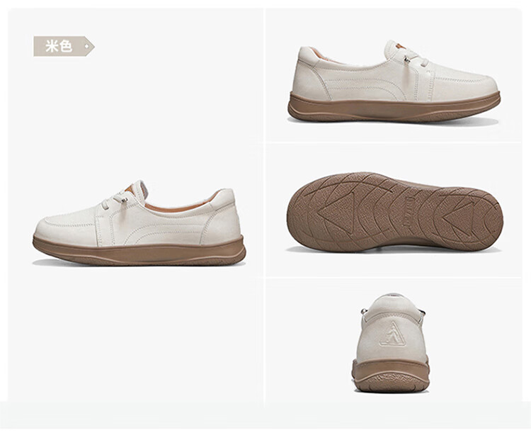 足力健老人鞋秋冬女士单鞋软底休闲皮鞋中老年妈妈鞋乐福鞋 8691K米色39