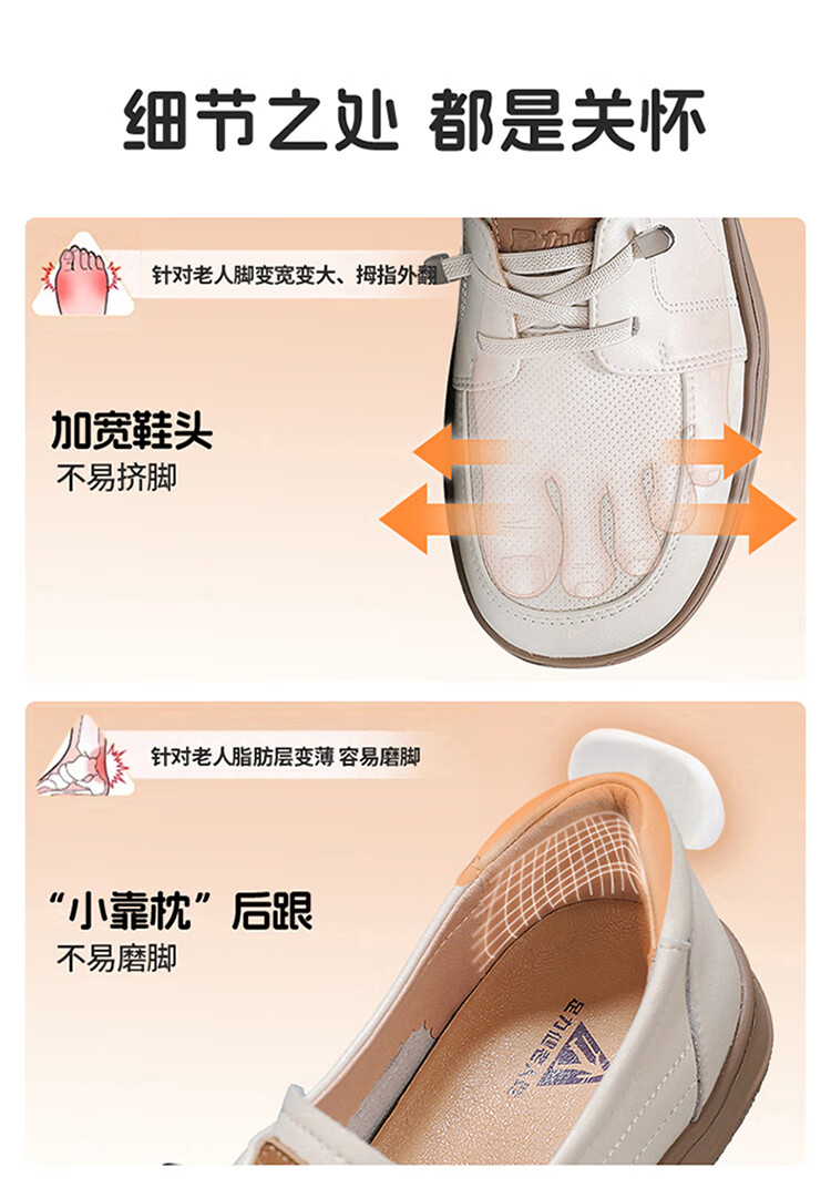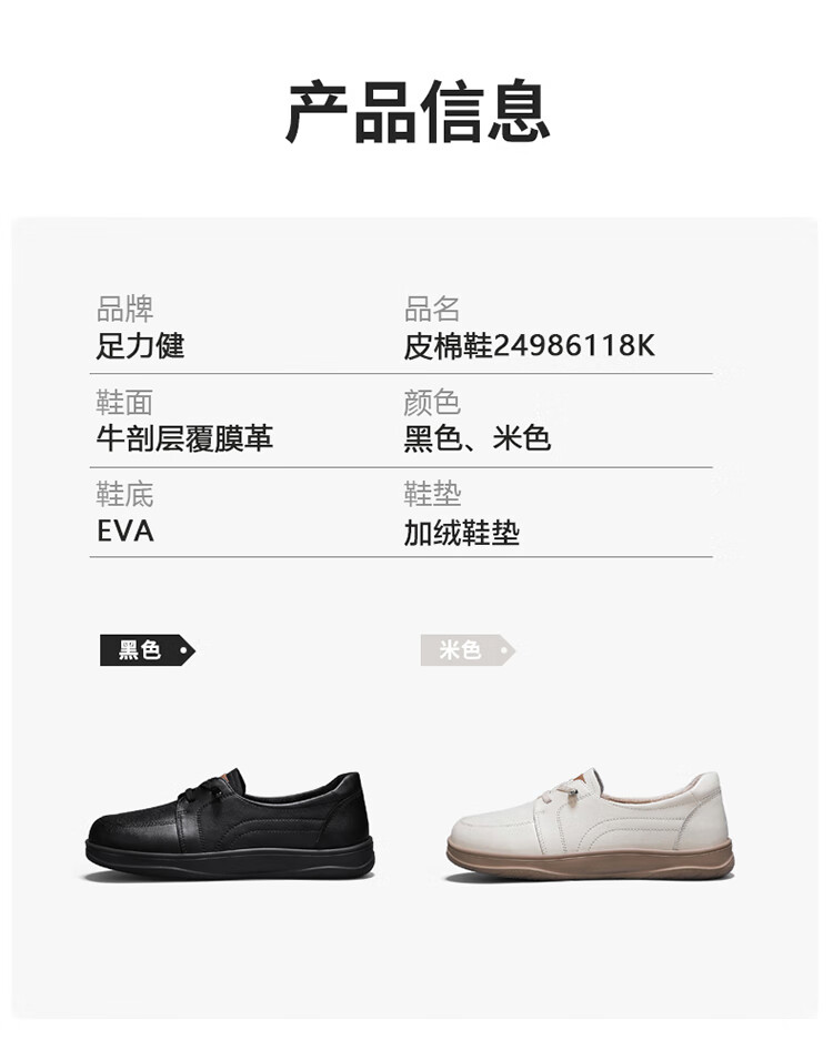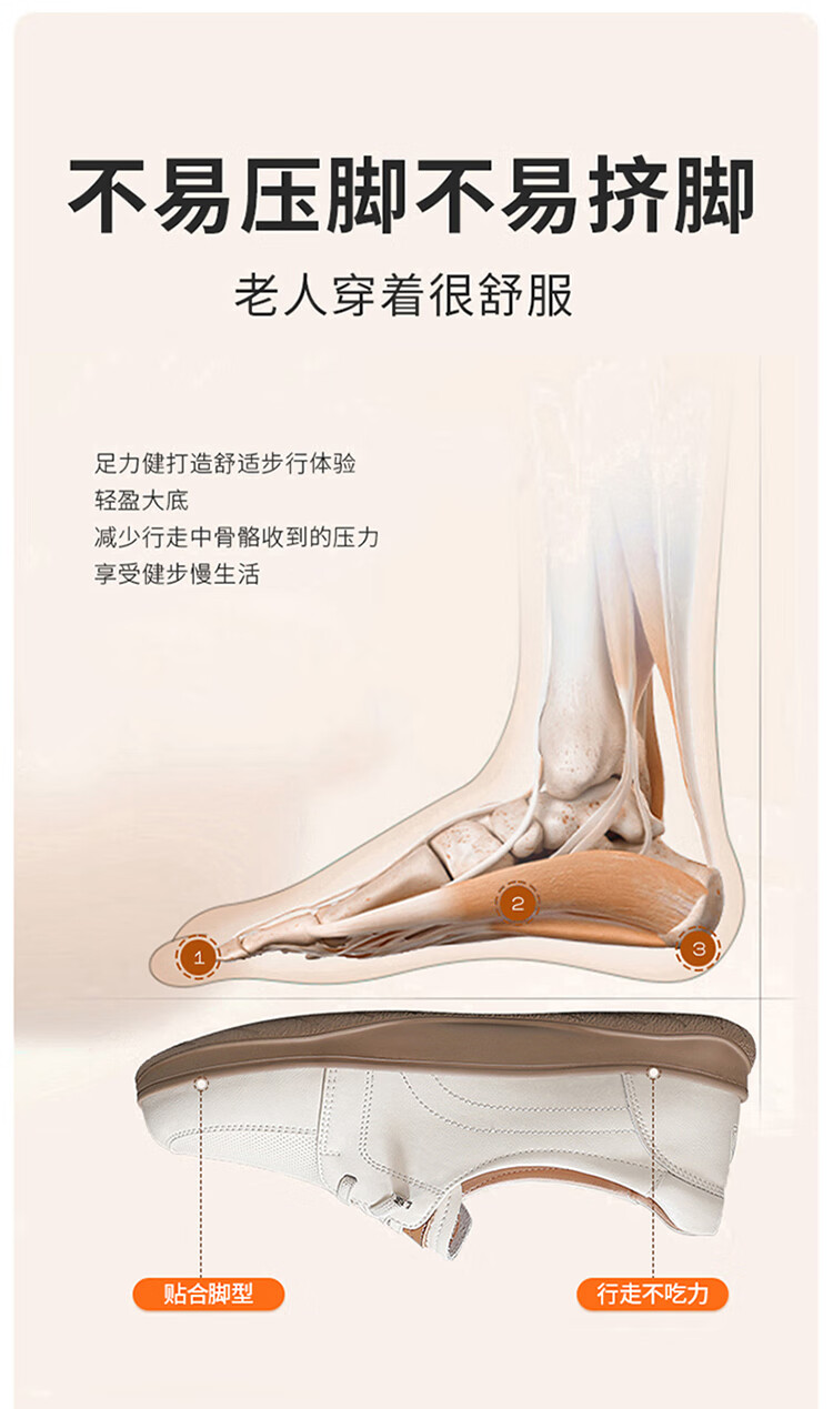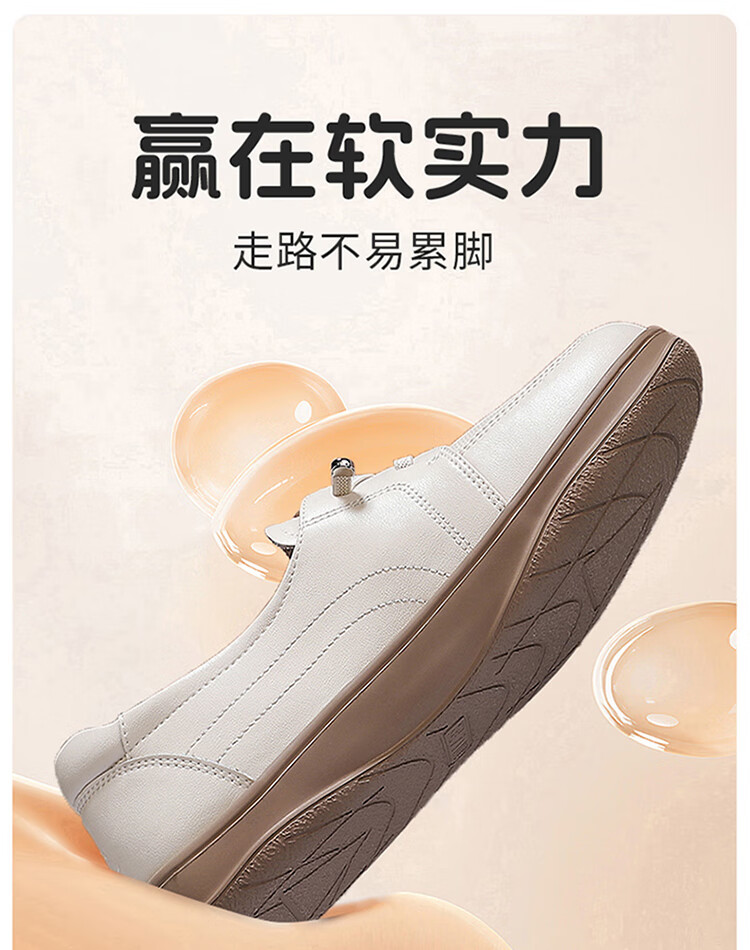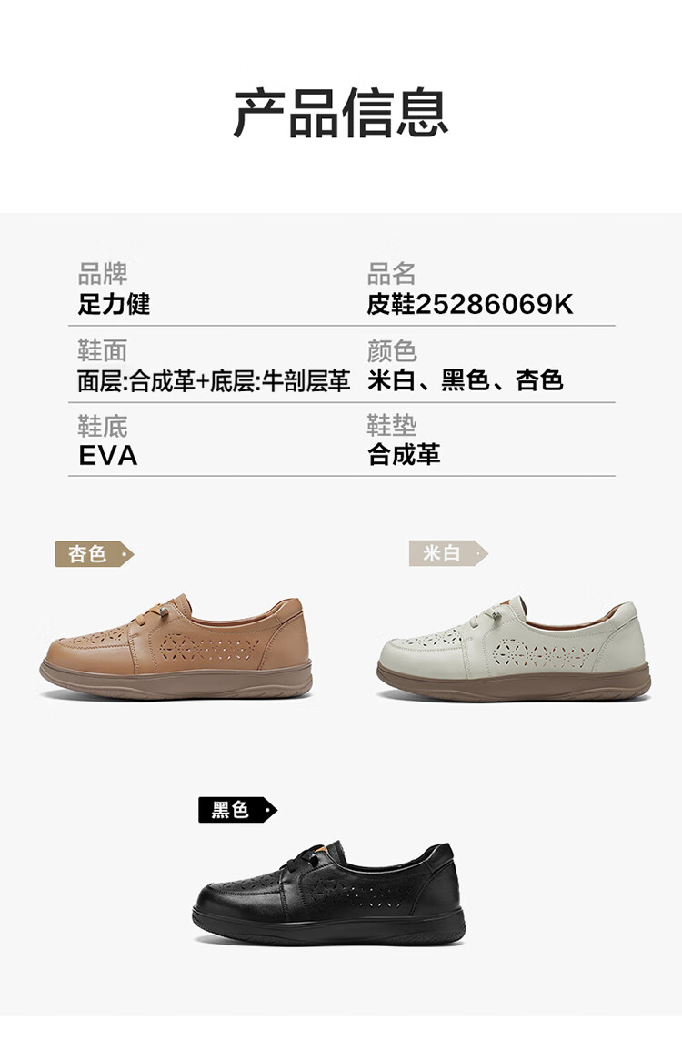 足力健老人鞋秋冬女士单鞋软底休闲皮鞋中老年妈妈鞋乐福鞋 8691K米色39