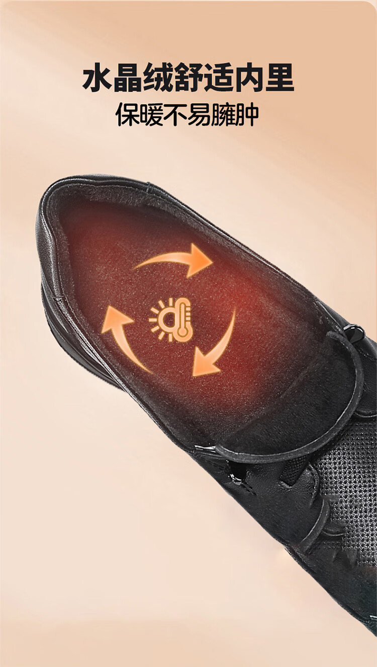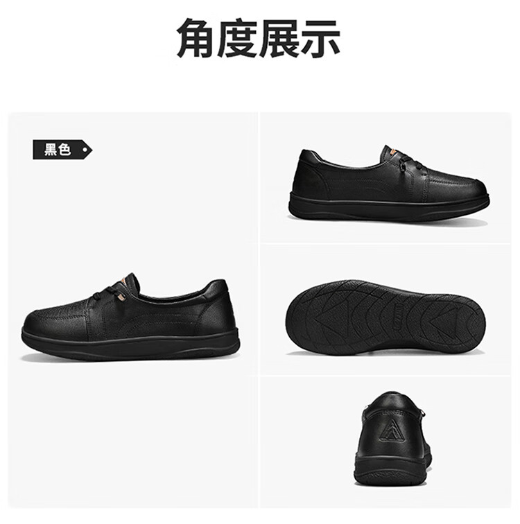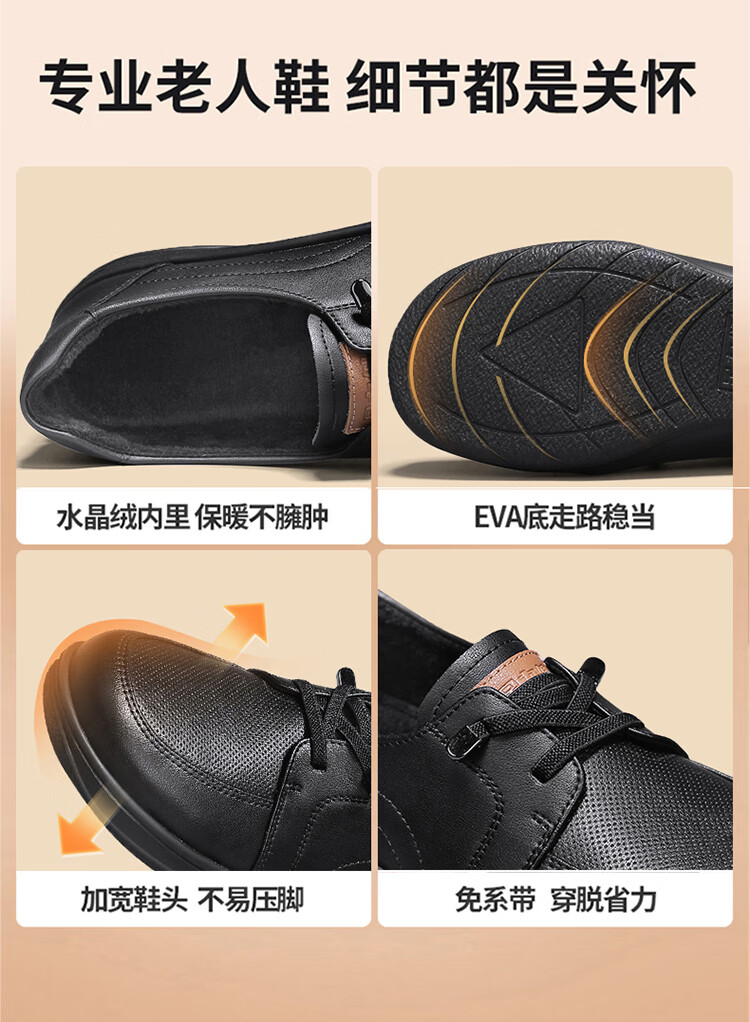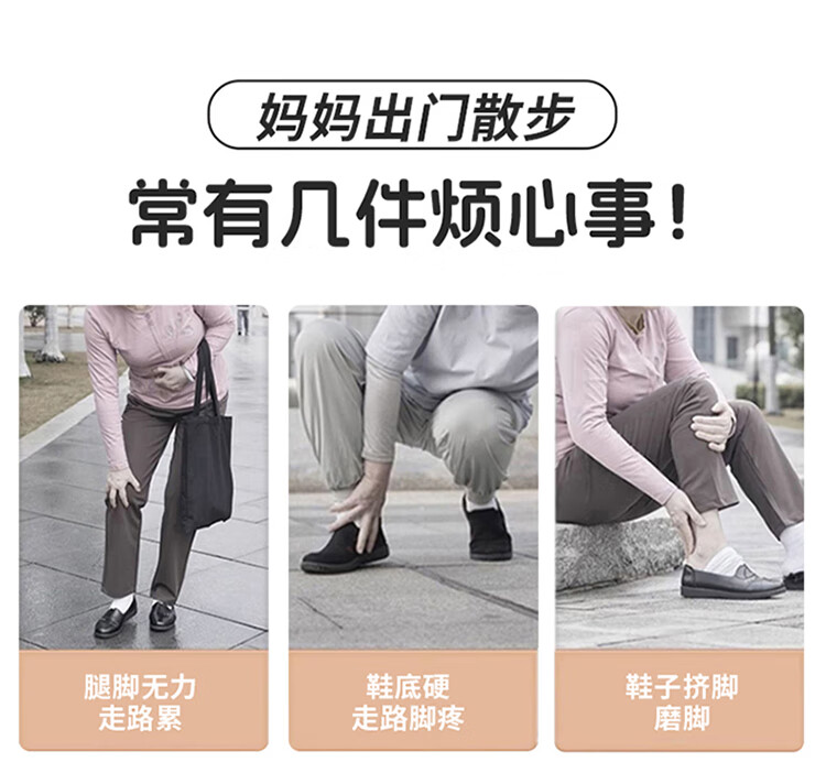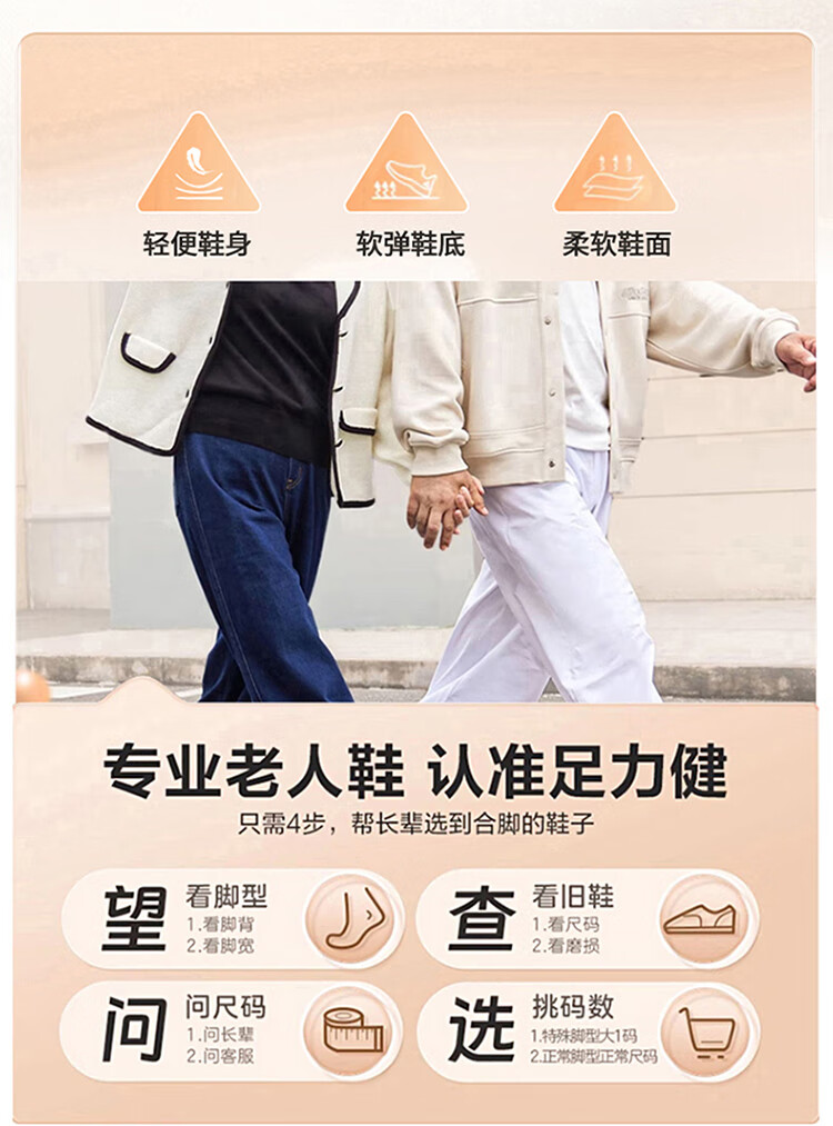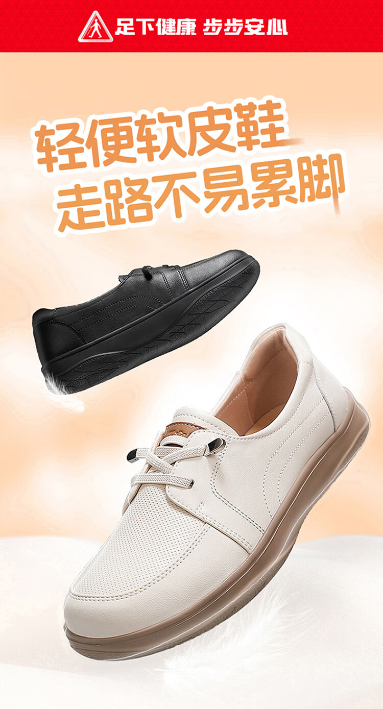 足力健老人鞋秋冬女士单鞋软底休闲皮鞋中老年妈妈鞋乐福鞋 8691K米色39