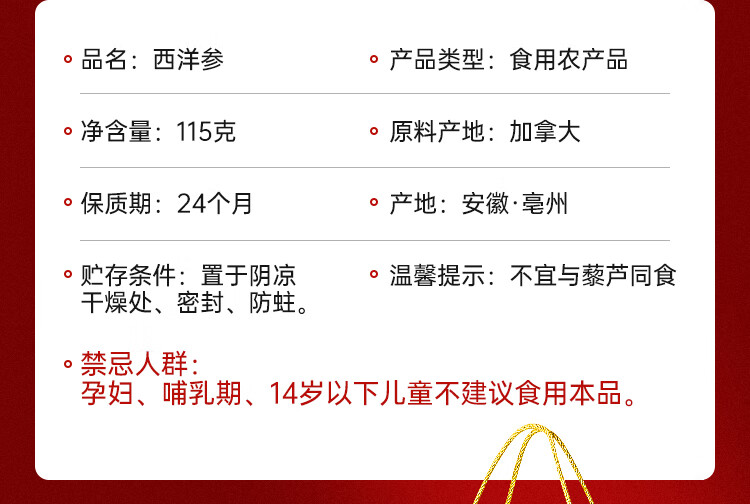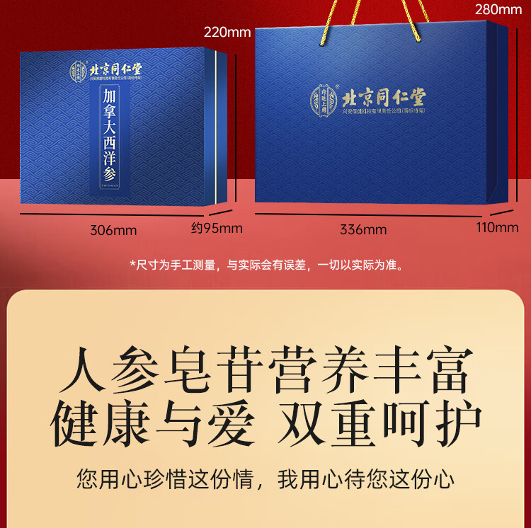同仁堂品牌 北京同仁堂西洋参片礼盒100g1号片花旗参礼品送父母长辈补品