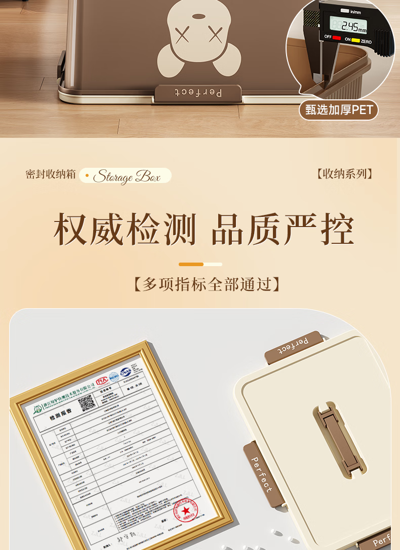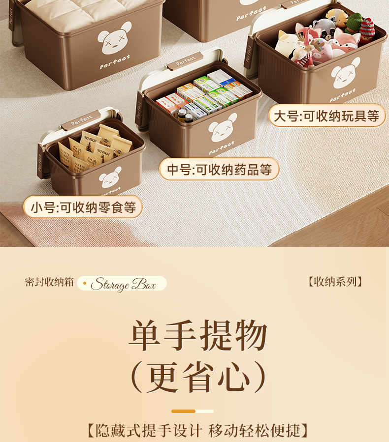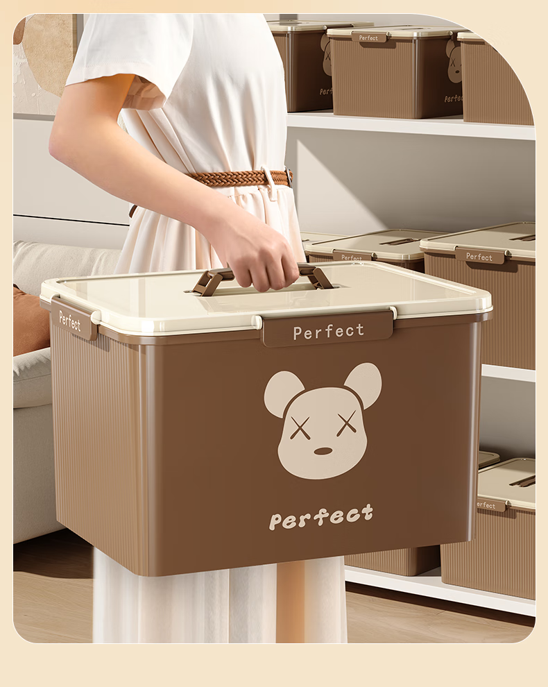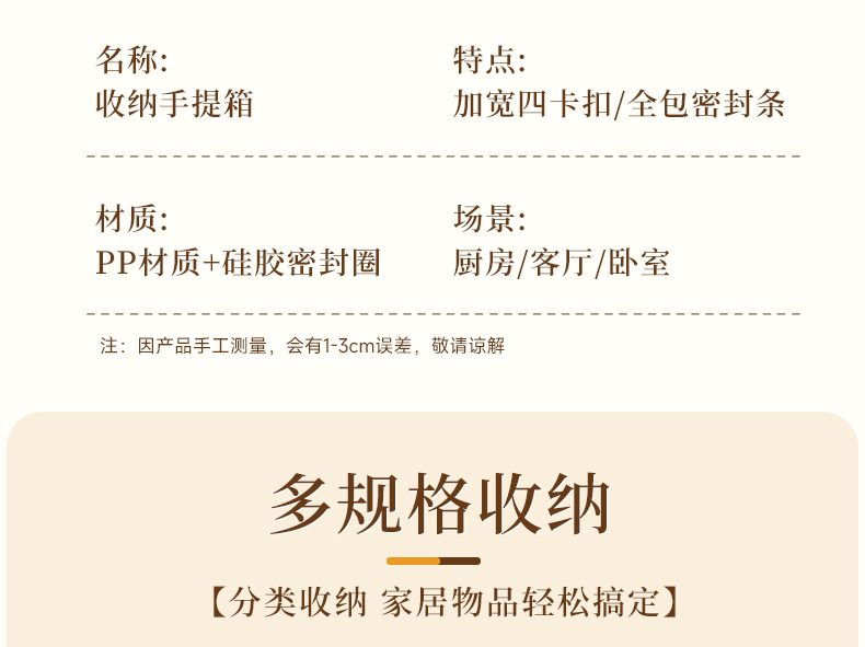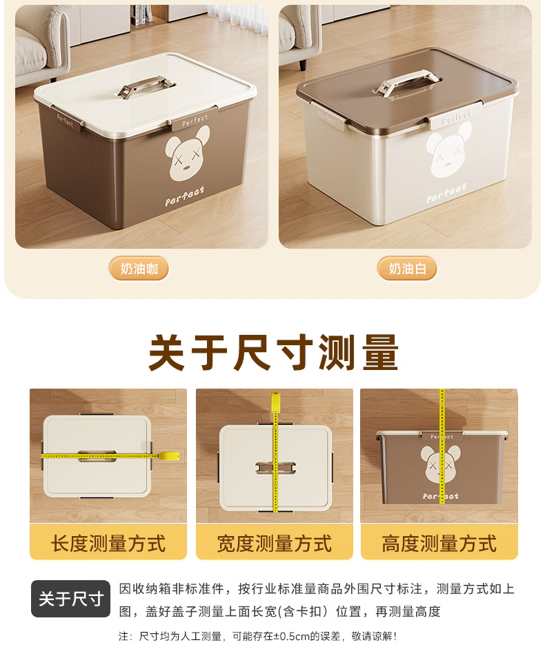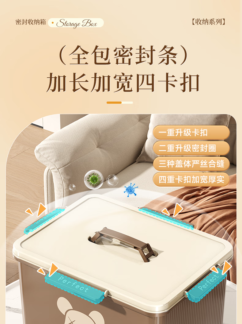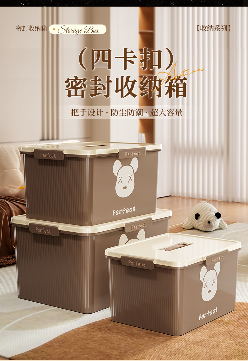 适聆四卡扣密封收纳箱手提家用防潮整理玩具零食收纳盒大容量储物箱子 大号【奶油白】长36宽27高20