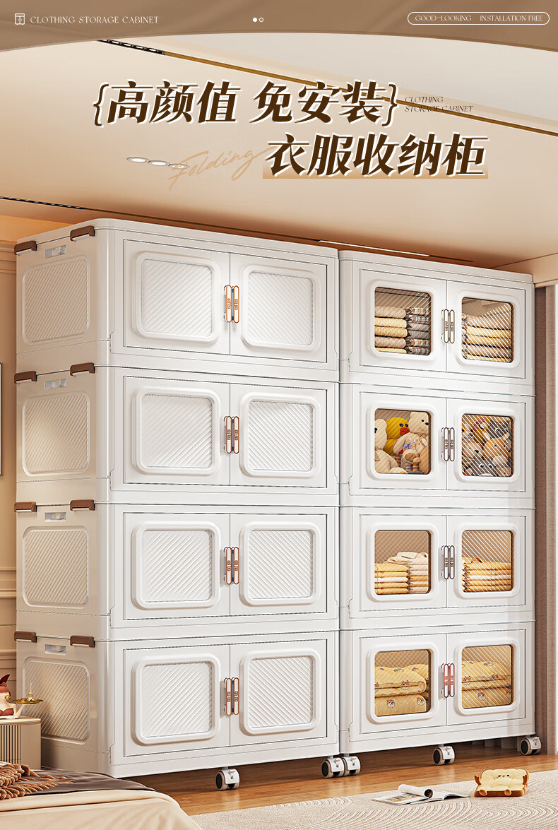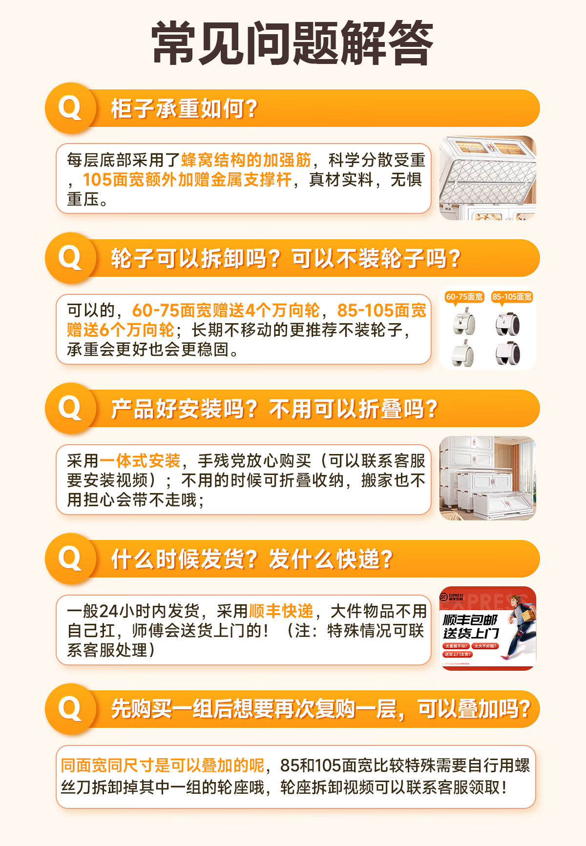 懒人空间【顺丰】家用收纳柜105CM巨无霸柜子储物柜高品质加厚衣物收纳箱 75CM【出口品质】加厚用料 5层【顺丰到家】