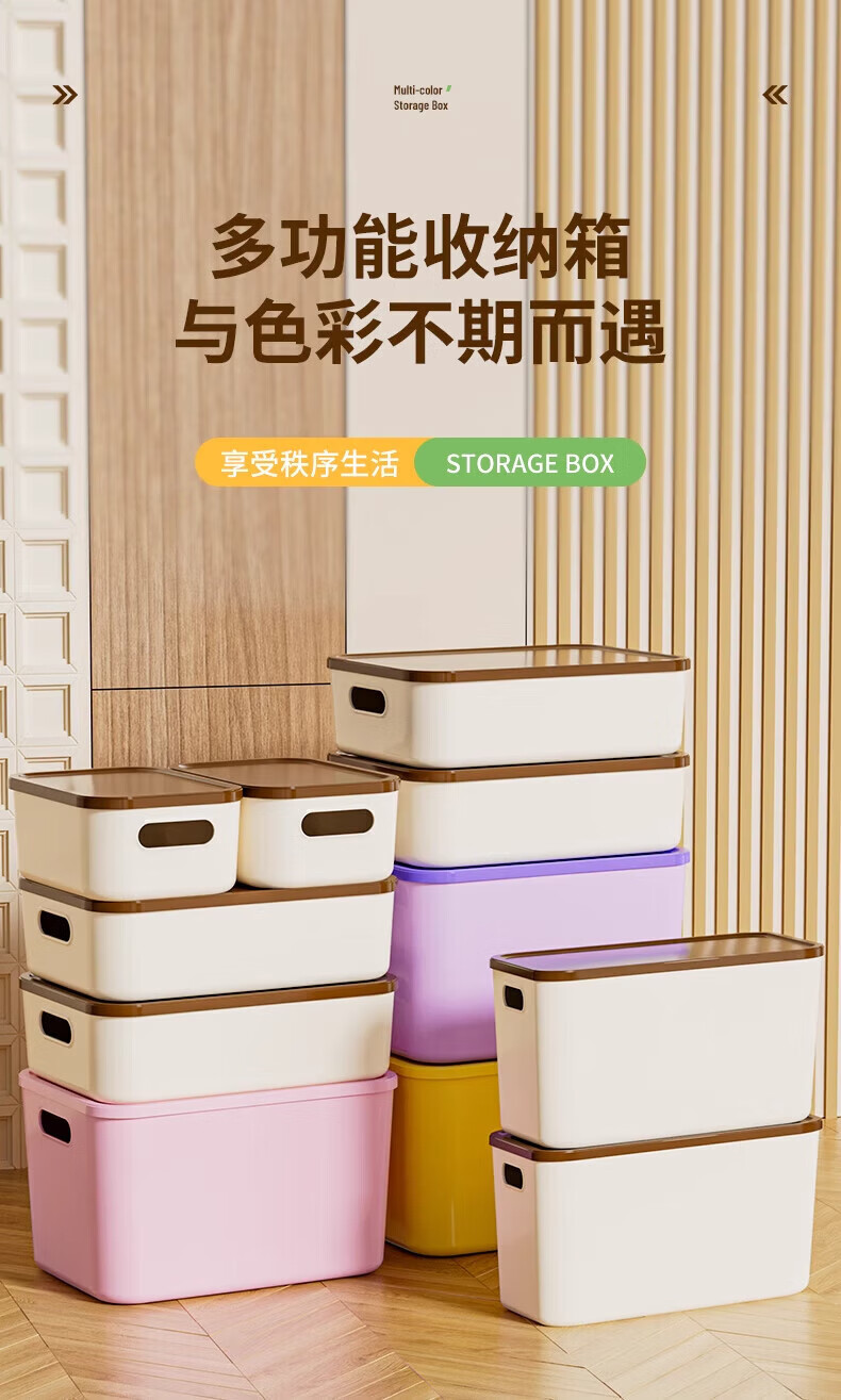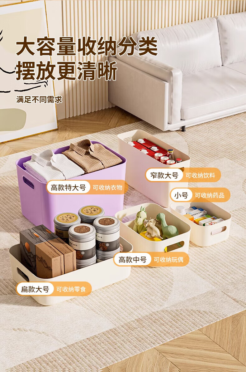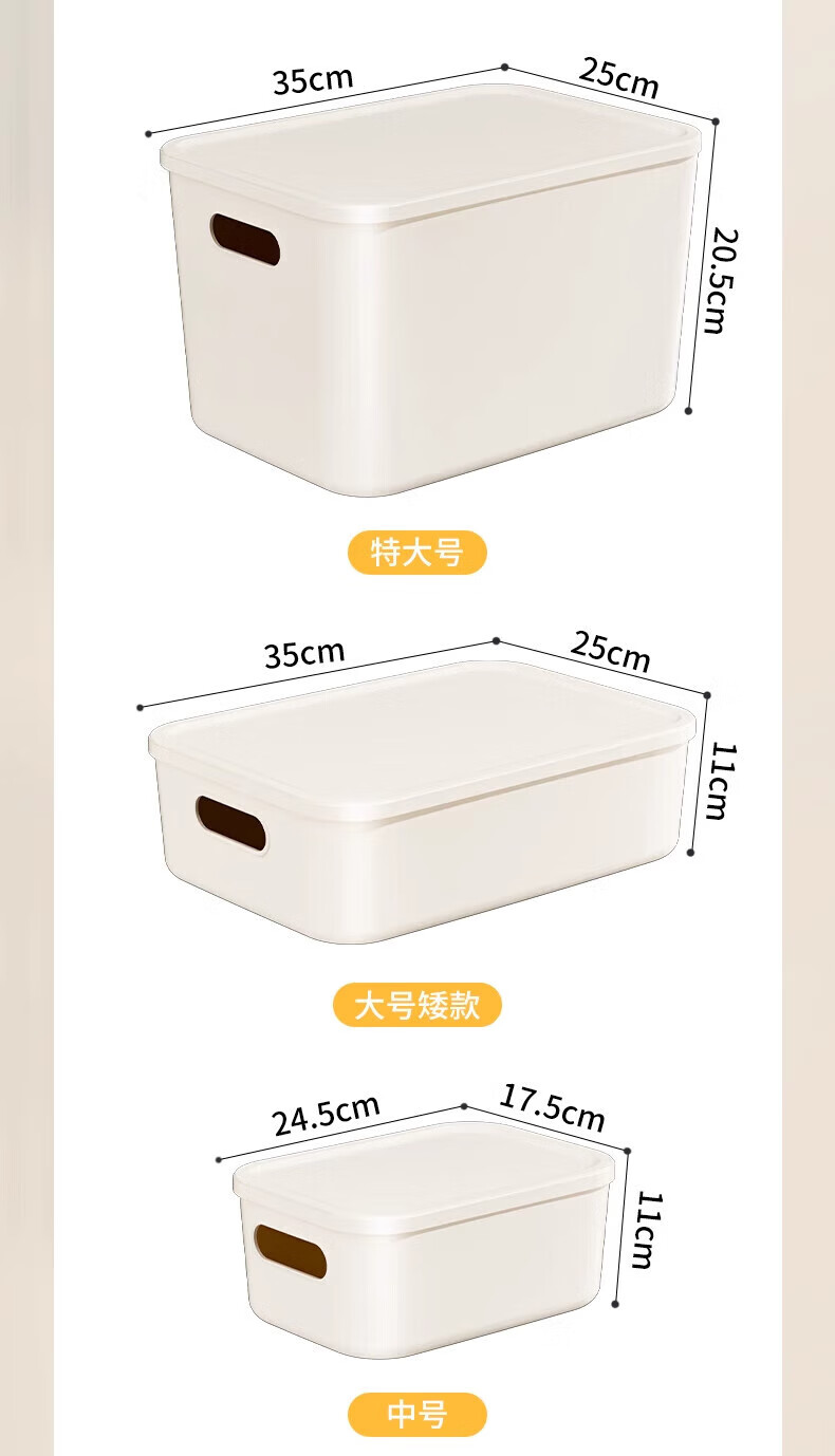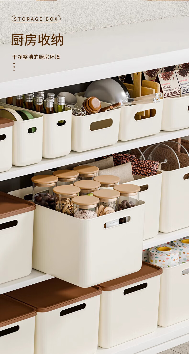 稻草熊(DOCOXO)大号塑料收纳箱加厚家用杂物容器客厅整理桌面置物储物筐整理箱 奶咖大号三个【18L带盖加高款】
