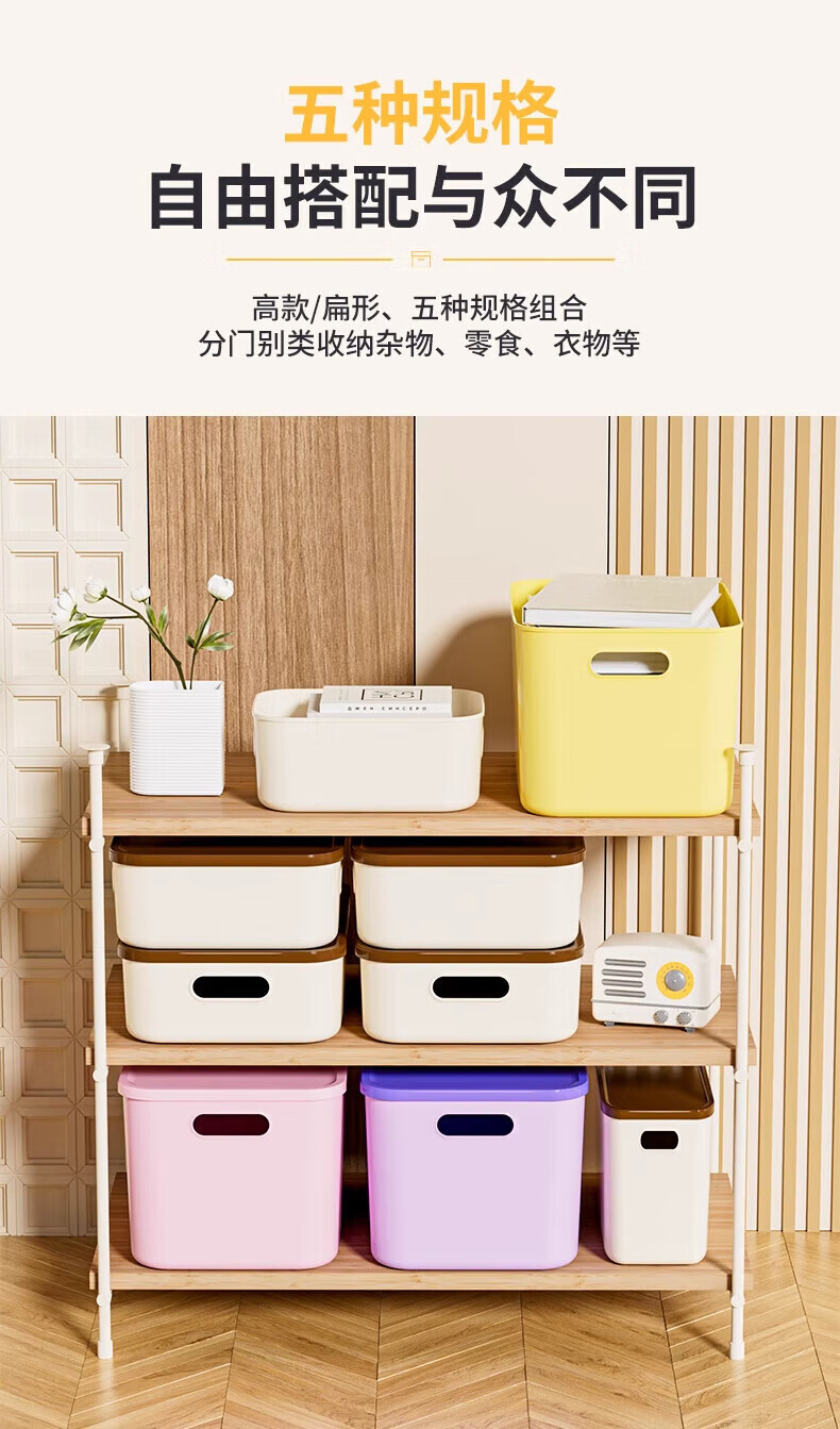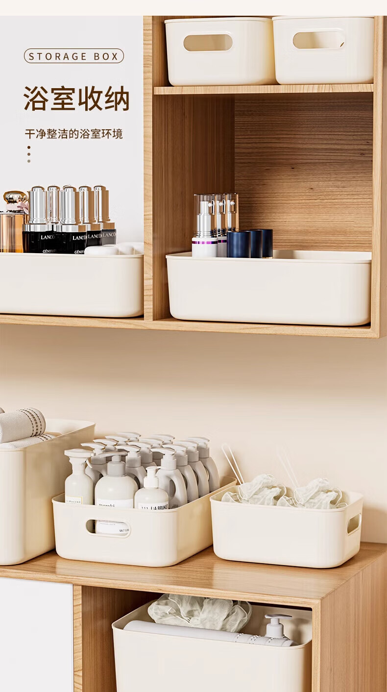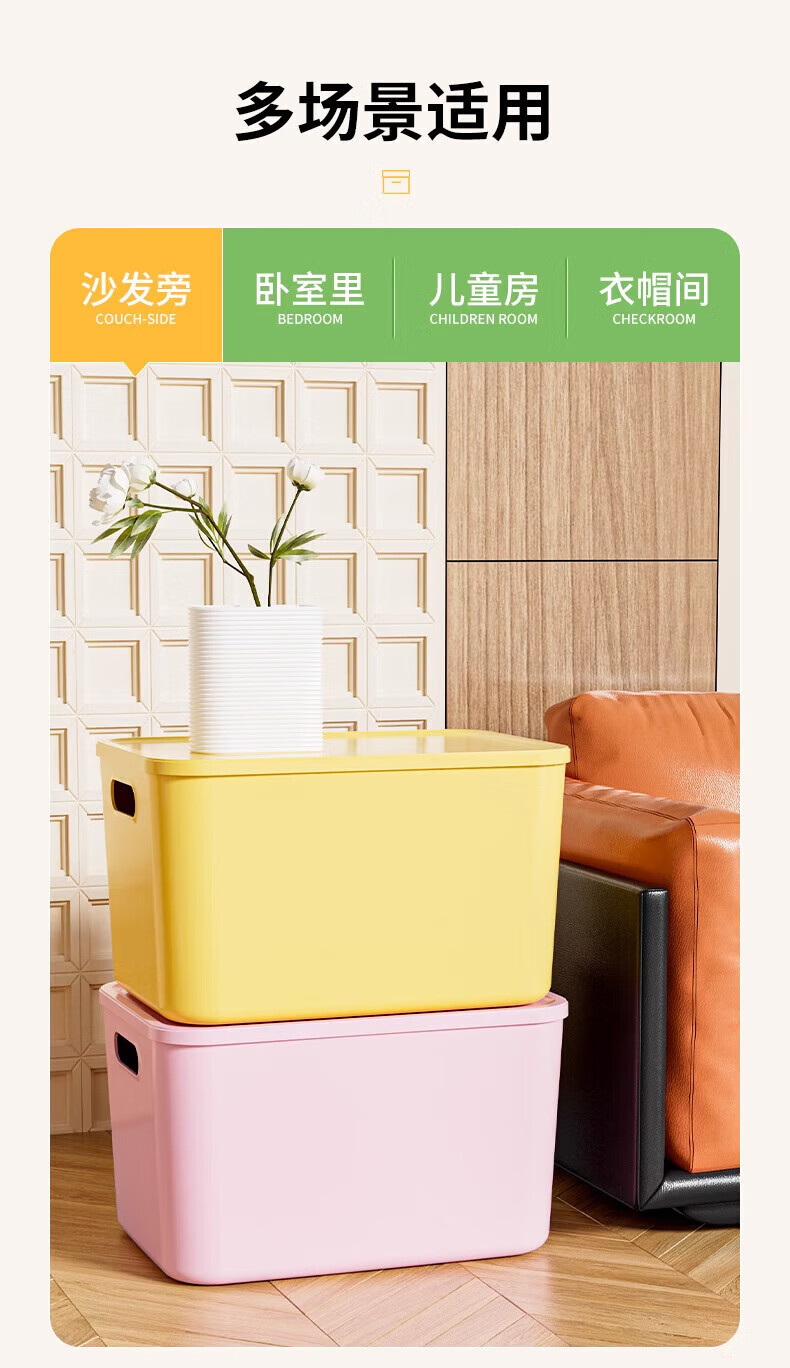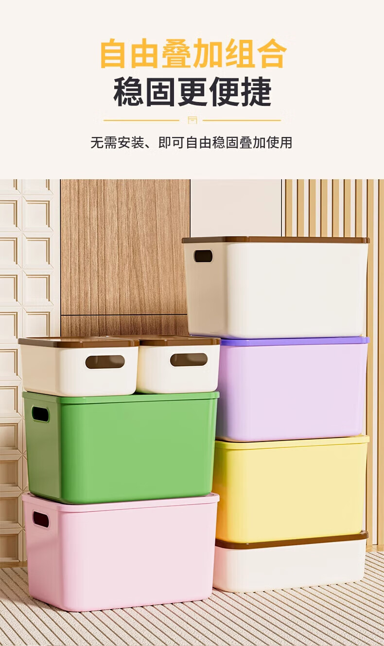 稻草熊(DOCOXO)大号塑料收纳箱加厚家用杂物容器客厅整理桌面置物储物筐整理箱 奶咖大号三个【18L带盖加高款】
