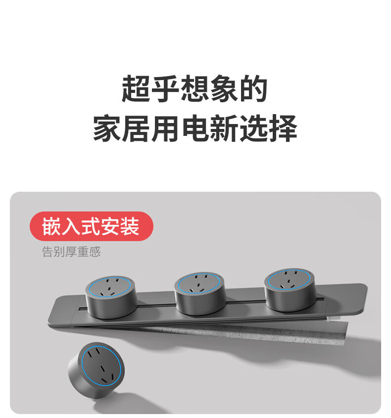 国际电工暗装轨道插座可移动厨房餐边柜电源带USB/Type-C插孔滑轨扩展器 灰色【暗装】30cm+2个大五孔