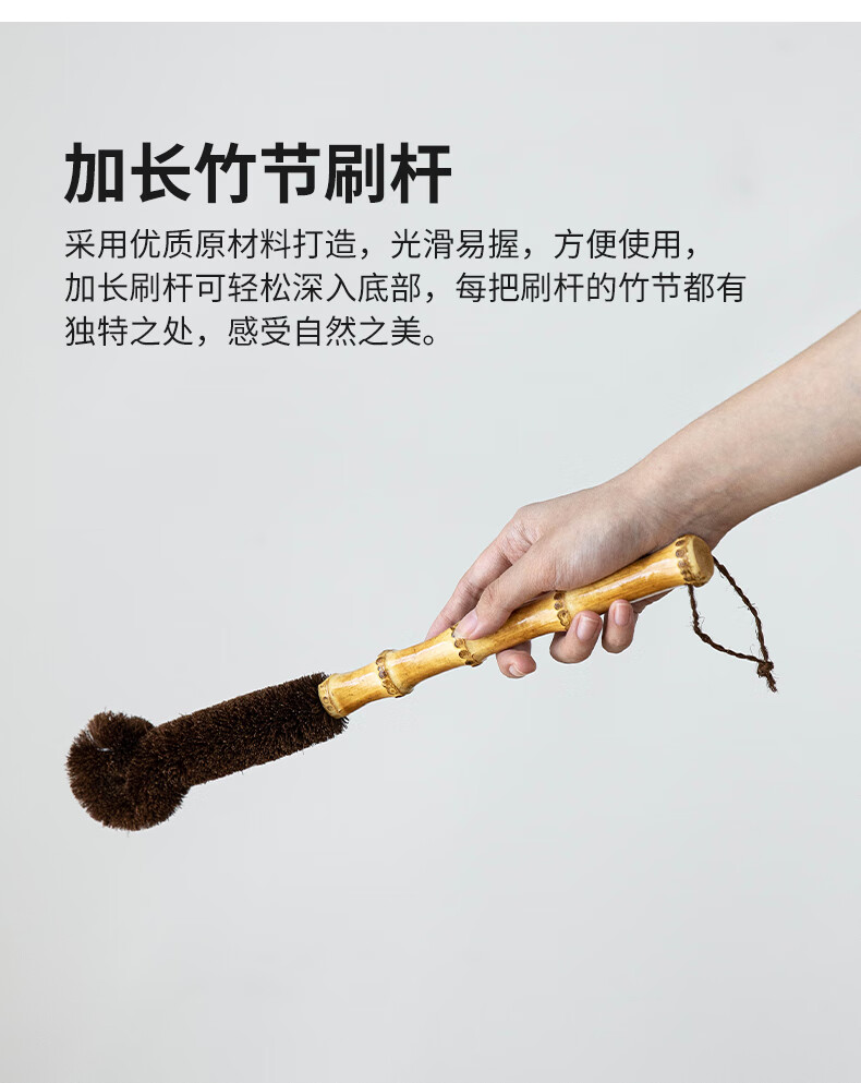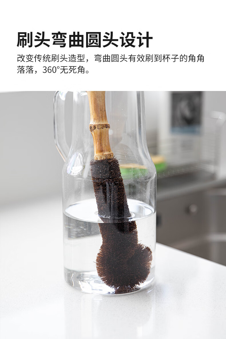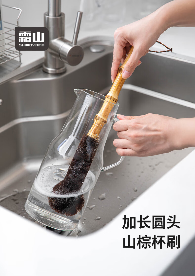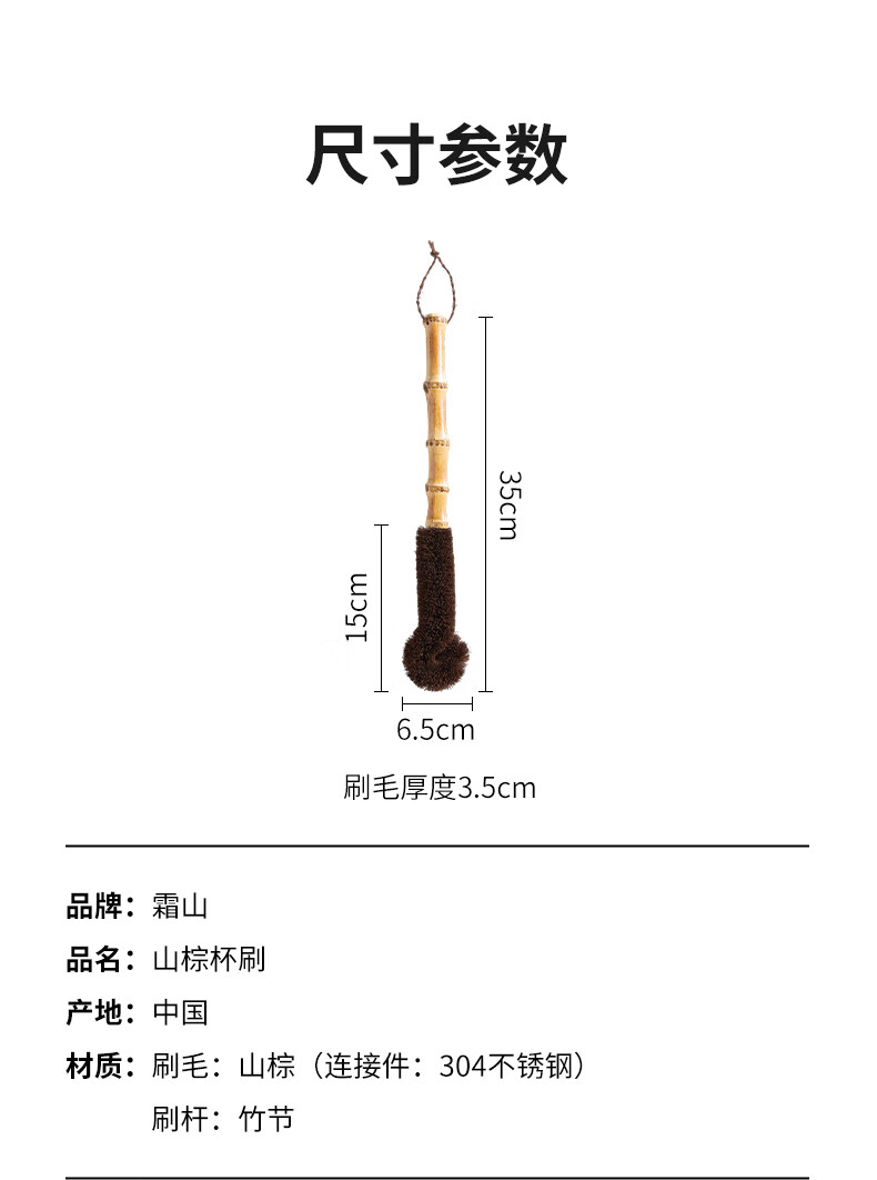 霜山长柄杯刷竹柄山棕毛水杯水壶清洁刷弯曲刷头洗杯子破壁机工具 【口径5cm以上适用】长35cm