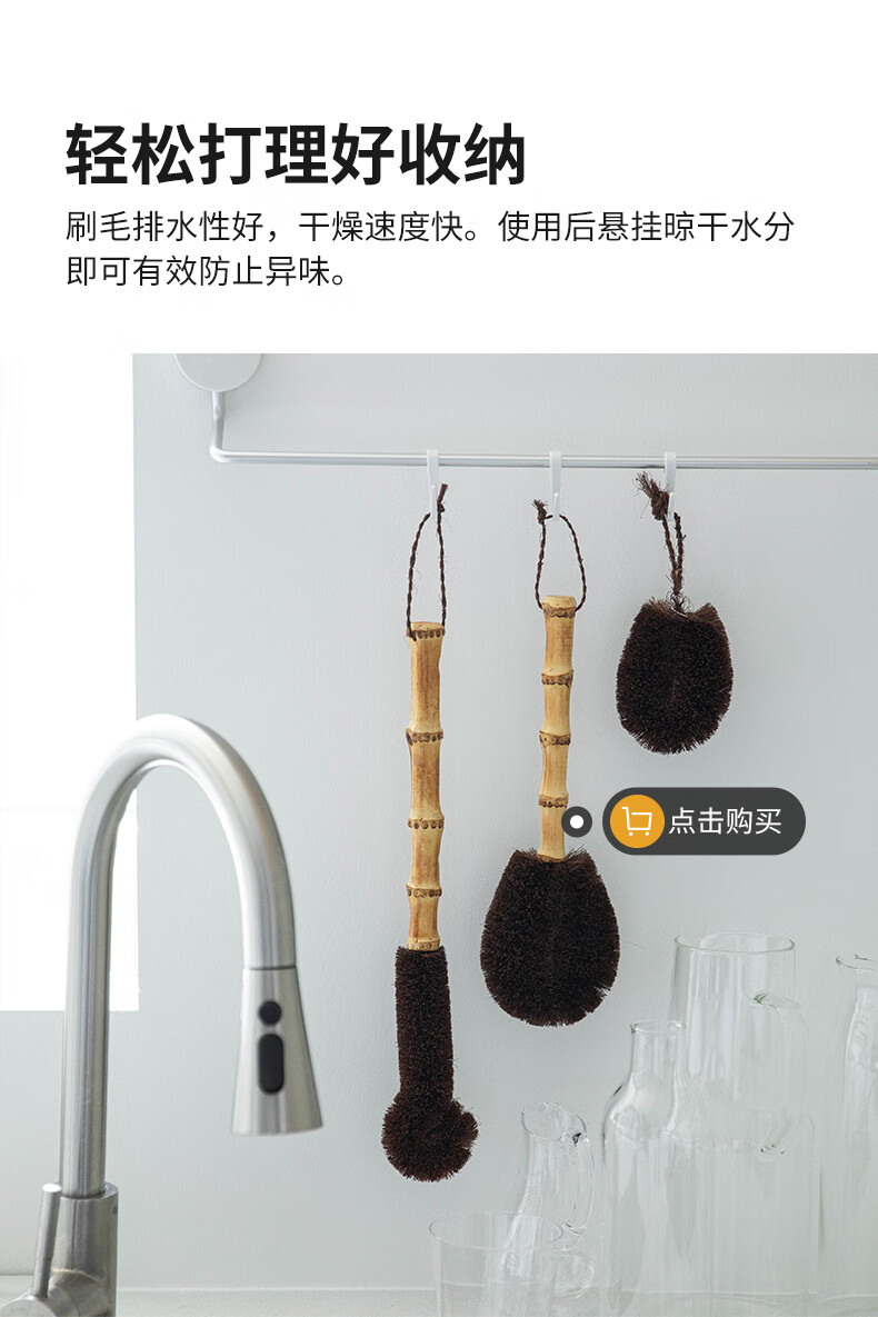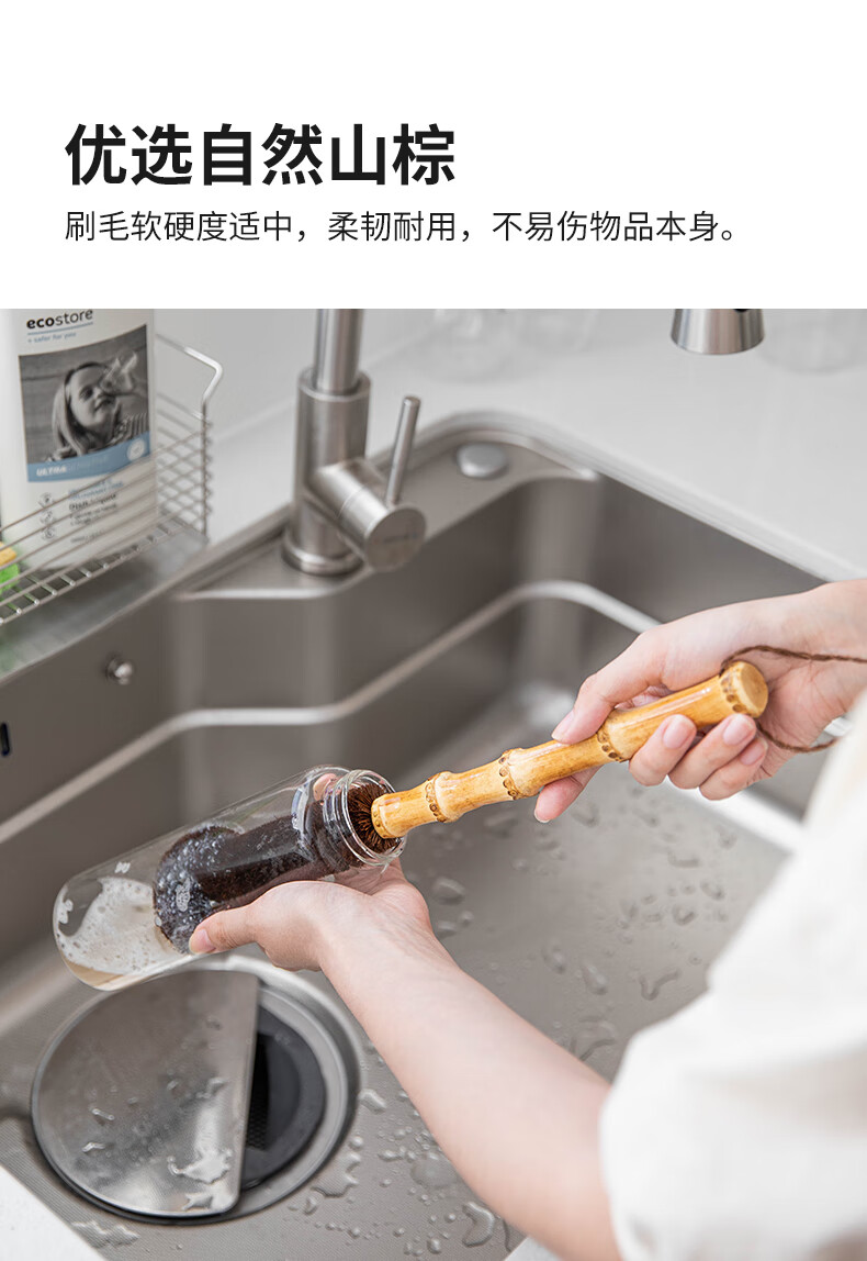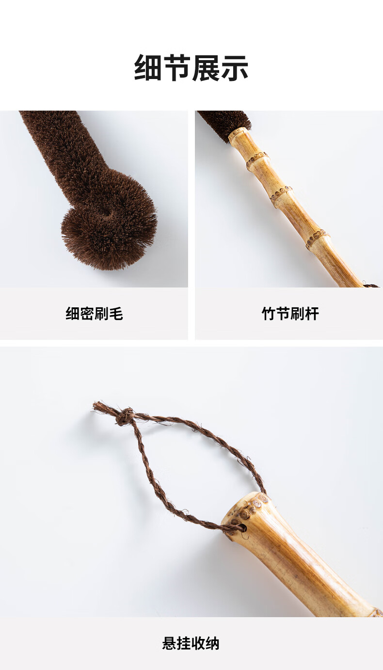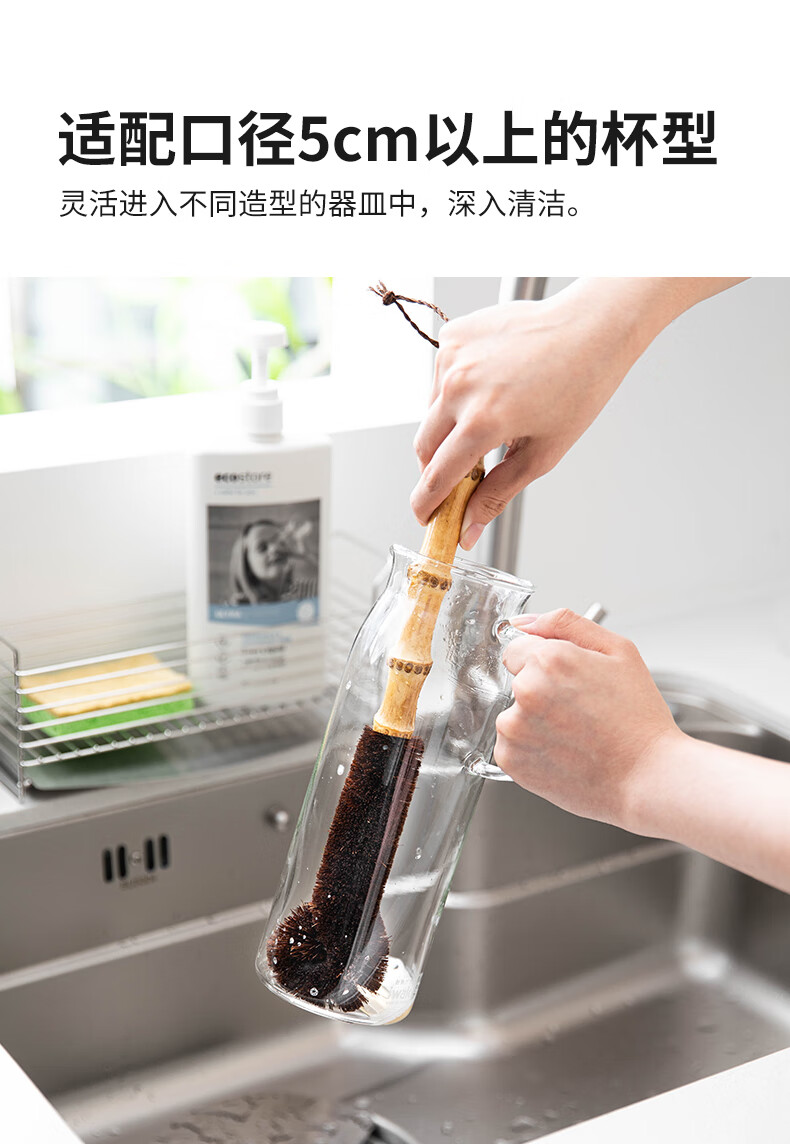 霜山长柄杯刷竹柄山棕毛水杯水壶清洁刷弯曲刷头洗杯子破壁机工具 【口径5cm以上适用】长35cm