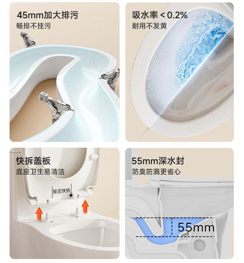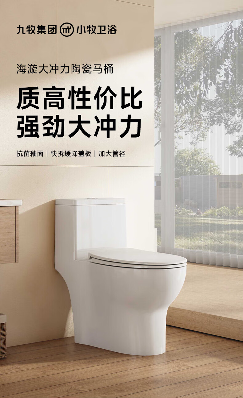 小牧卫浴马桶 虹吸式坐便器 抗菌釉面 【5台装】抗菌易洁+快拆盖板+海旋冲力 400mm 【390mm以上选择】