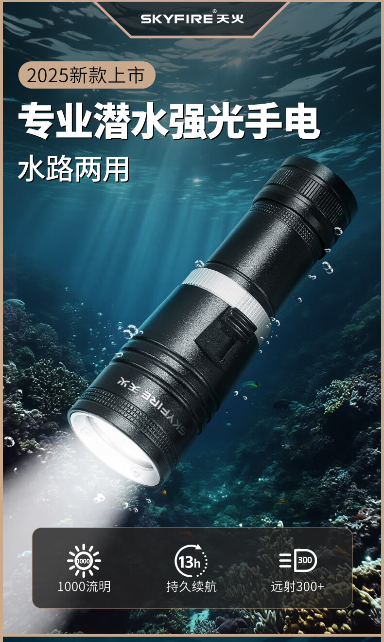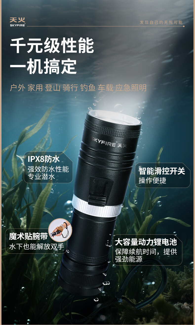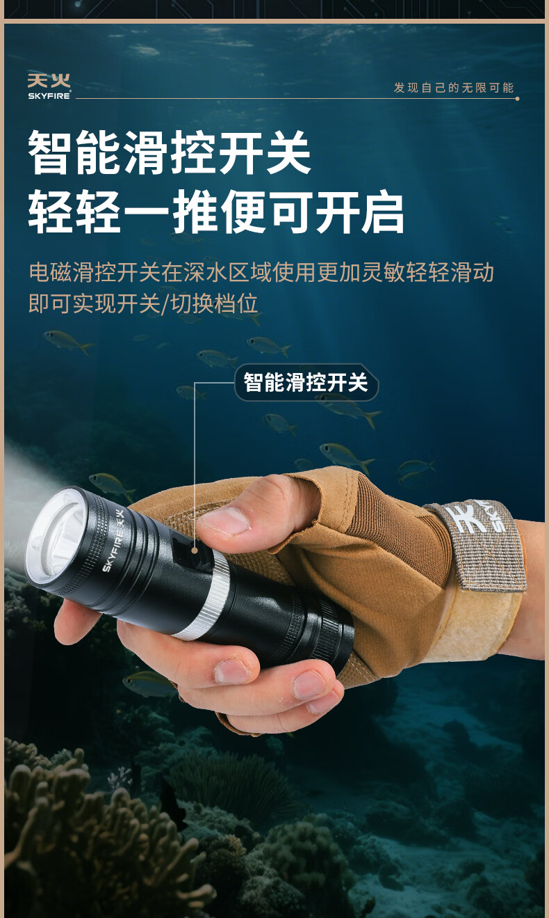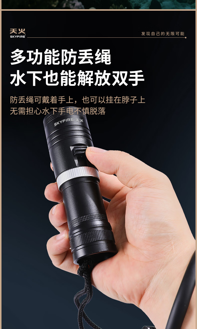 天火潜水手电筒强光充电超亮防水专业深潜夜潜水下专用照明灯赶海 10000毫安丨带座充-深度潜水1000流明