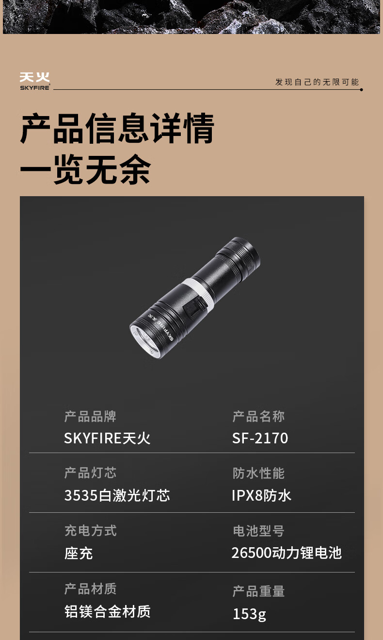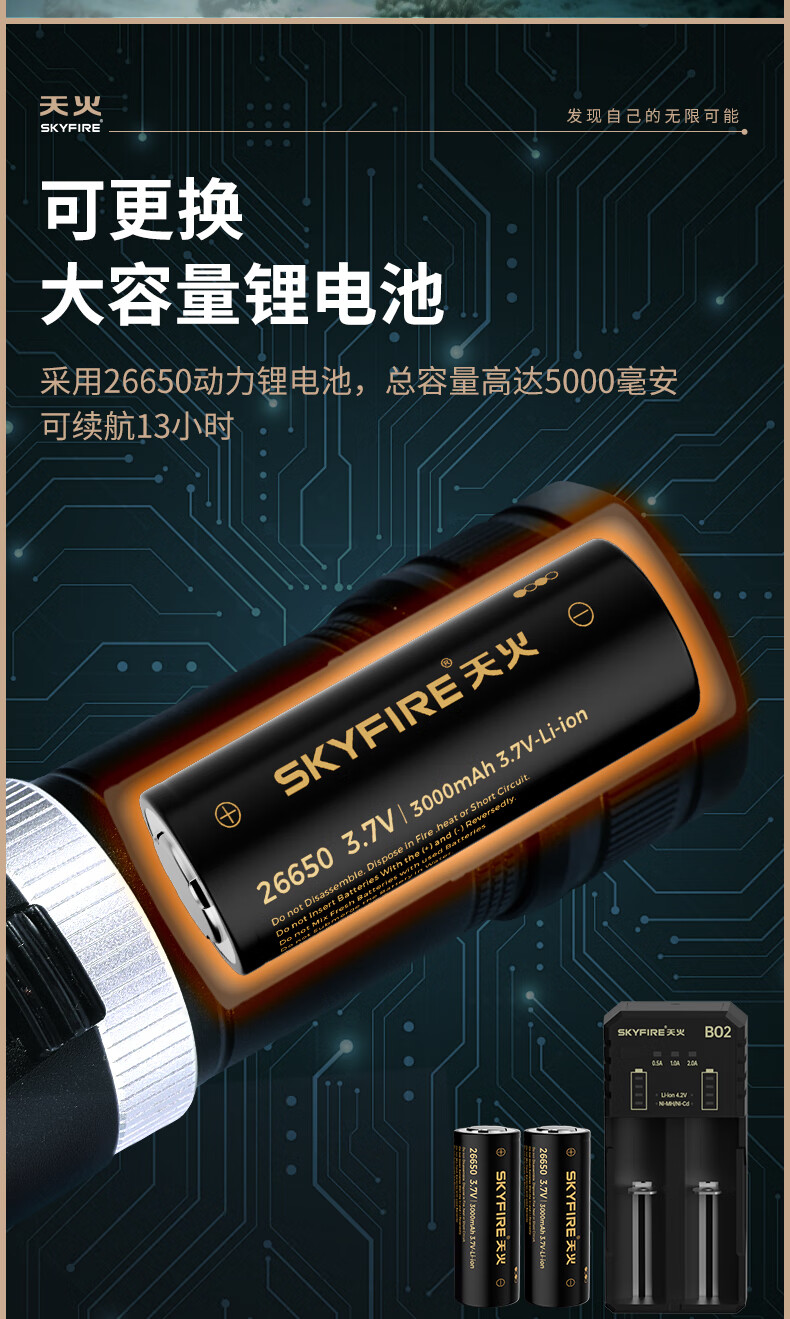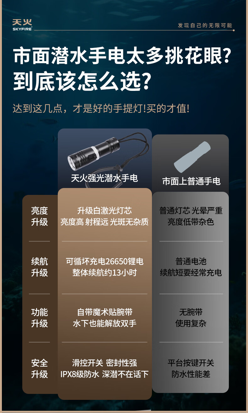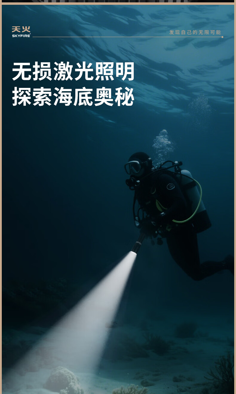 天火潜水手电筒强光充电超亮防水专业深潜夜潜水下专用照明灯赶海 10000毫安丨带座充-深度潜水1000流明
