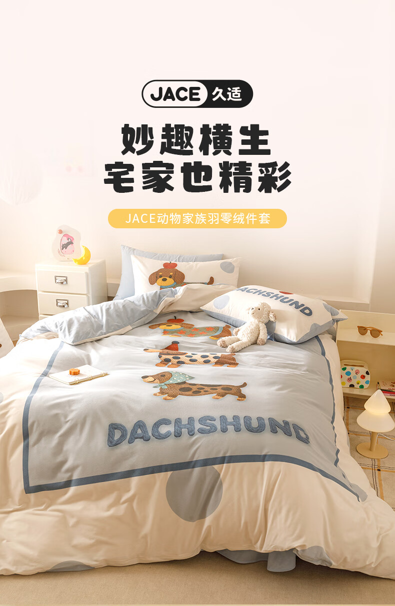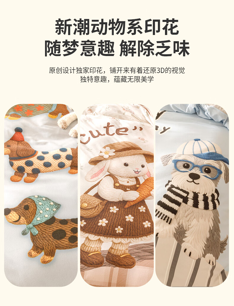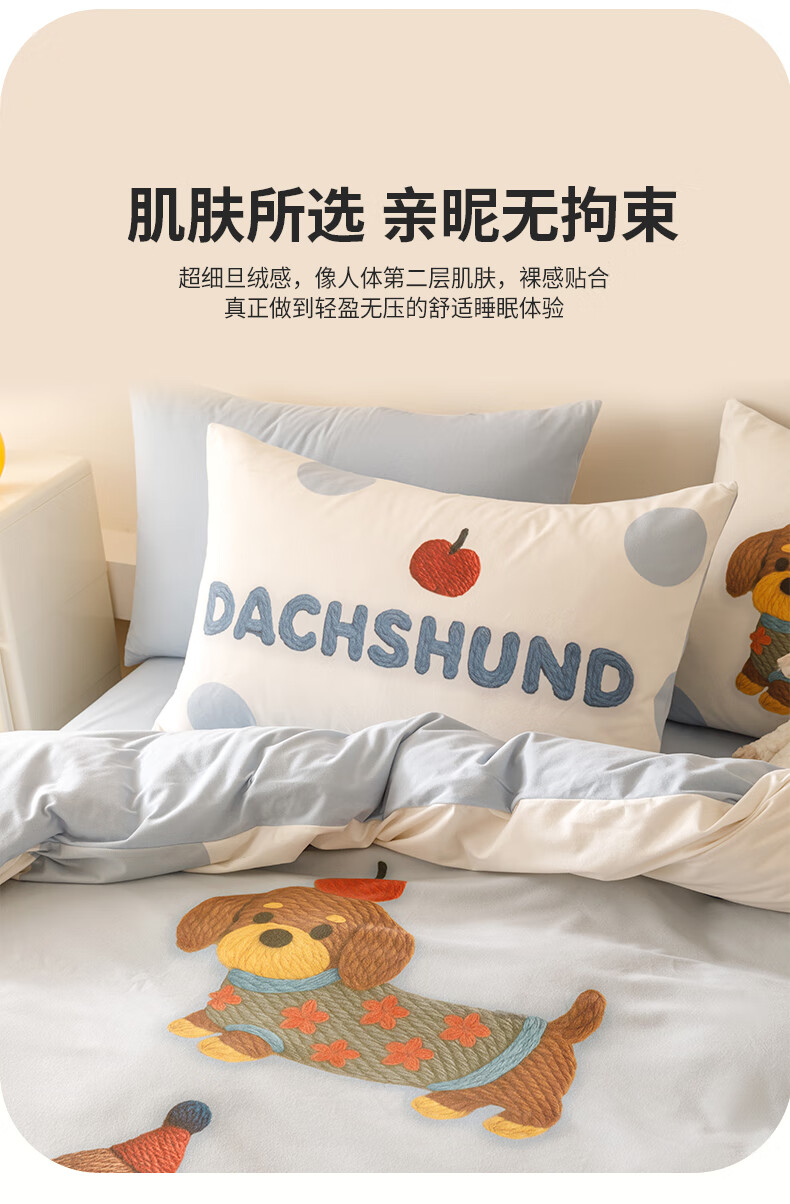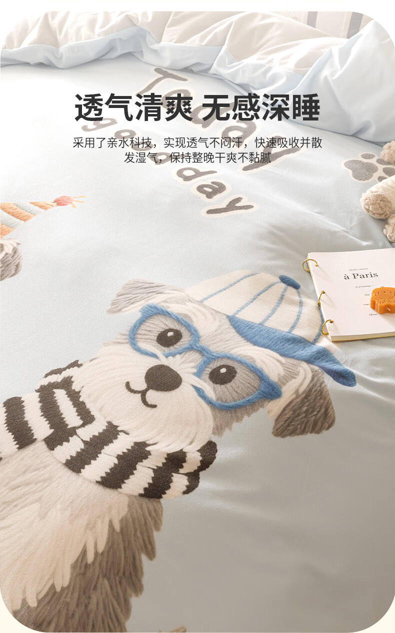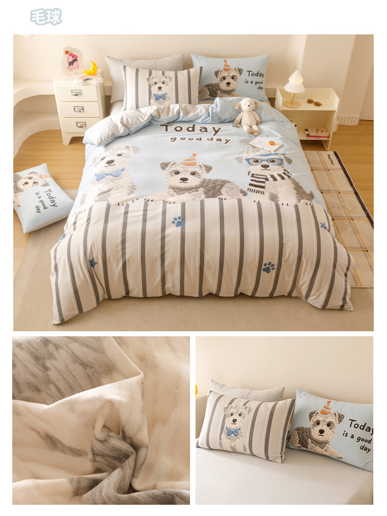 JaCe羽零绒床上四件套秋冬季亲肤卡通床单被套加厚透气床上用品 蓬松毛球狗 100支 A类 1.5-1.8m 床单款 (被套200*230cm)