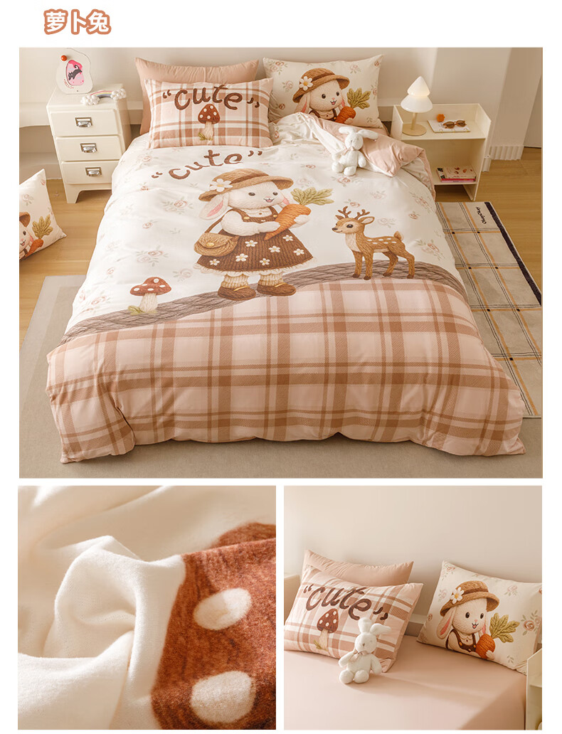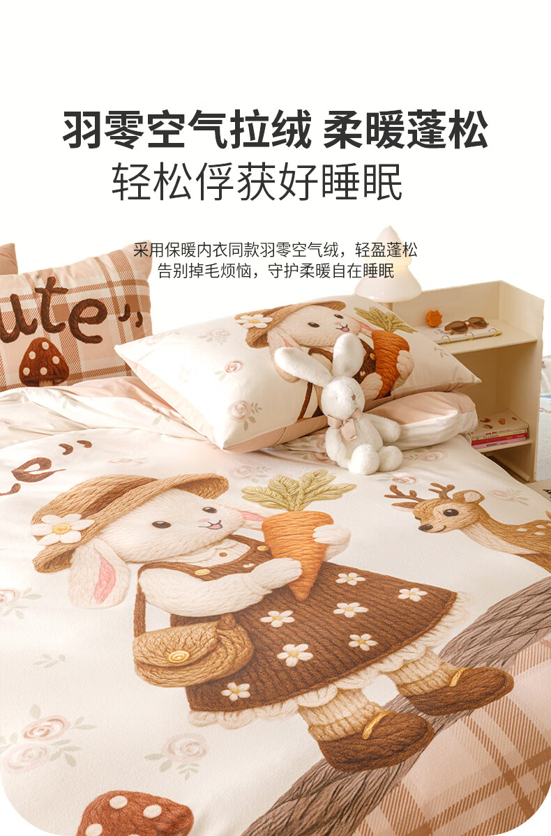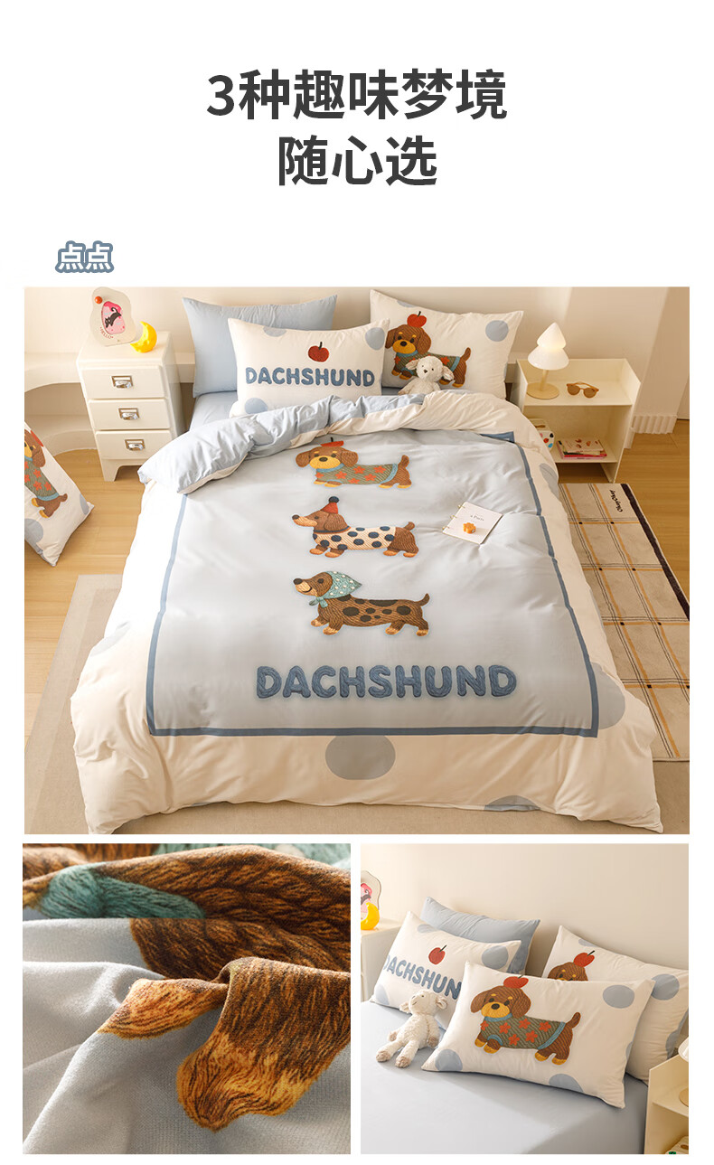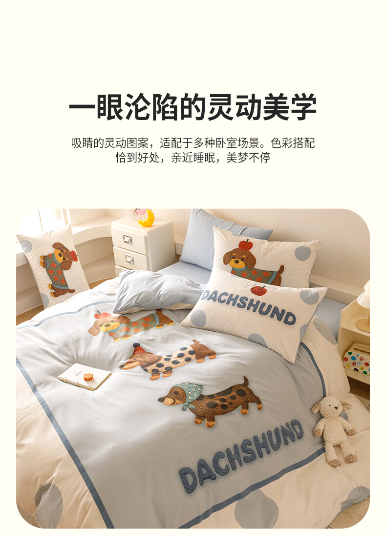 JaCe羽零绒床上四件套秋冬季亲肤卡通床单被套加厚透气床上用品 蓬松毛球狗 100支 A类 1.5-1.8m 床单款 (被套200*230cm)