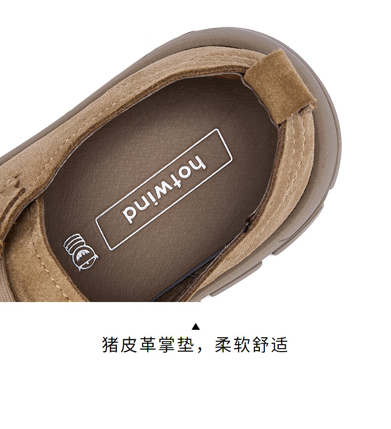 热风(Hotwind)男鞋2025年秋季新款男士时尚单鞋休闲皮鞋厚底日常户外鞋子 08杏色 40