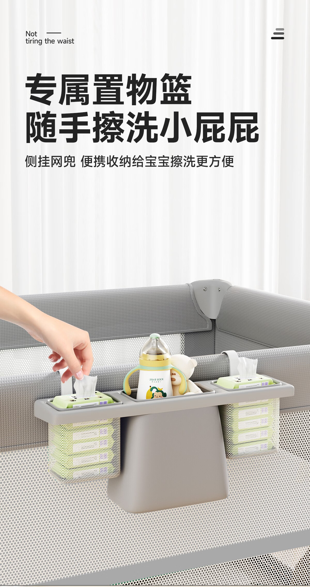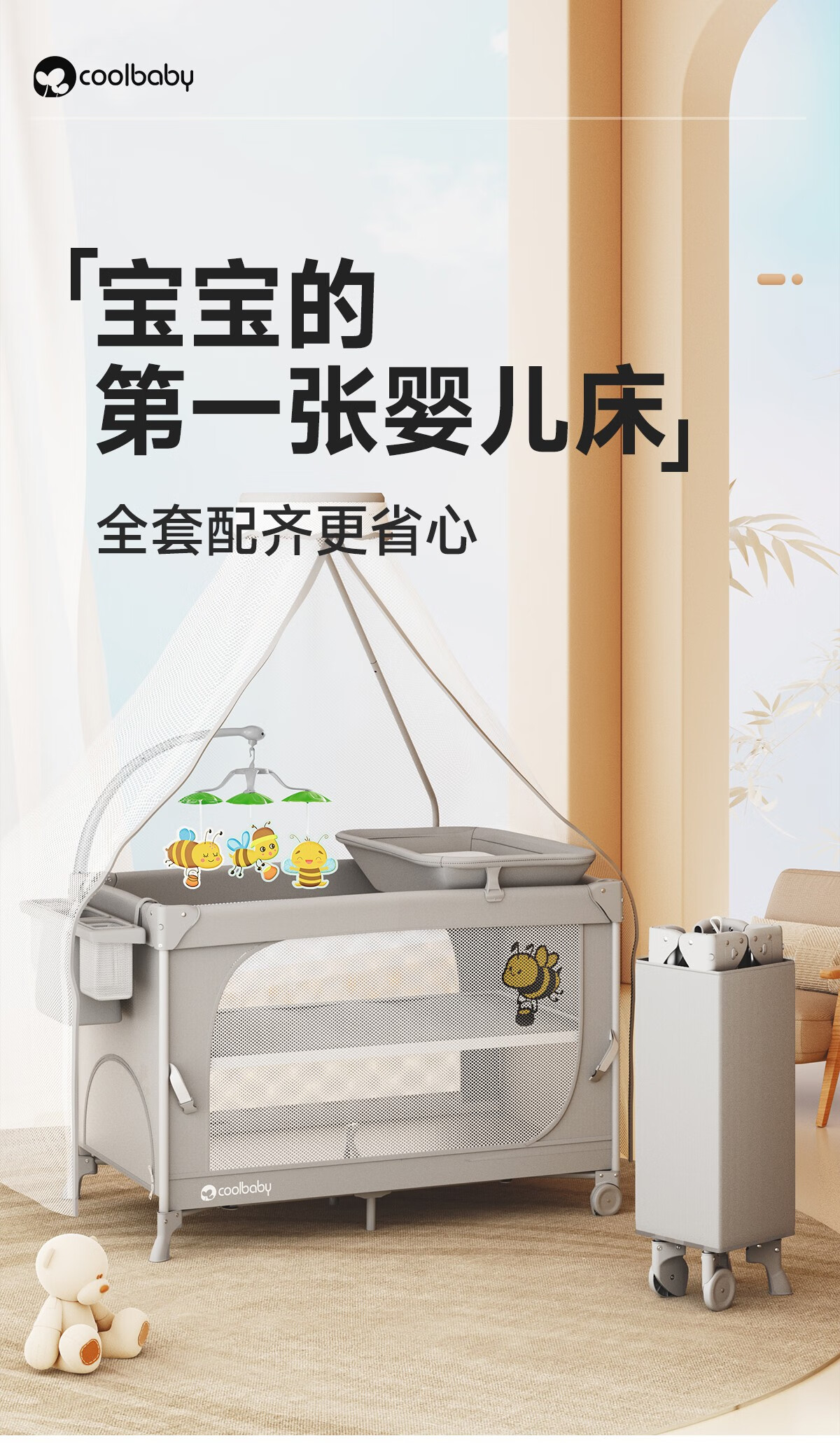 coolbaby婴儿床多功能可折叠可移动拼接床带尿布台蚊帐宝宝床 全家桶