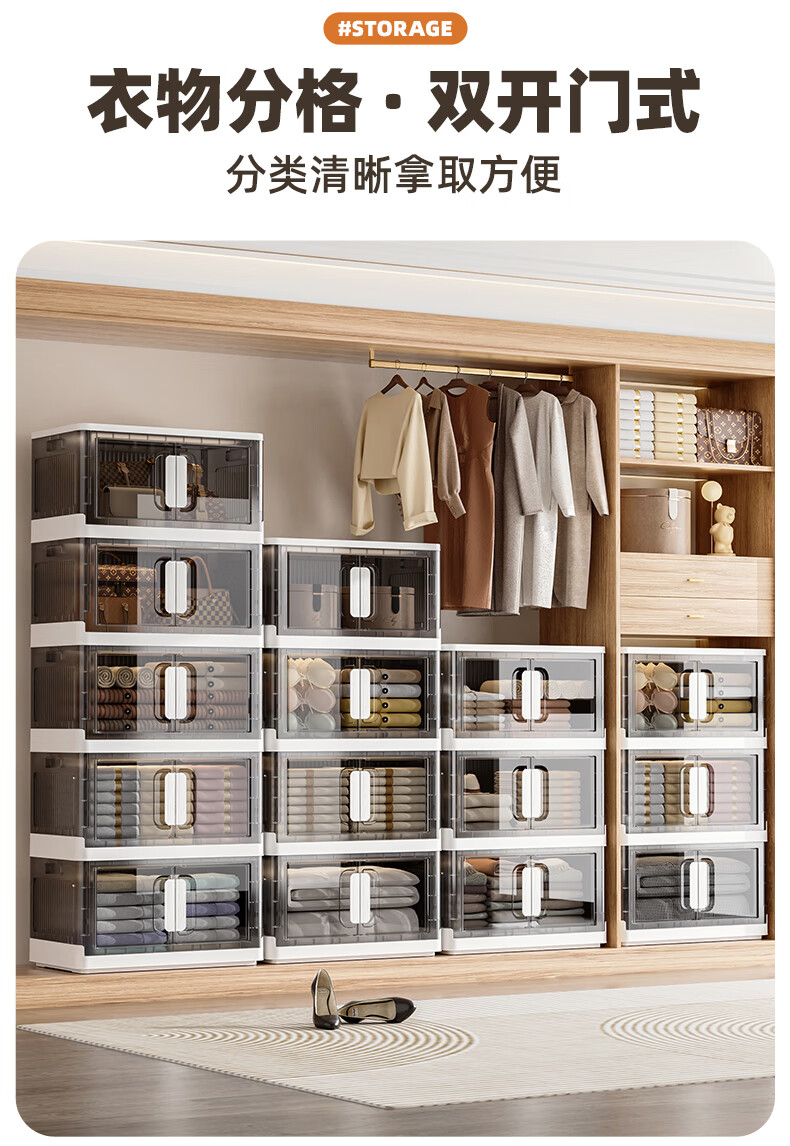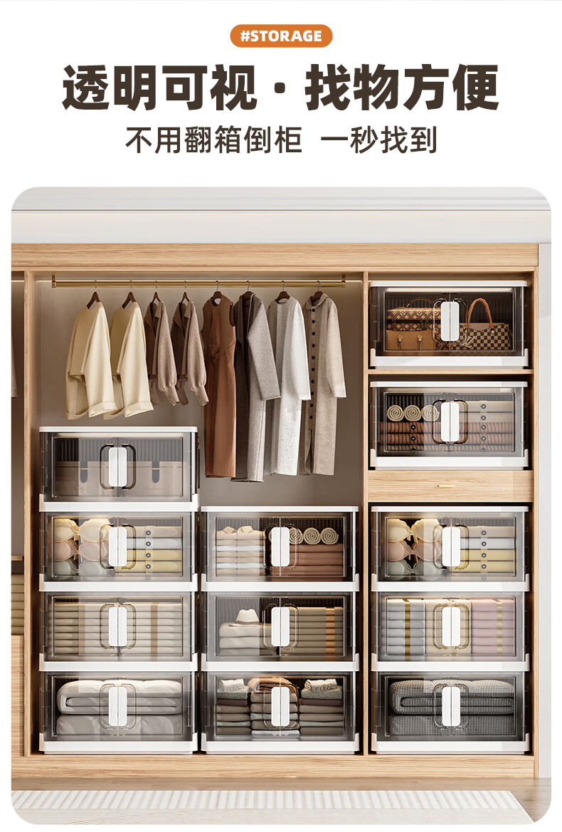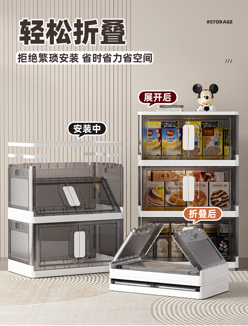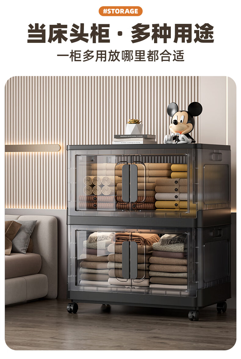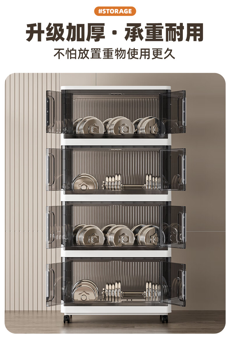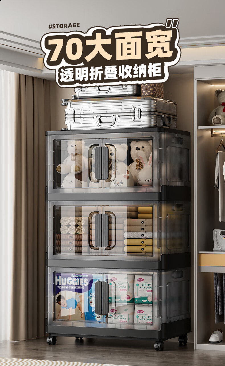 纳份爱【亚克力】家用可折叠收纳柜子储物柜衣服被子零食柜大容量整理箱 50面宽收纳柜四层丨透明黑 专业质检【折叠免安装】