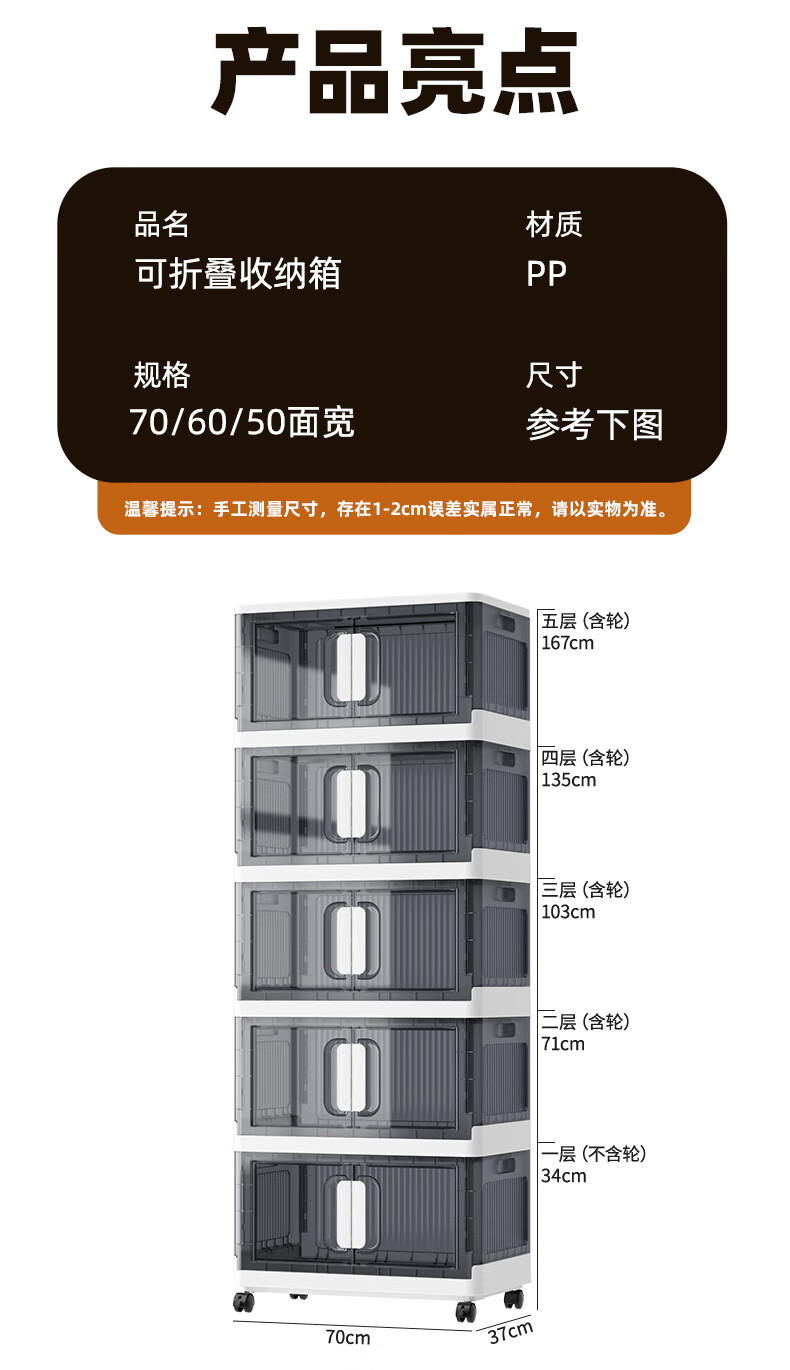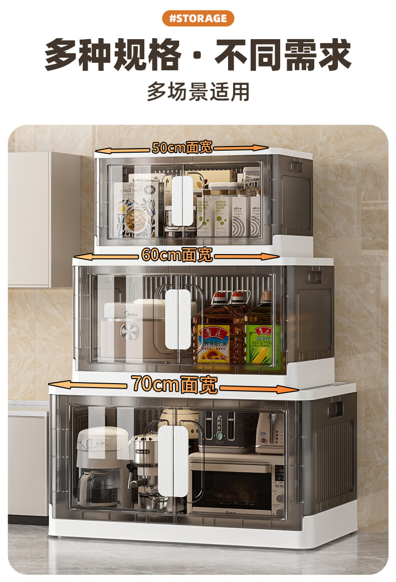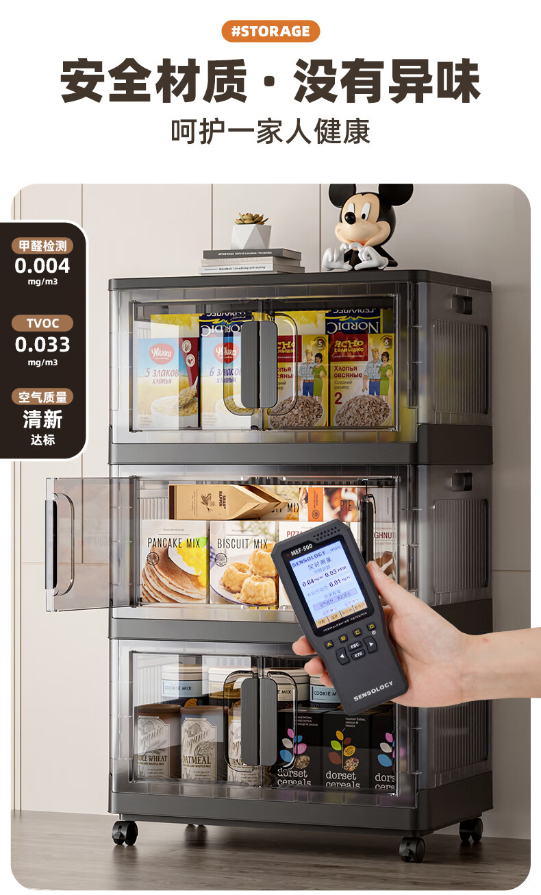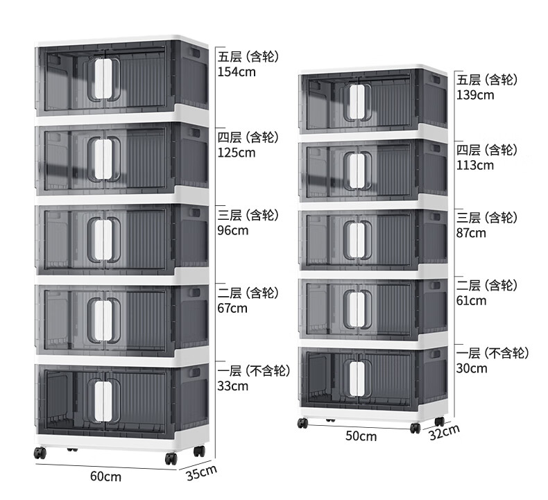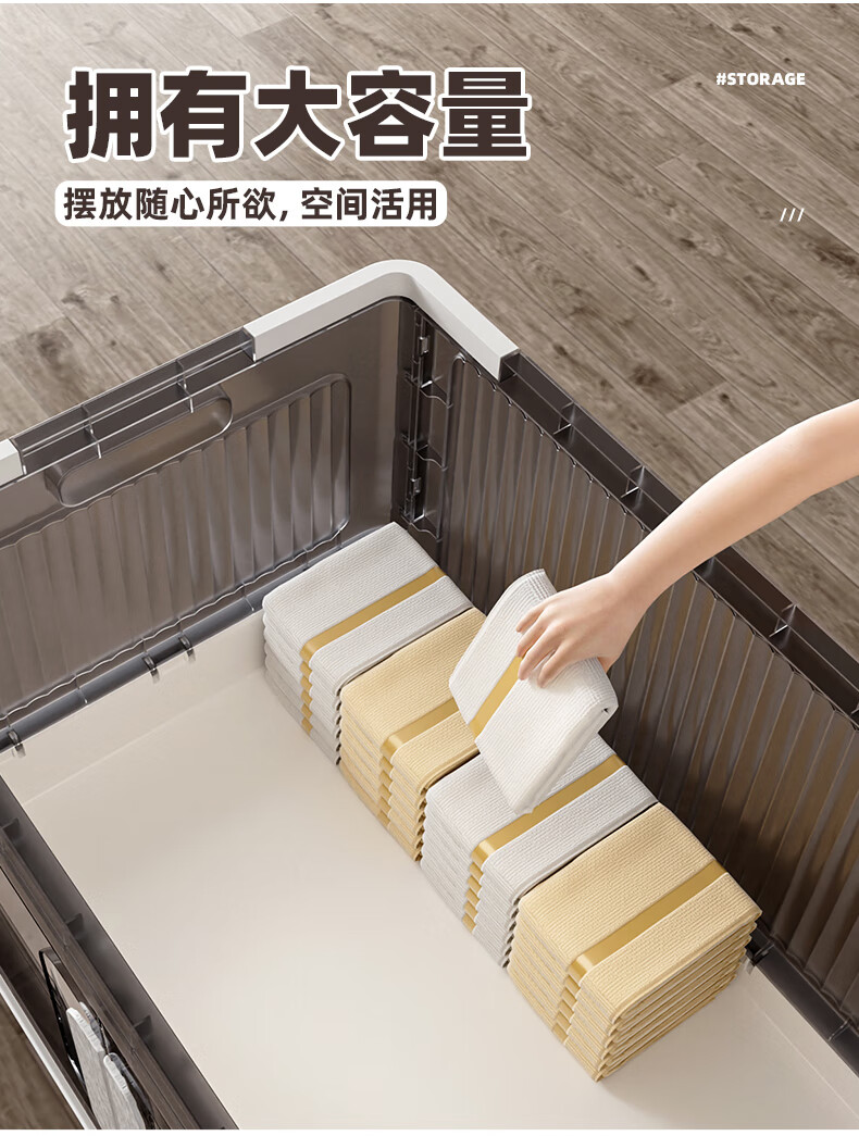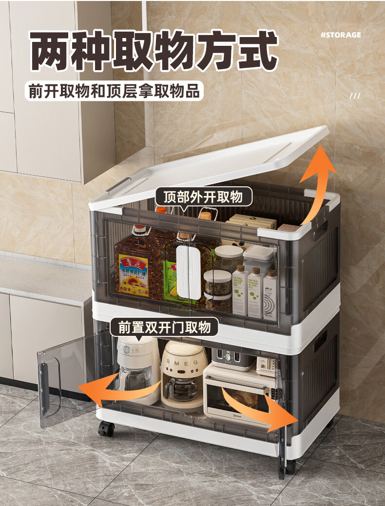 纳份爱【亚克力】家用可折叠收纳柜子储物柜衣服被子零食柜大容量整理箱 50面宽收纳柜四层丨透明黑 专业质检【折叠免安装】
