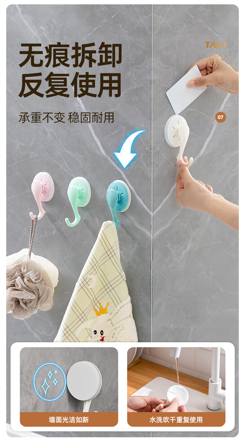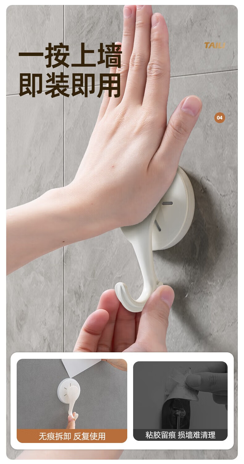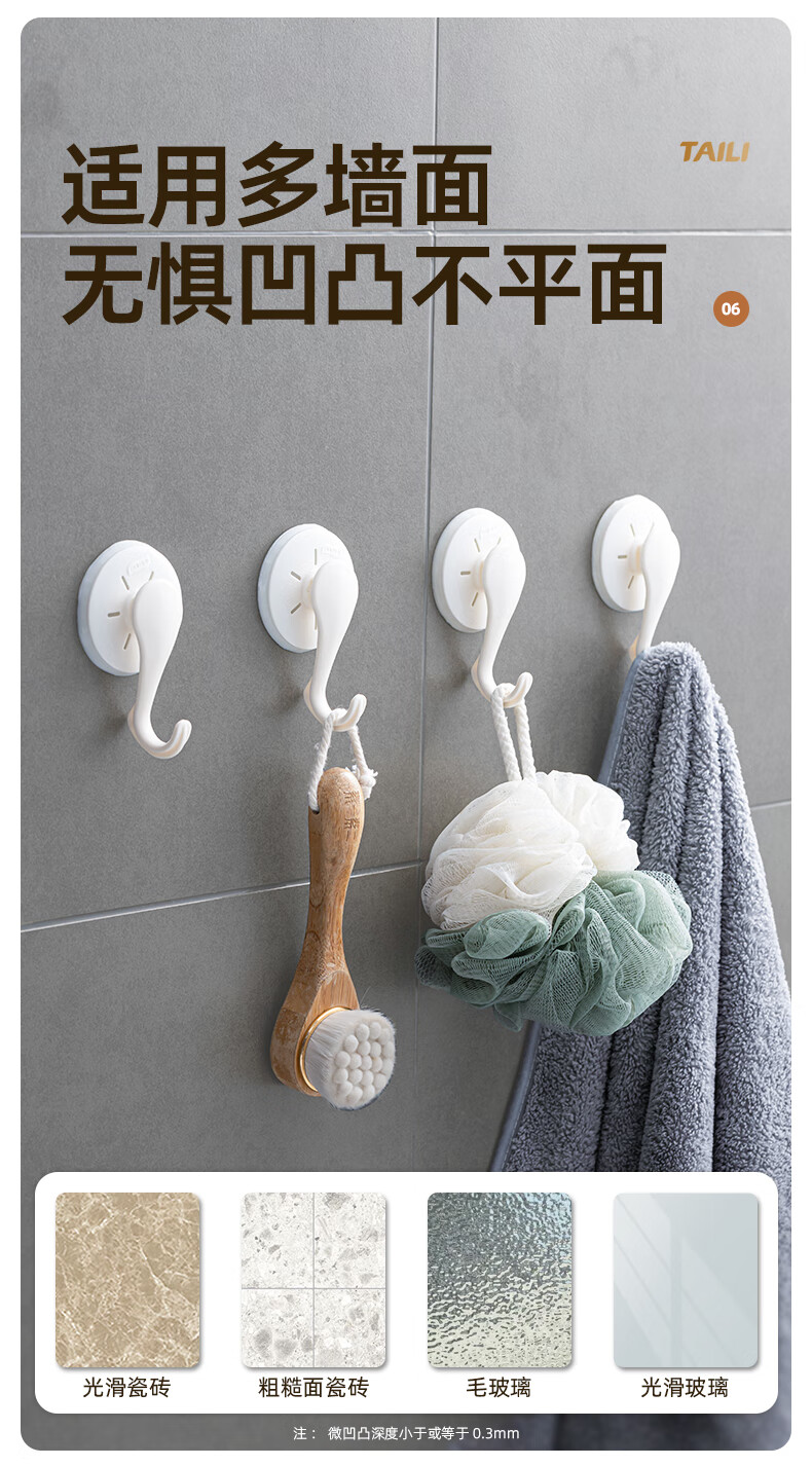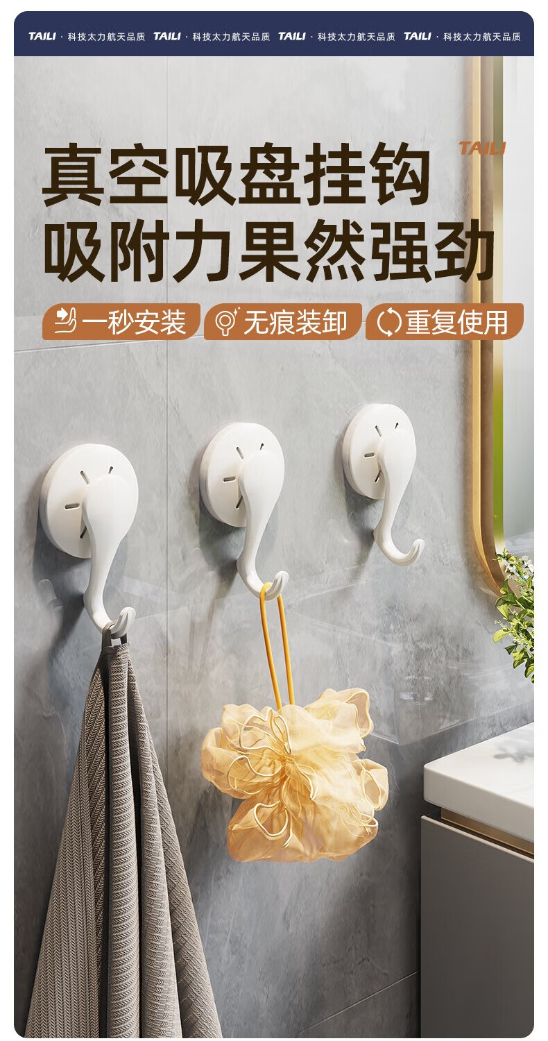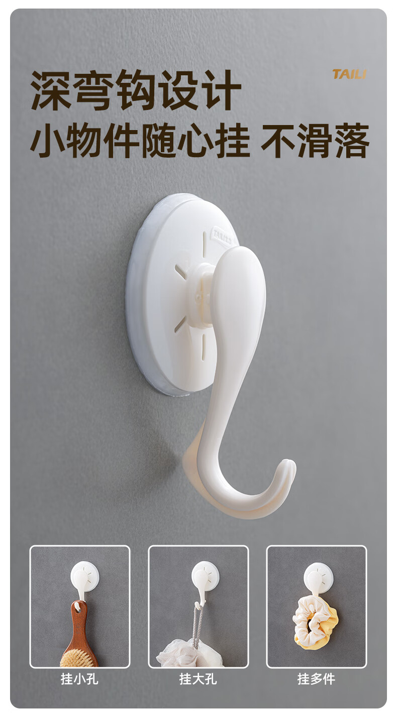 太力吸盘挂钩免打孔上墙粘钩强力挂钩浴室免钉无痕挂衣钩 白色6个 挂钩【吸盘壁挂】6个装