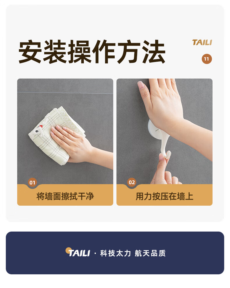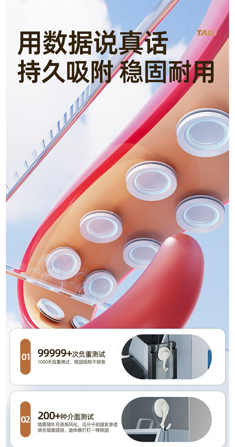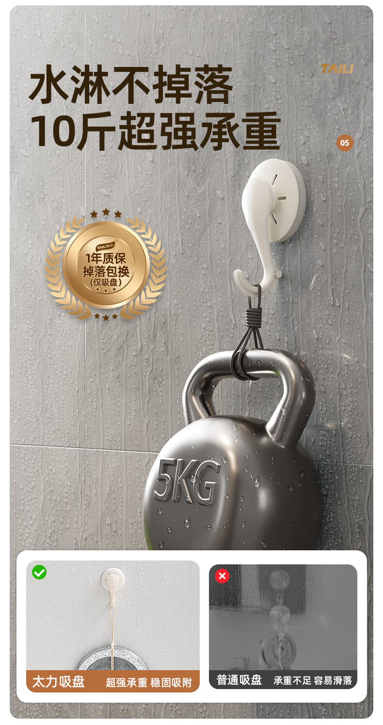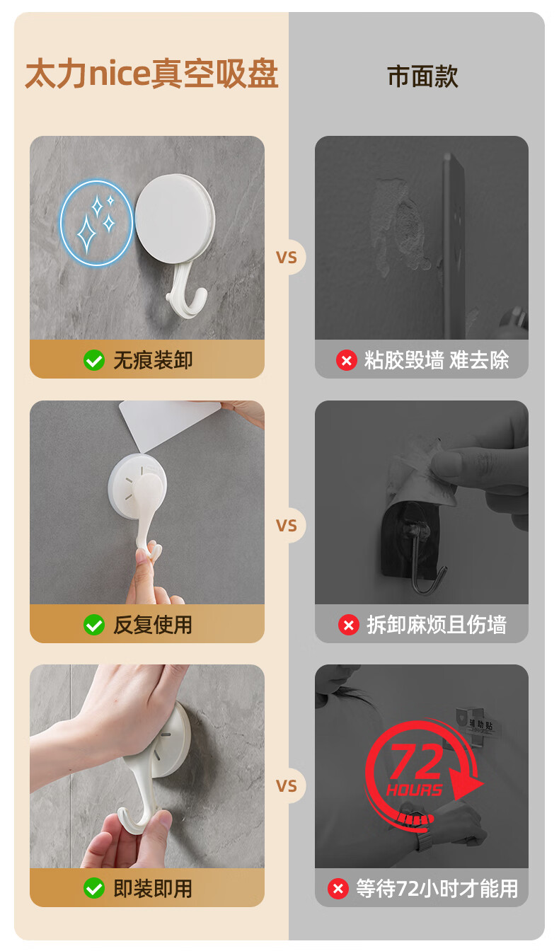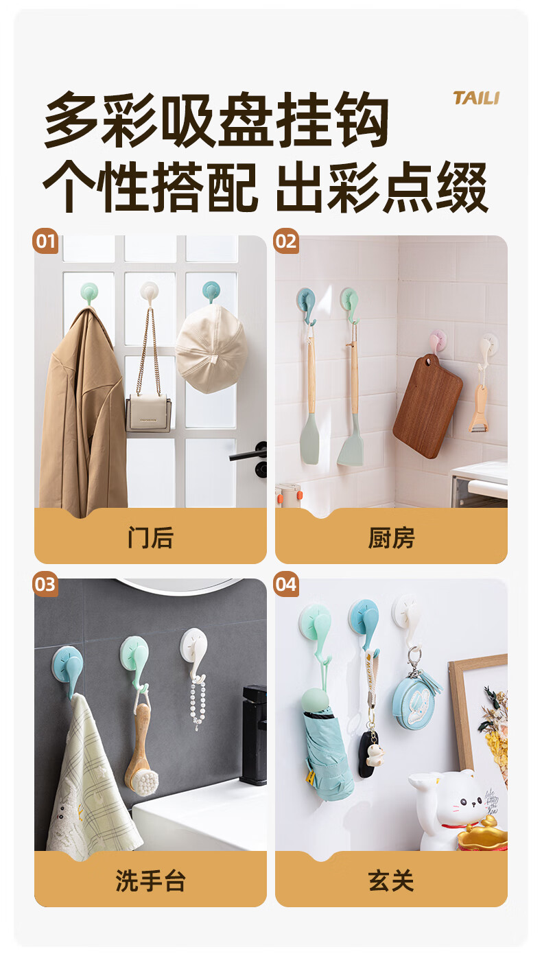 太力吸盘挂钩免打孔上墙粘钩强力挂钩浴室免钉无痕挂衣钩 白色6个 挂钩【吸盘壁挂】6个装
