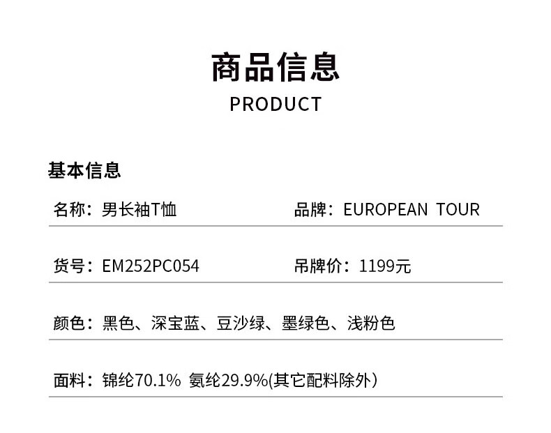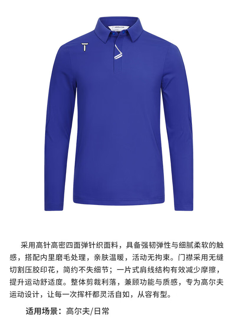 EUROPEAN TOUR欧巡赛高尔夫服装男装长袖T恤25秋冬磨毛保暖四面弹高尔夫POLO衫 墨绿色 3XL