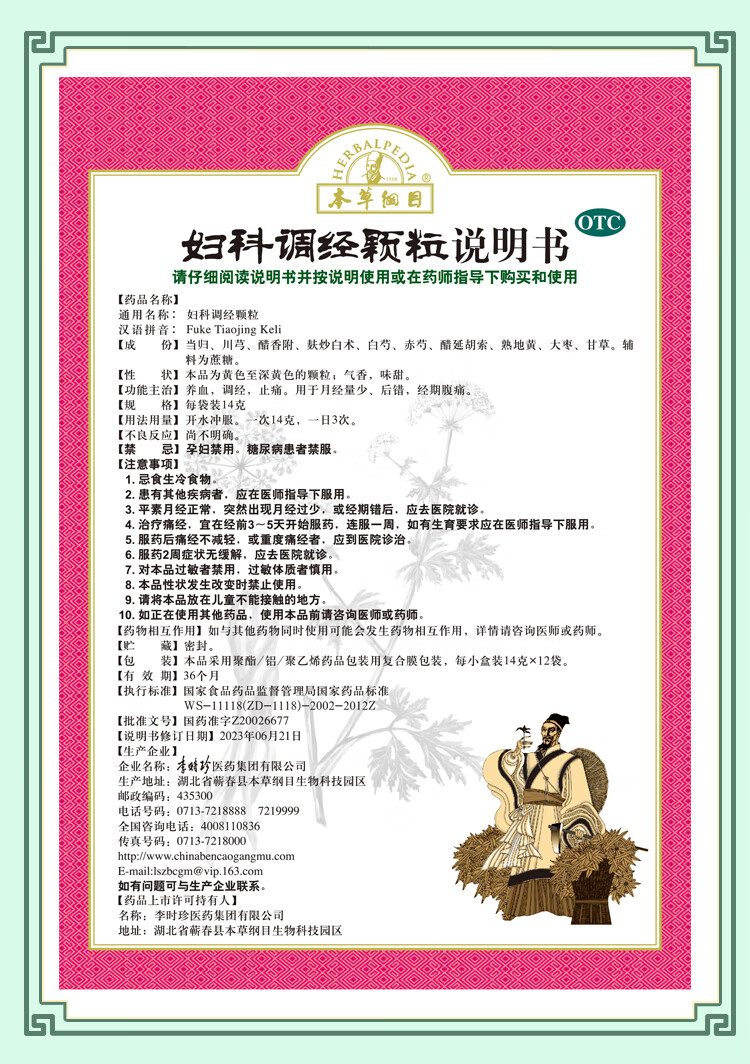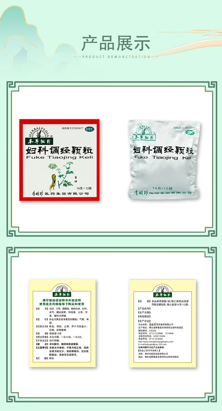 本草纲目 妇科调经颗粒14g*12袋 养血 调经 止痛 用于月经量少 后错 经期腹痛