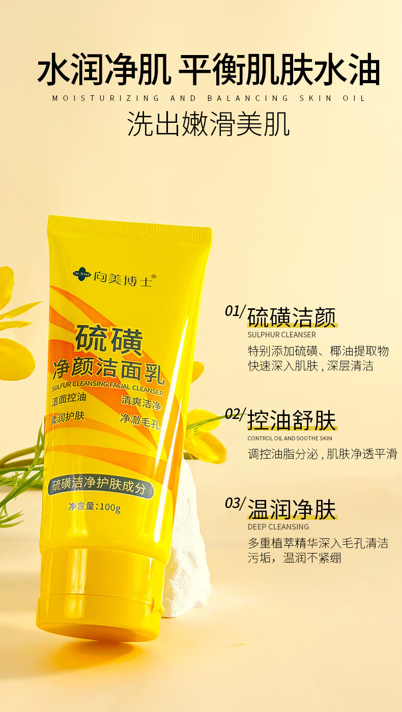 【厂家直供】硫磺洗面奶保湿洁面乳补水清洁毛孔洁面乳 硫磺洗面奶 100ml