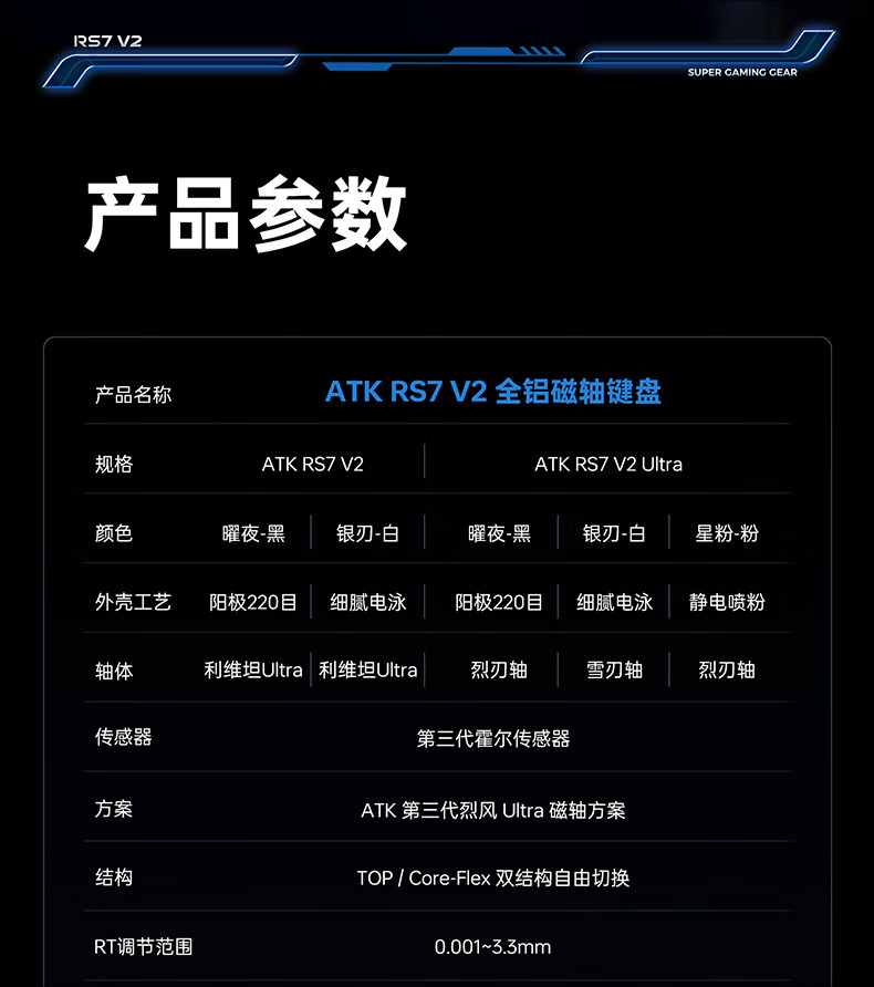 ATK RS7V2Ultra磁轴键盘 有线单模客制化电竞无畏契约RT模式75配列游戏办公机械键盘 曜夜-烈刃轴