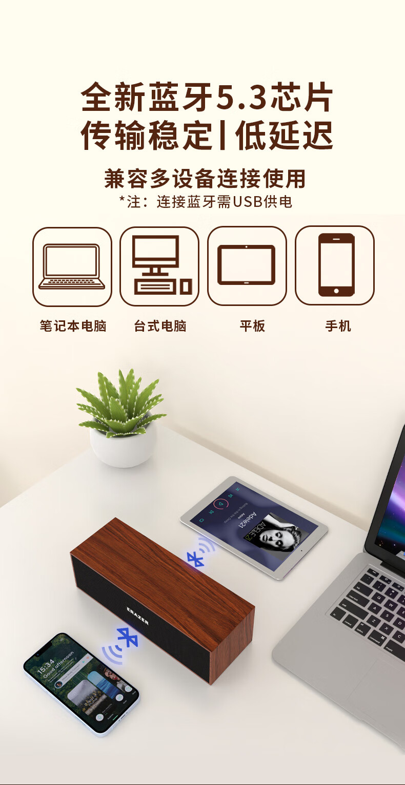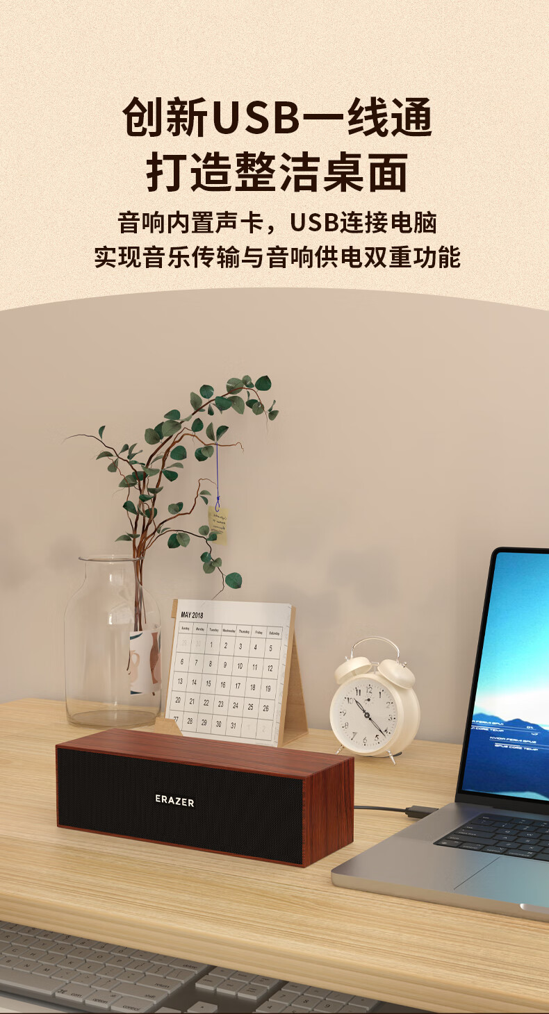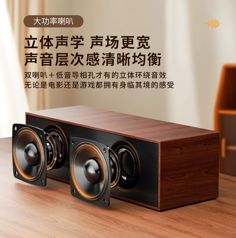 联想生态品牌异能者木质有线蓝牙音箱电脑音响台式便携笔记本适用拯救者家用游戏桌搭扩音器送礼