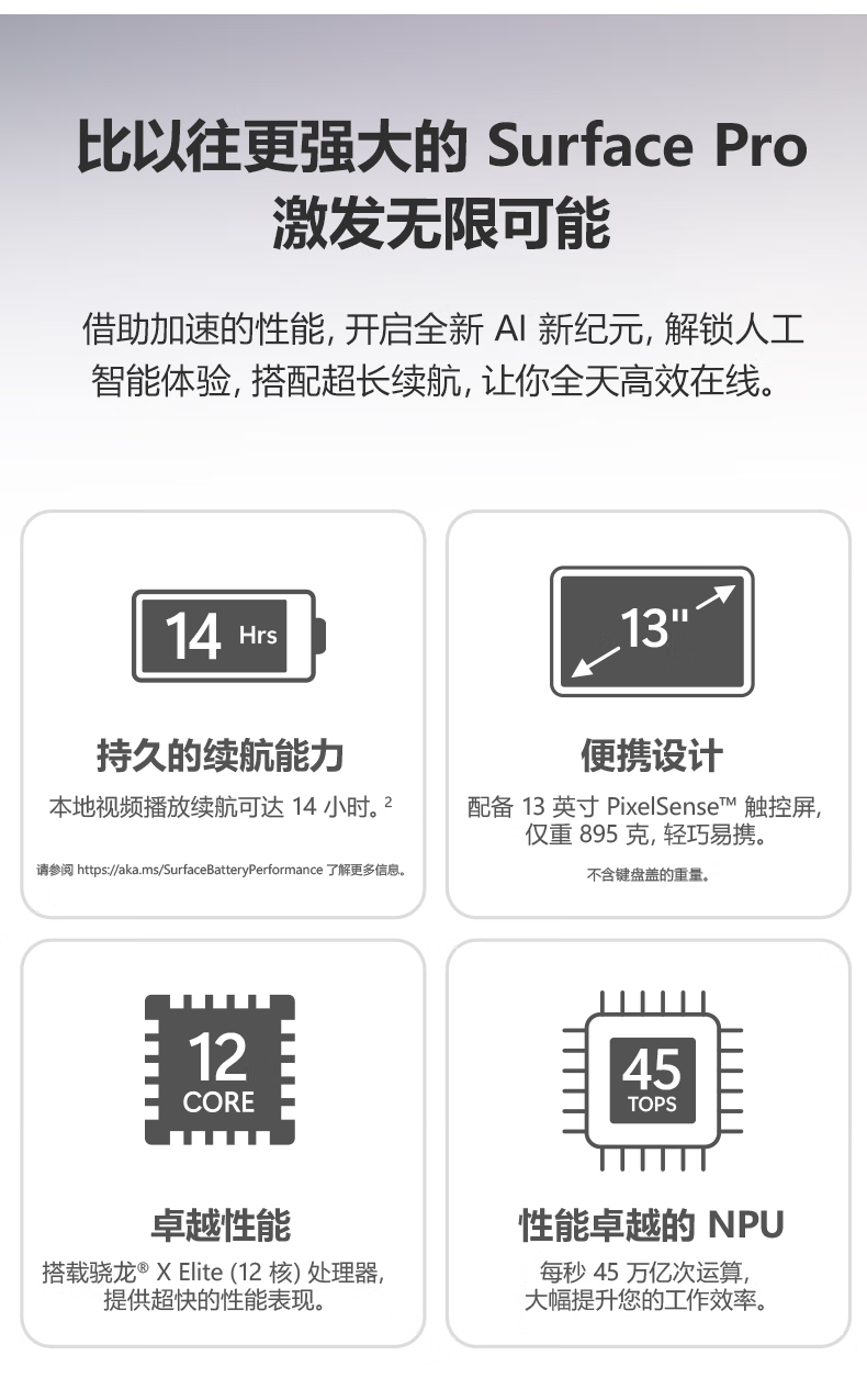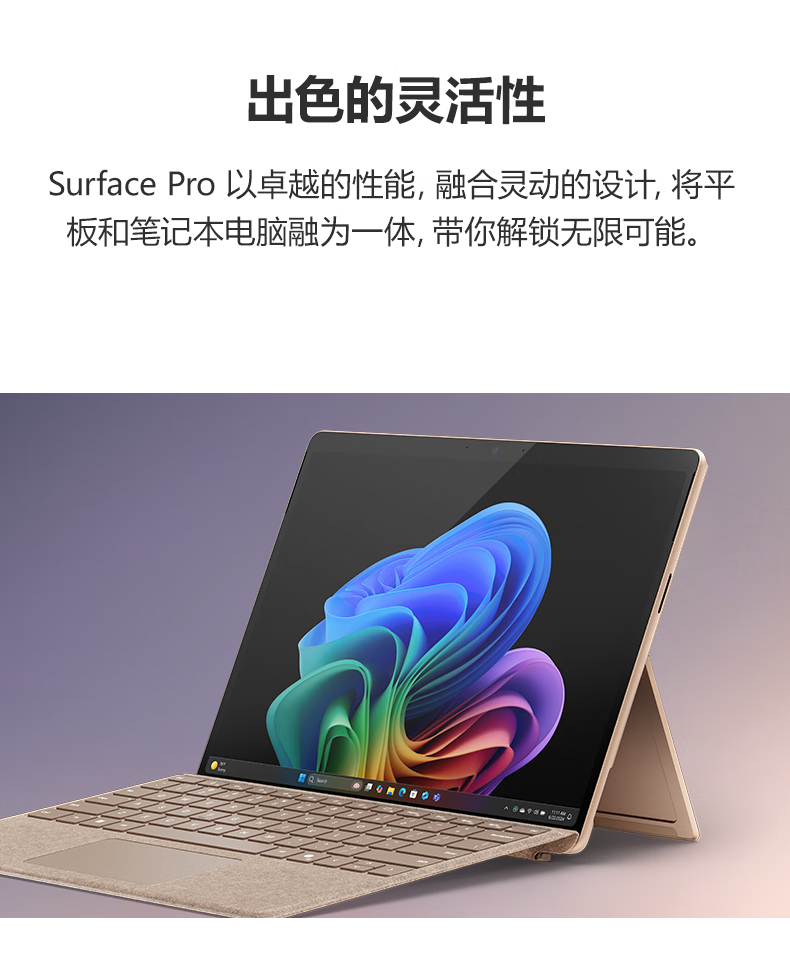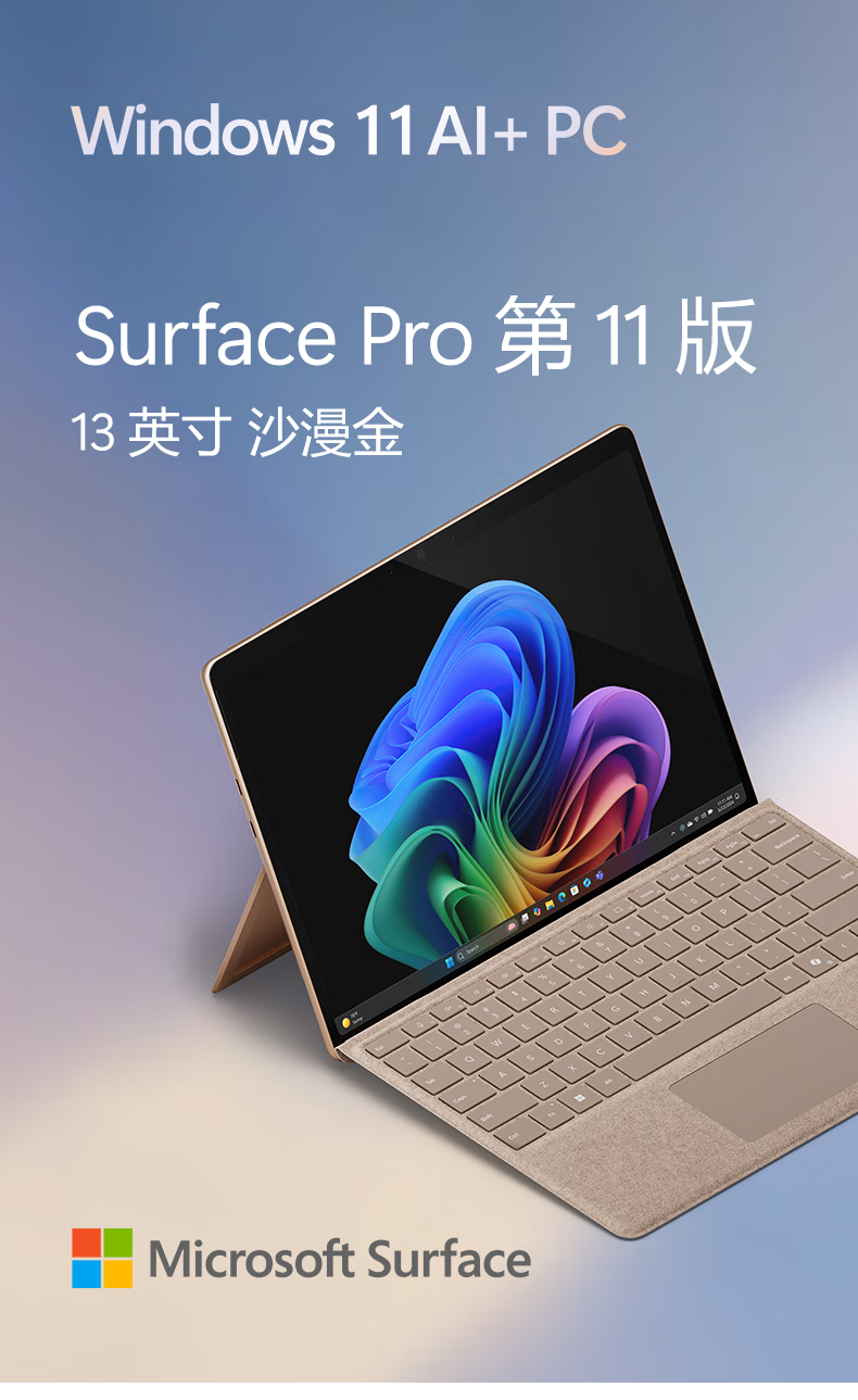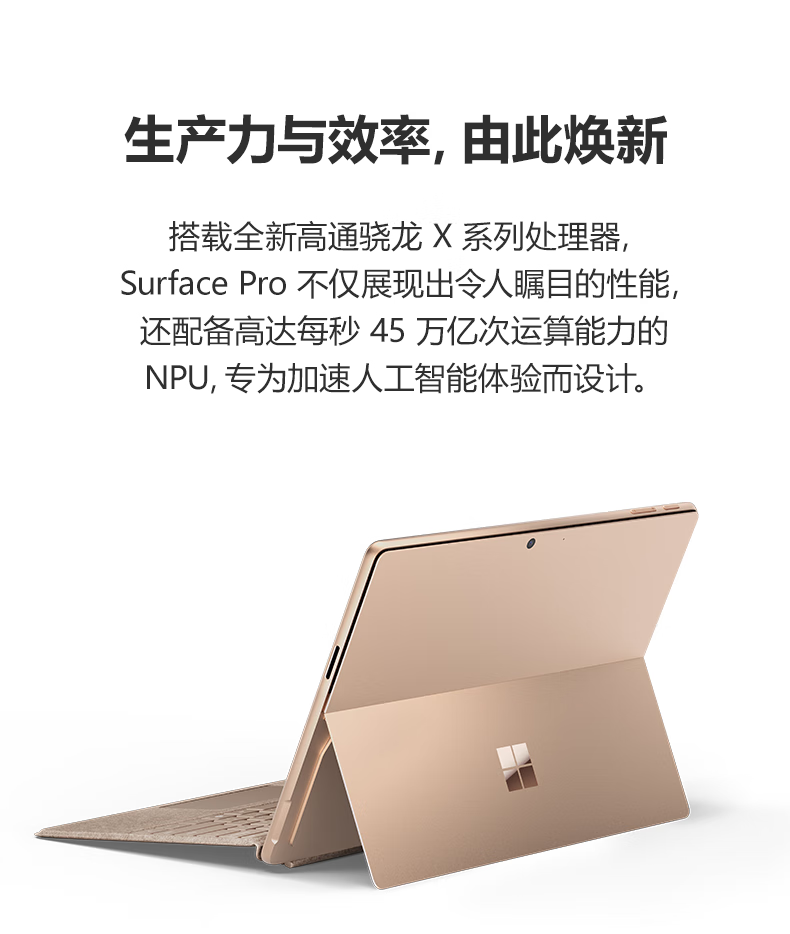 微软(Microsoft)Surface Pro第11版 二合一笔记本电脑 AI PC 骁龙X Elite 16G 512G沙漫金 进阶版套装配沙漫金键盘