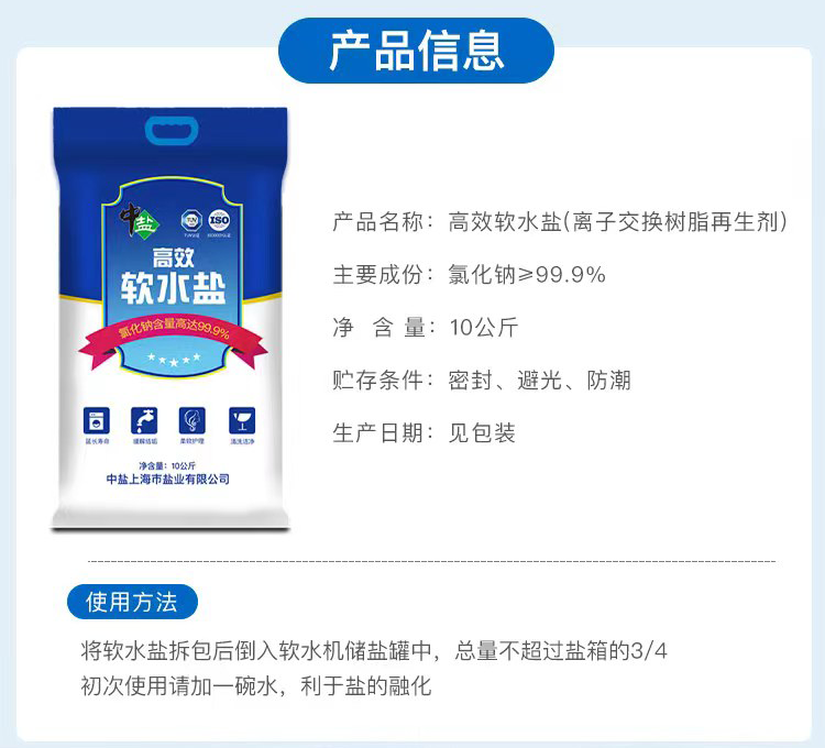 中盐 高效软水盐10kg*2【软水机专用盐】软化水质预防水垢保护机器