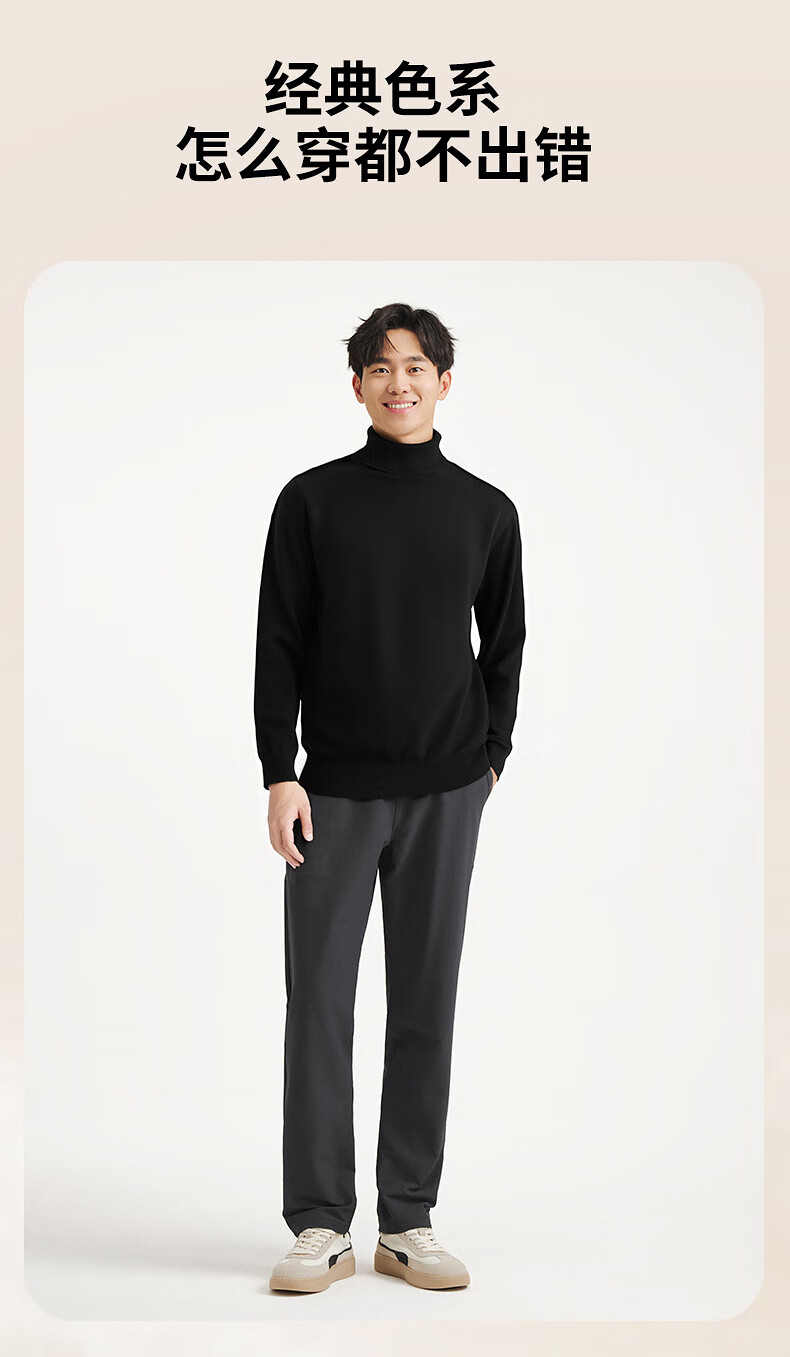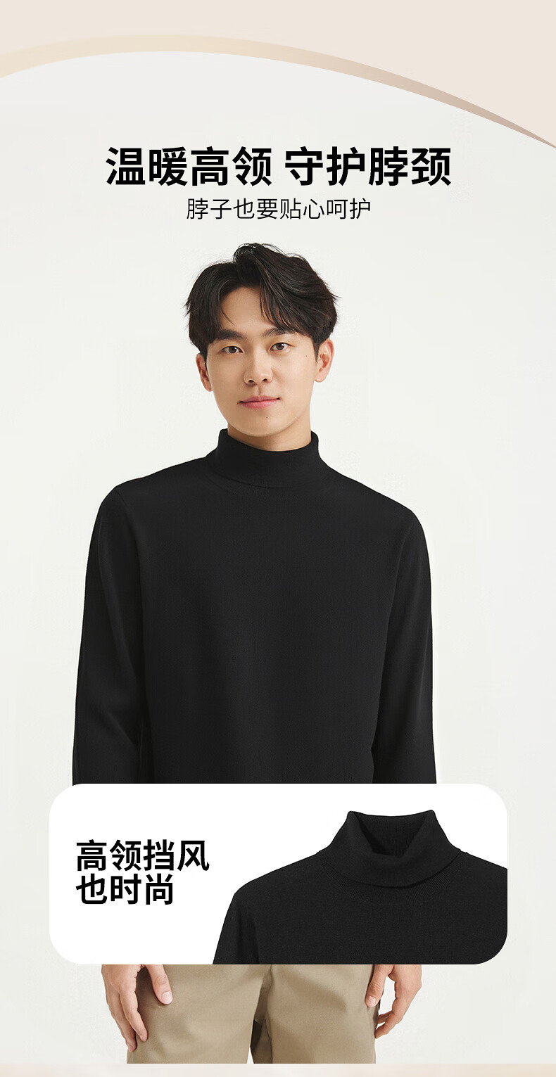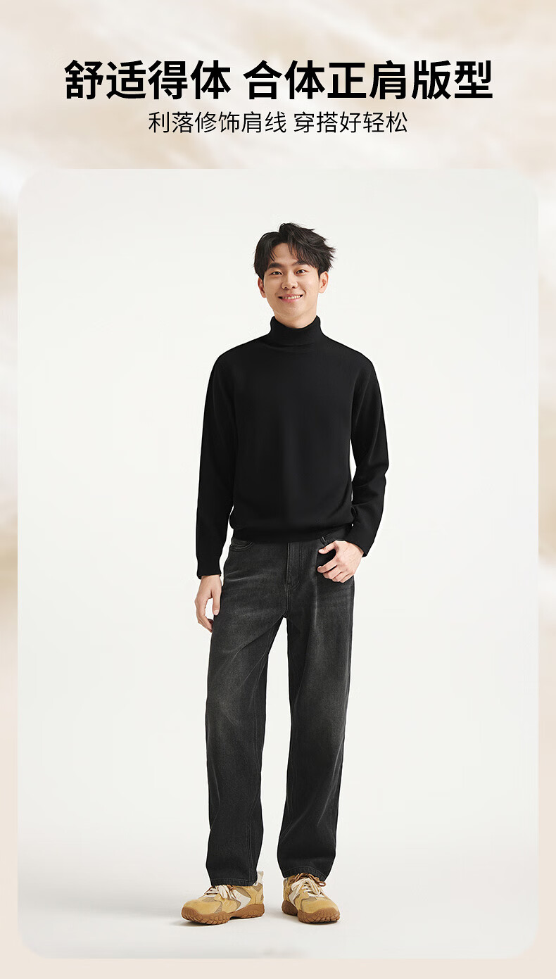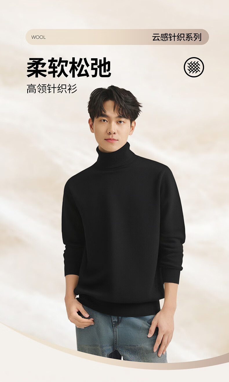 热风男士高领毛衣2025年冬季新款基础高领针织衫宽松韩系内搭上衣 01黑色 S