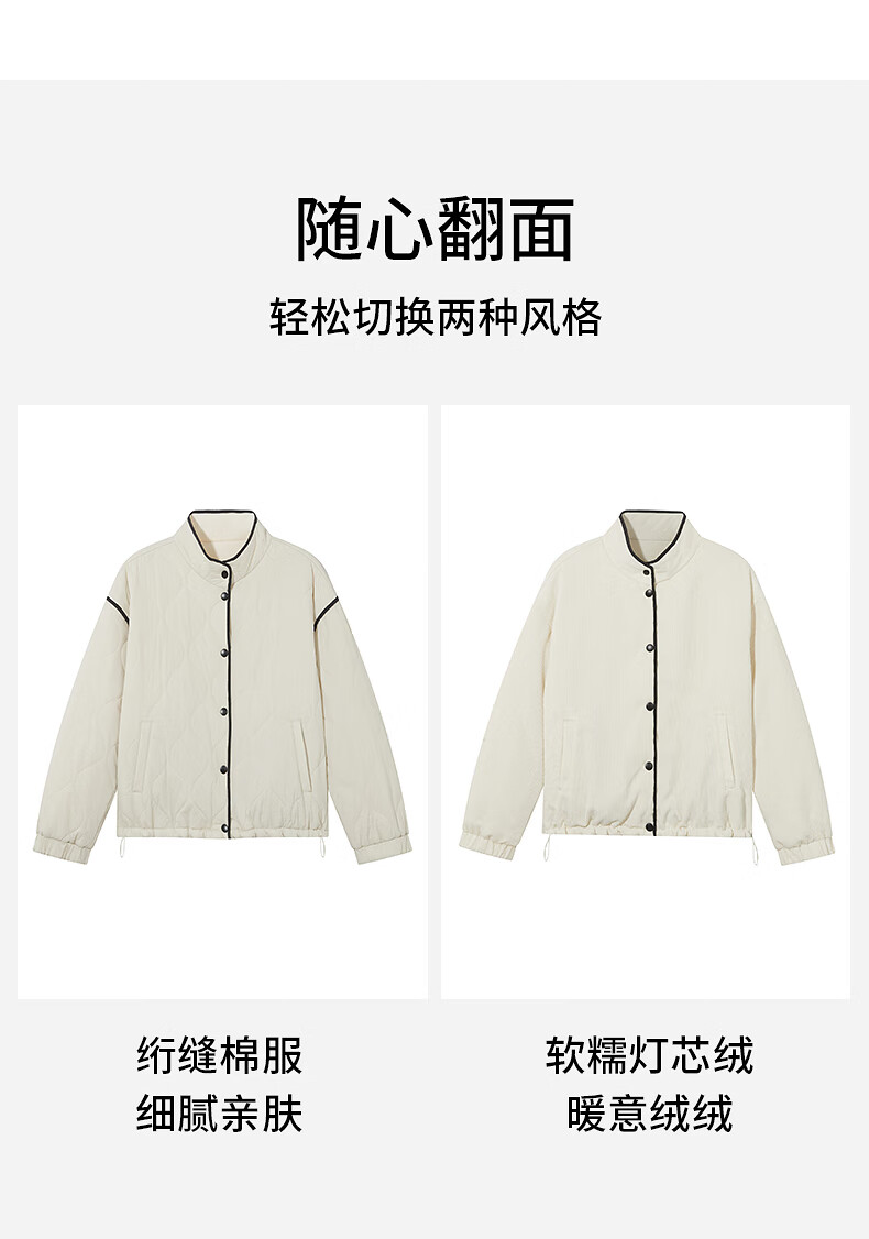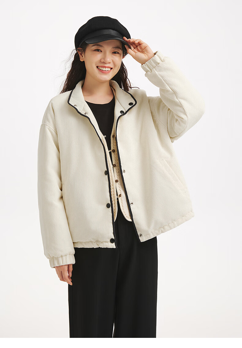 热风(Hotwind)女士夹棉夹克外套上衣2025年冬季新款双面穿灯芯绒保暖外套 03米色 M