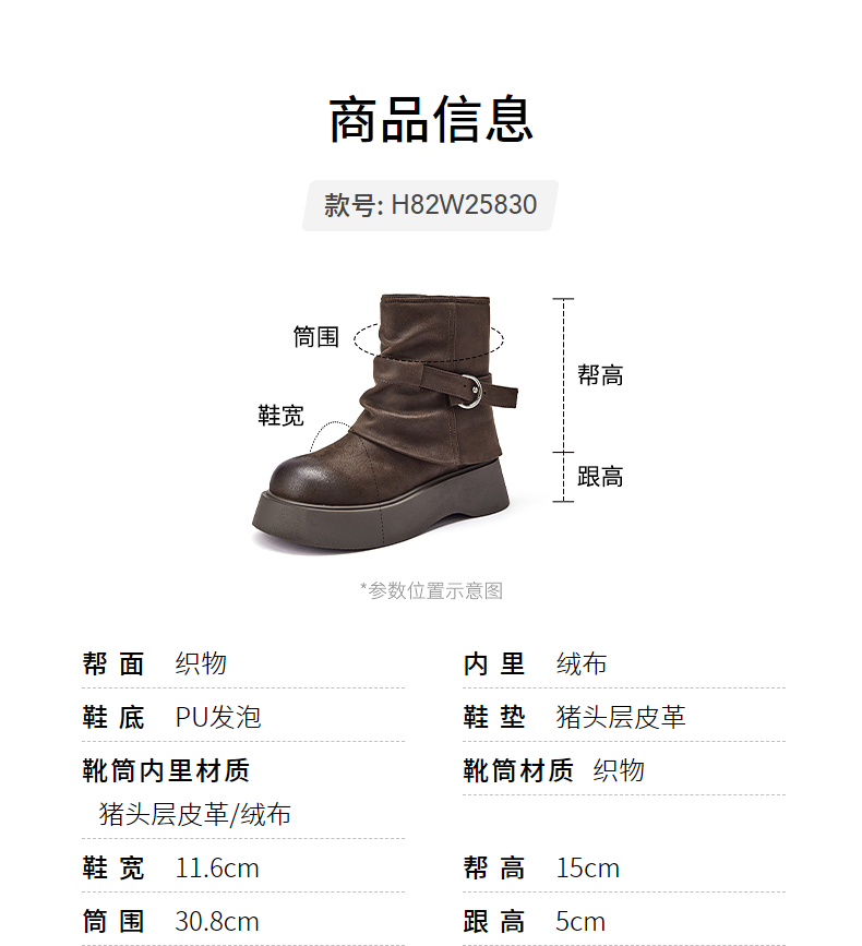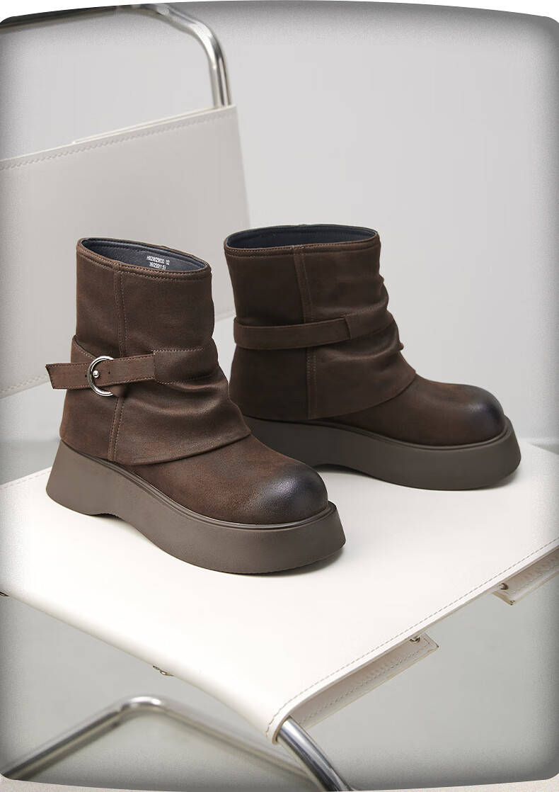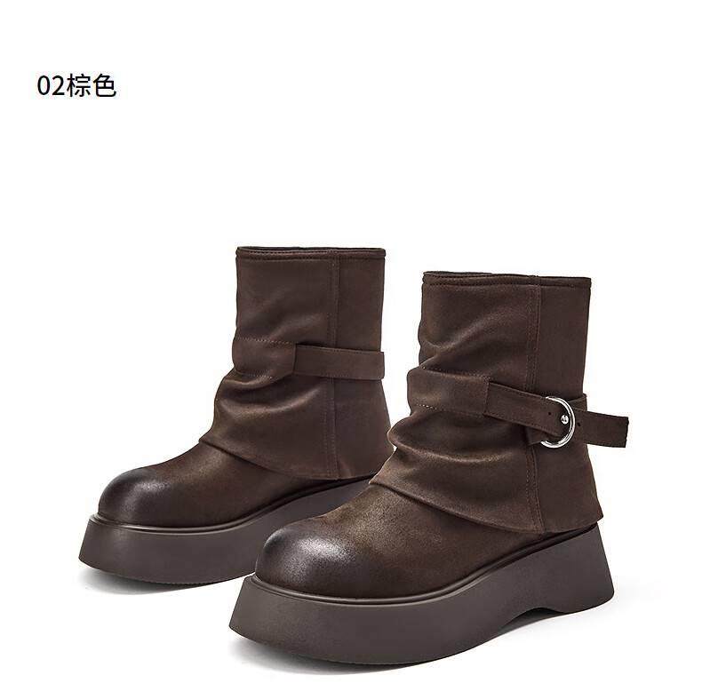 热风厚底时装靴女2025年冬季新款棕色复古短靴小个子增高女靴子 01黑色 (预售10.12发货) 38
