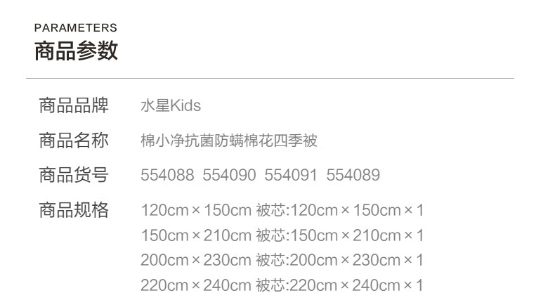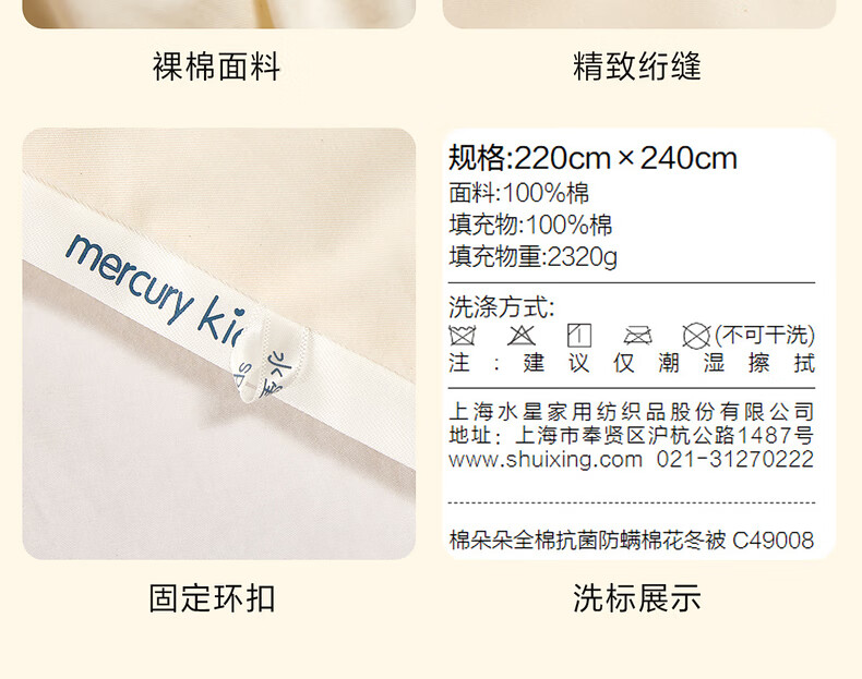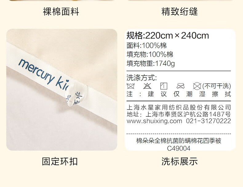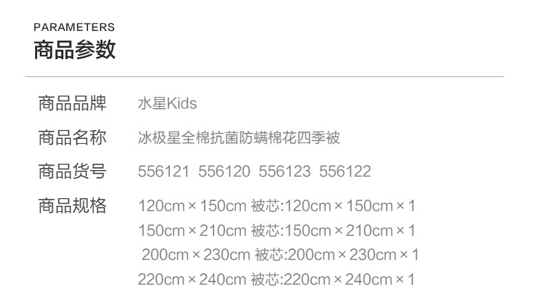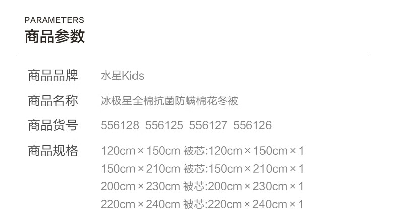 水星家纺被子棉被 秋冬被100%棉花被芯婴幼儿A类抑菌防螨学生冬季冬被被芯 冰极星冬被【婴幼儿A类/抑菌防螨】 150cm*210cm