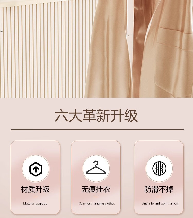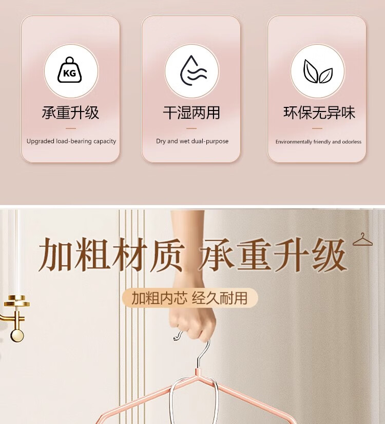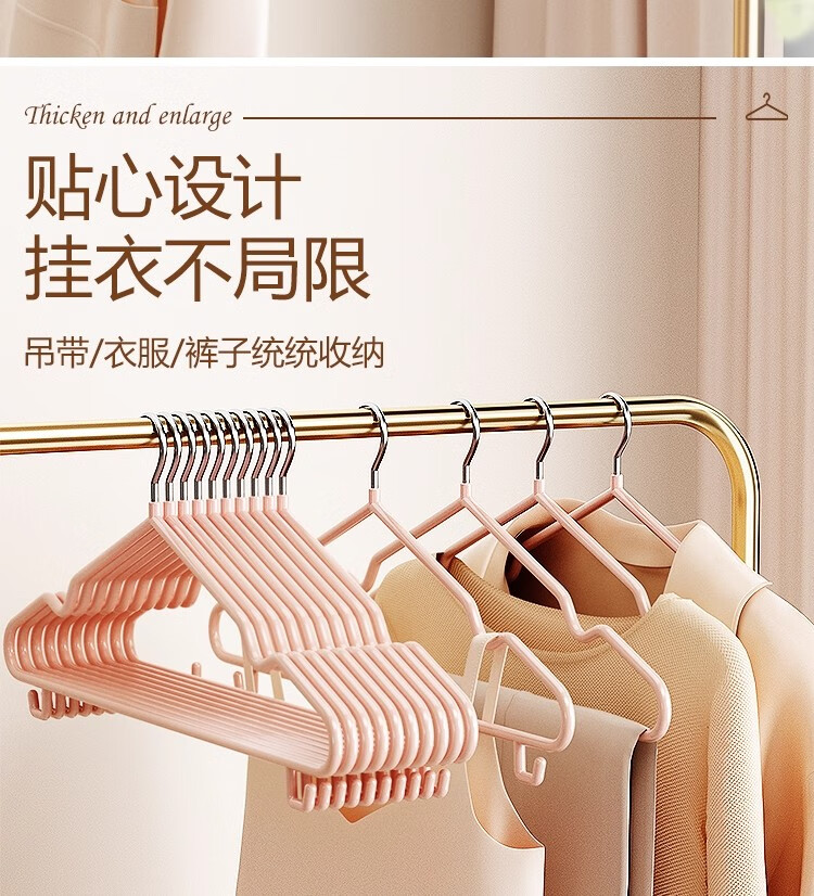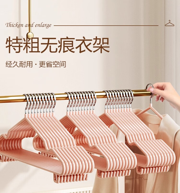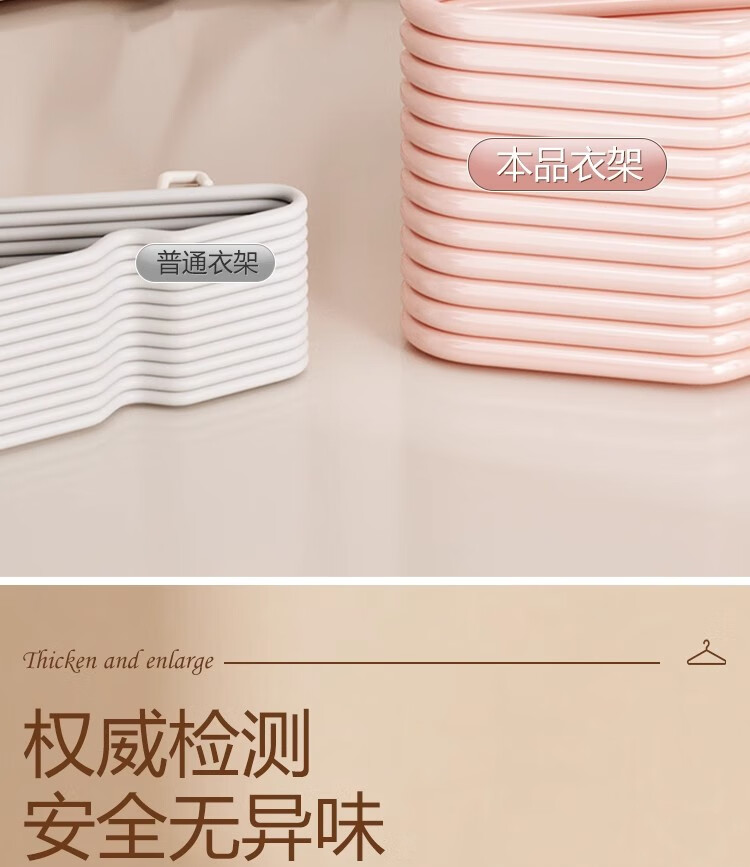户璃德国衣架家用挂衣无痕防滑加厚加粗加大衣服架子宿舍用学生衣挂晾 升级带挂钩芝士杏【加粗/防滑/无痕】 10支
