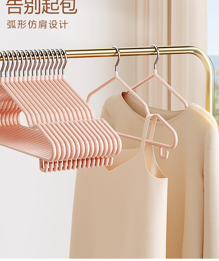 邦尼美家短颈衣架家用挂衣防鼓包无痕防肩角衣挂省空间衣服架成人晾衣架 50只装-窄肩款【挂衣不拖地】 放心购(短颈设计 防滑承重强)