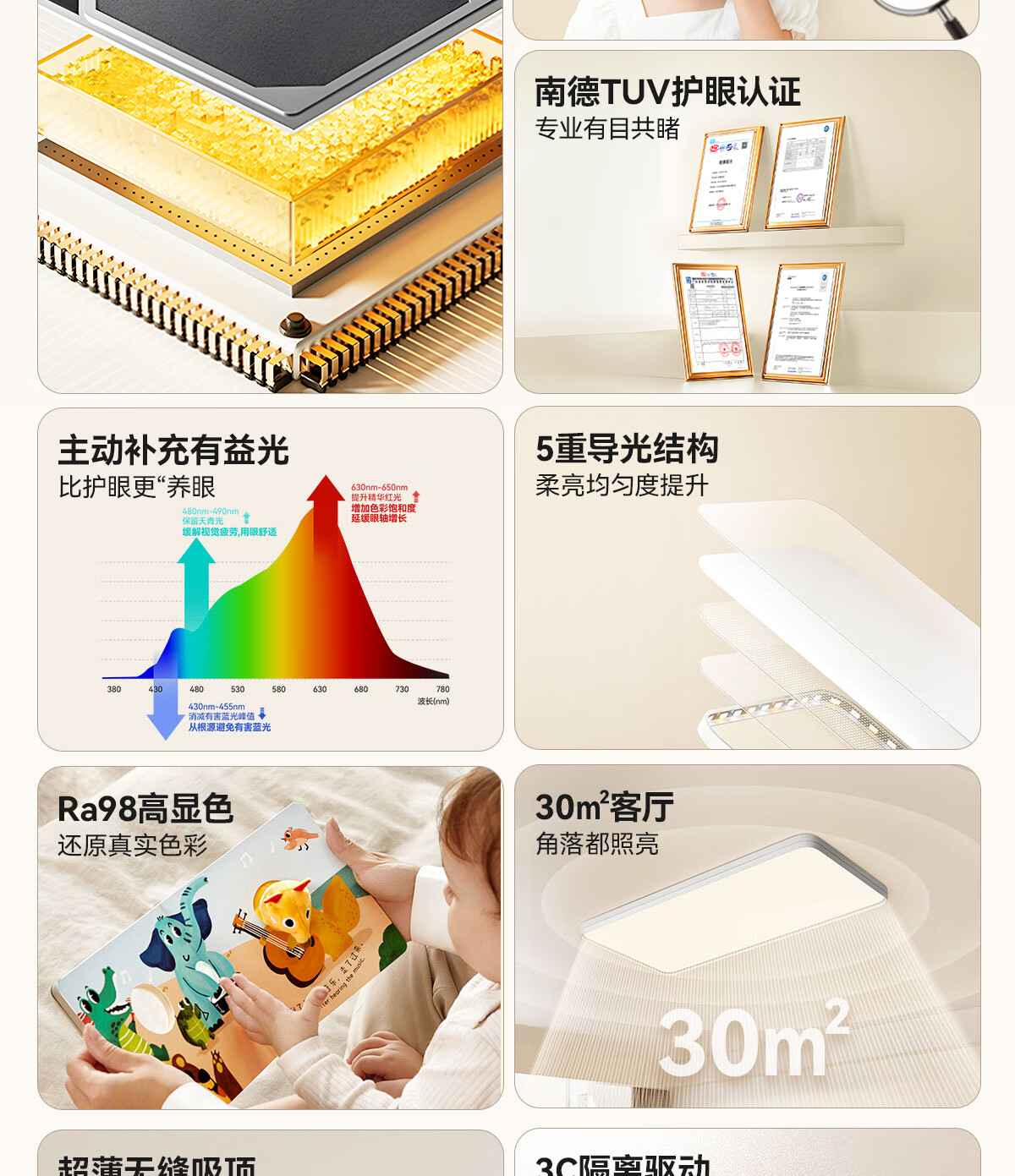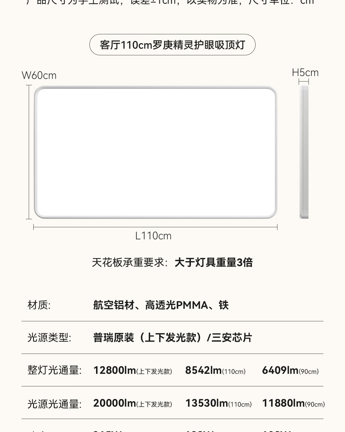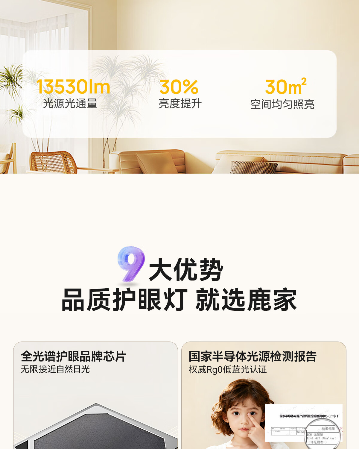 鹿家良品(LUUGAA)【SH】罗庚精灵全光谱护眼客厅吸顶灯简约现代客厅灯大灯卧室灯具 【荐】全光谱客厅110cm无极光123W智能联动