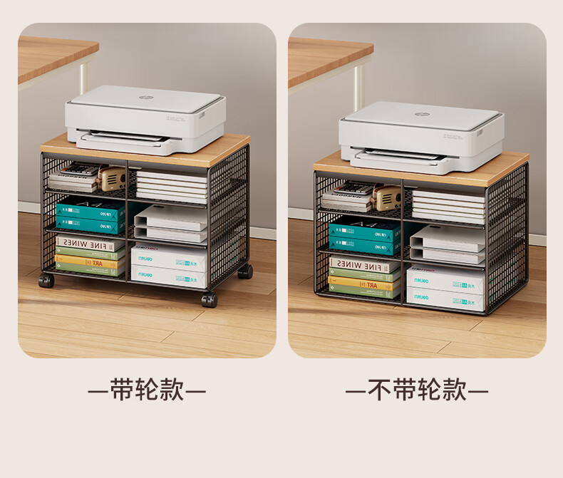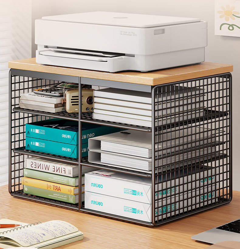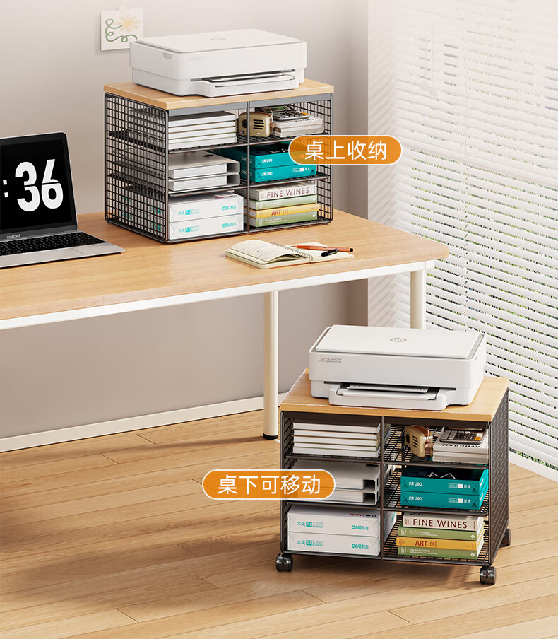木格格文件置物架多层收纳架桌面多功能储物架办公室打印机架子书架立式 黑色2层-无轮